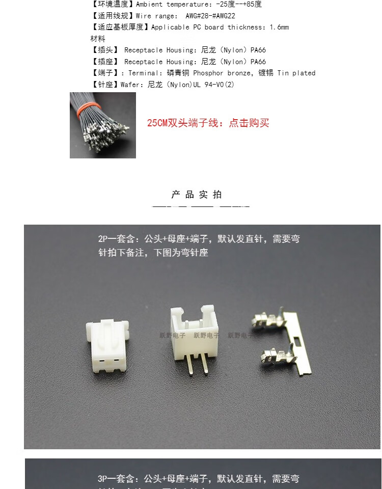XH 2.5mm pitch wire terminal connector connector PCB board male + female + terminal 1 set 2p (1 set price)