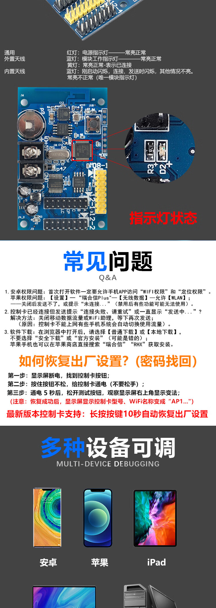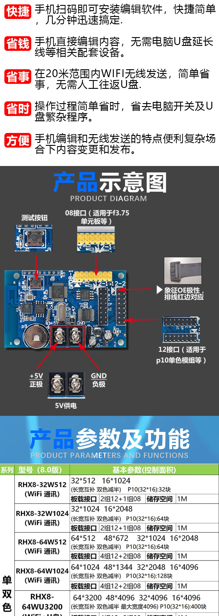 Customized LED display mobile phone wireless wifi control card door led electronic advertising screen controller RHX8-64W512 wifi