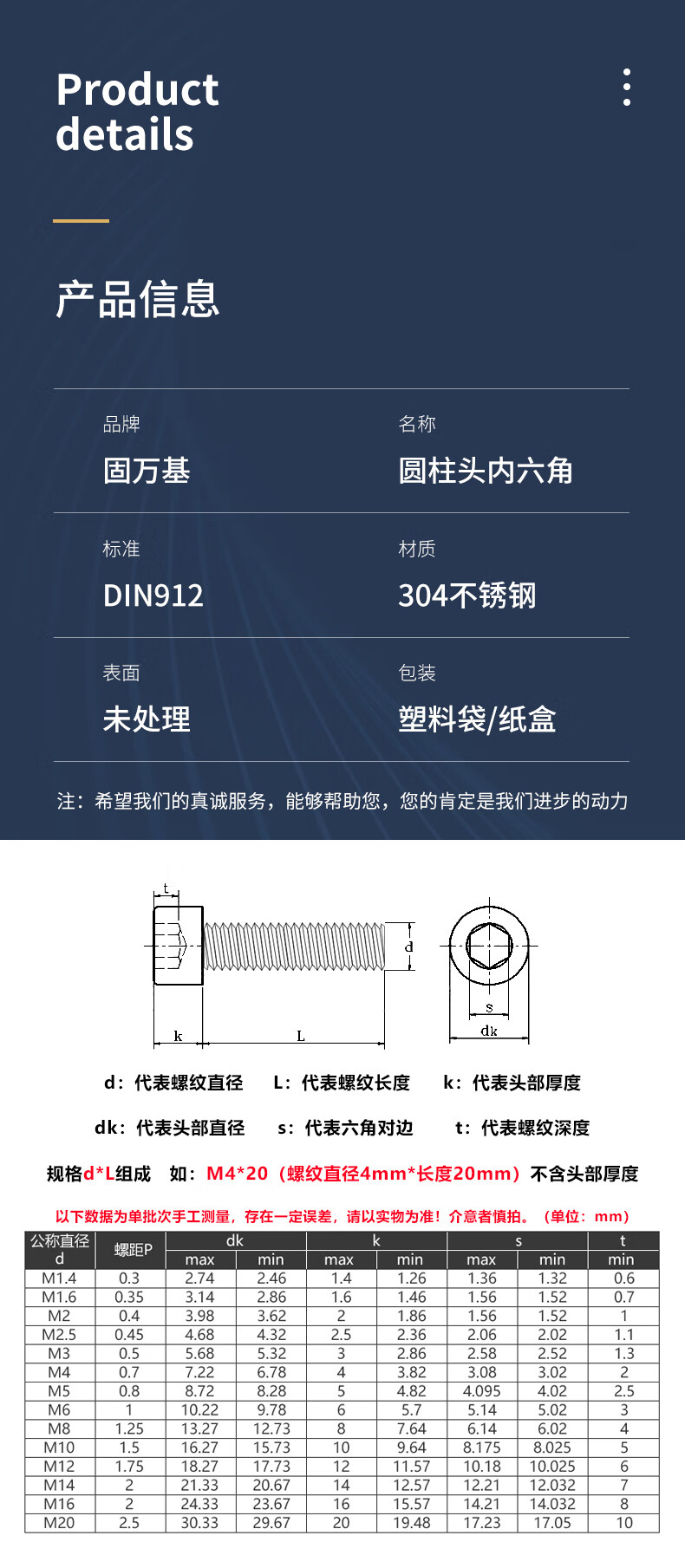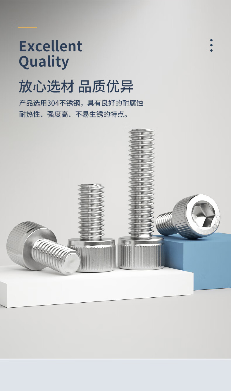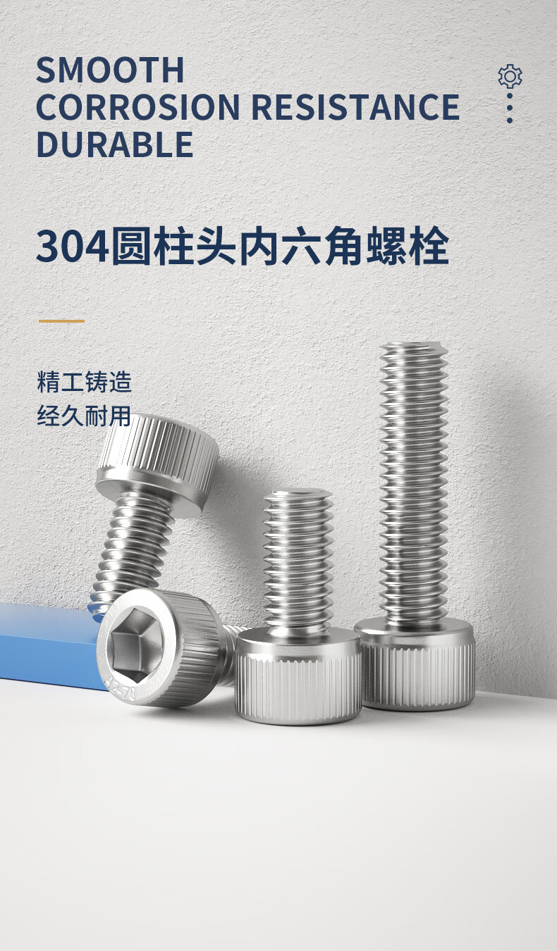 Guwanji 304 stainless steel cylindrical head hexagon socket screws knurled cup head bolts screws extended screws national standard M5x14 (50 pieces)