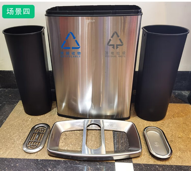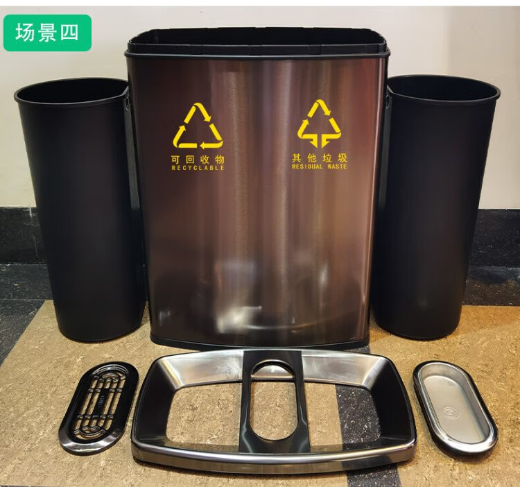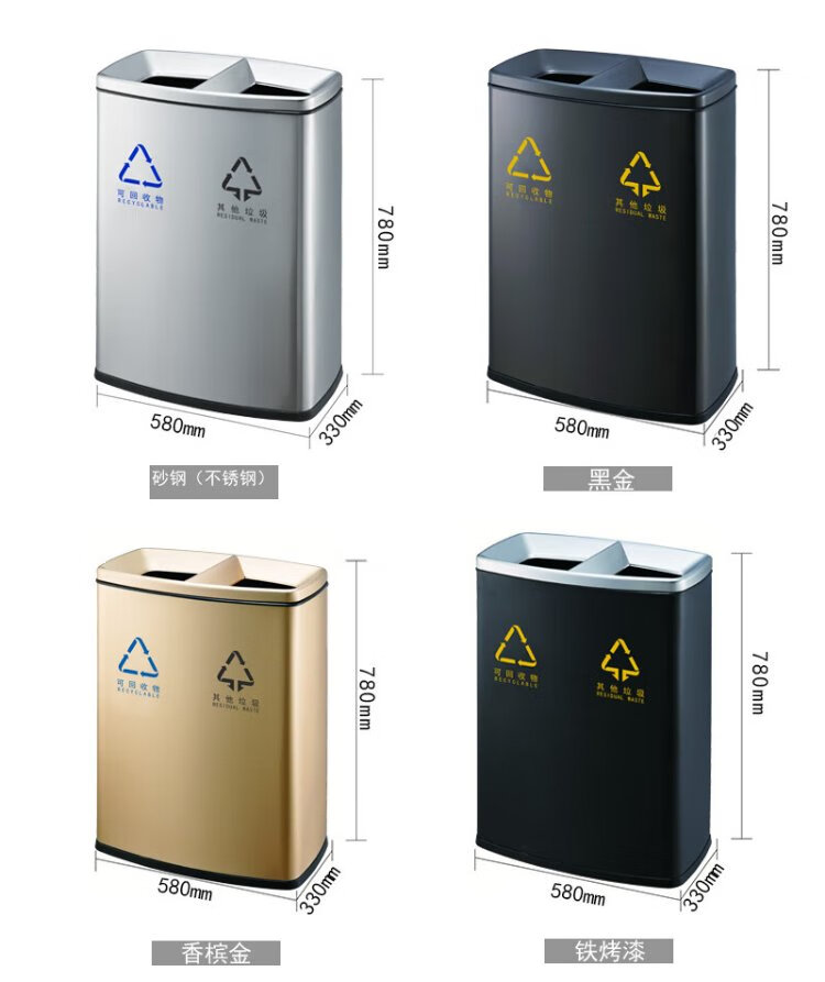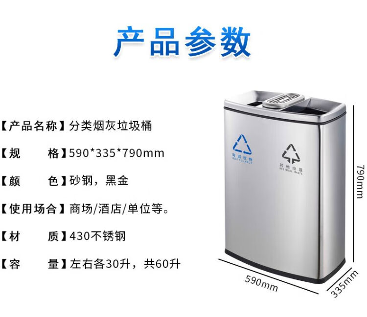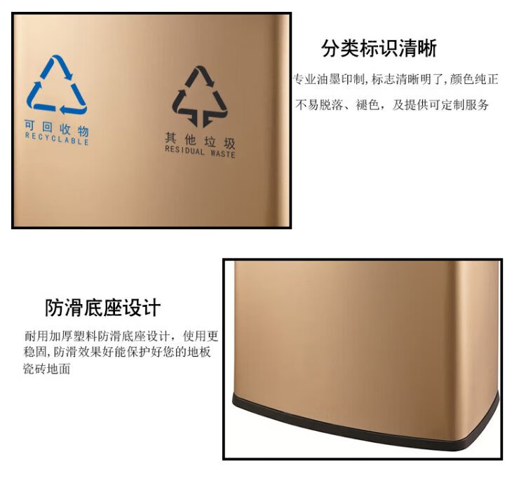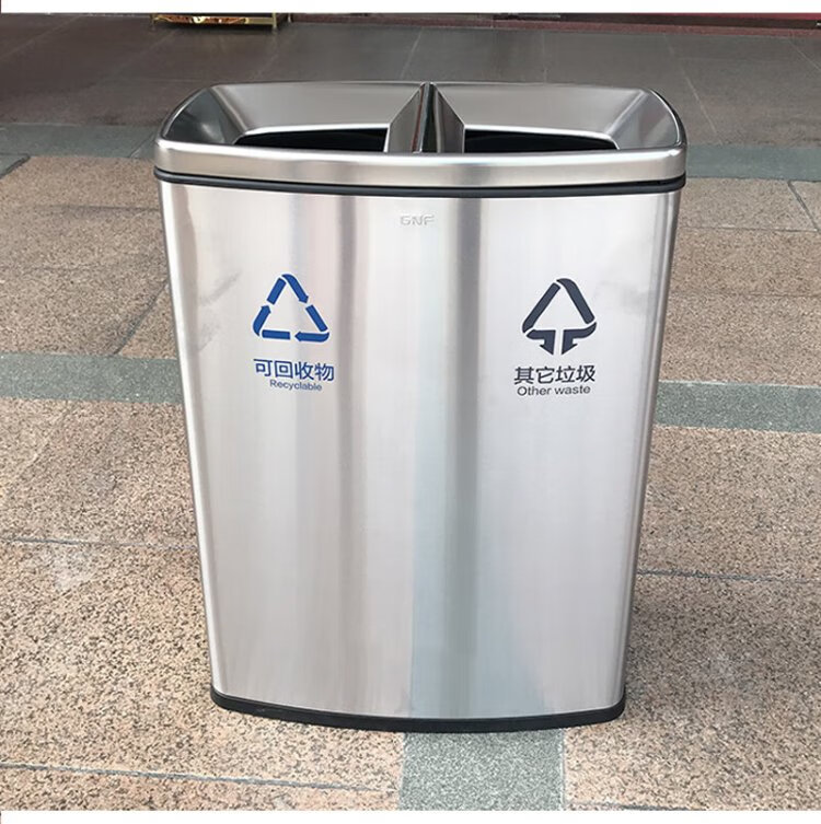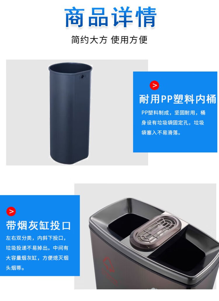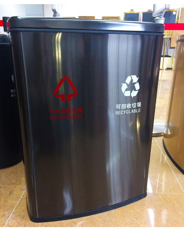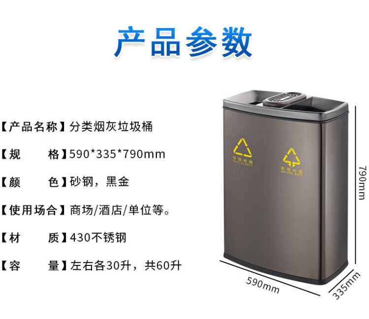 GNF double classification lidless trash can with ashtray stainless steel large indoor and outdoor commercial public places ash GPX-218K black gold with ashtray