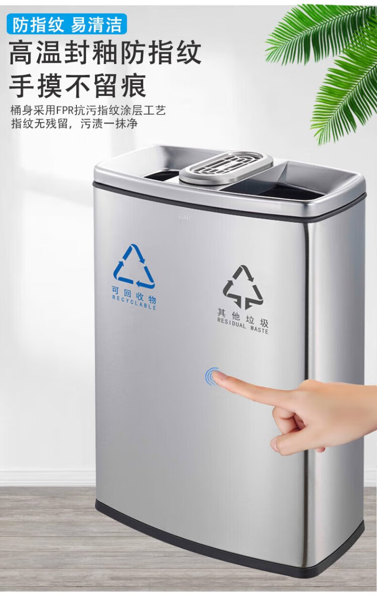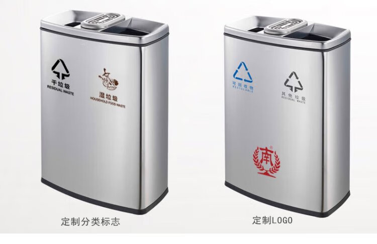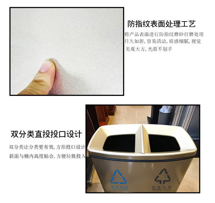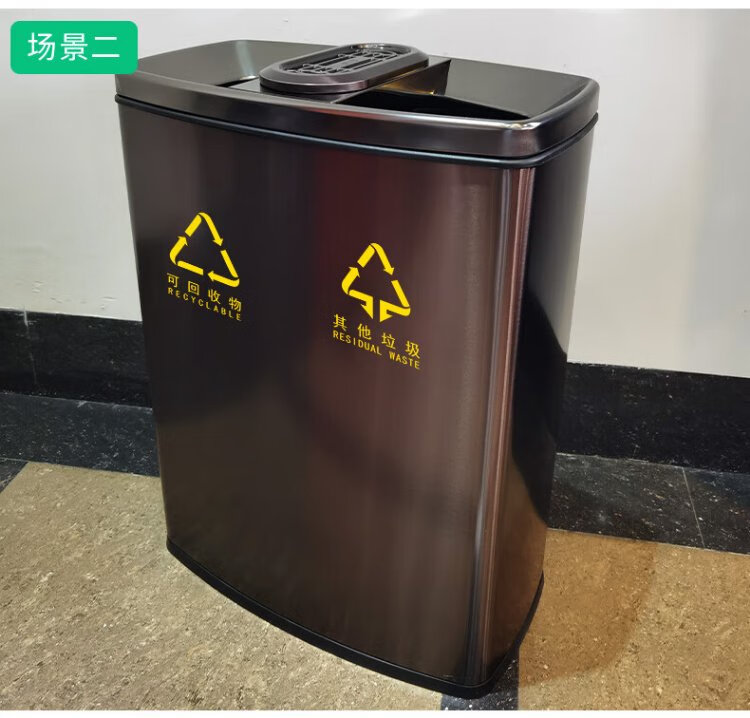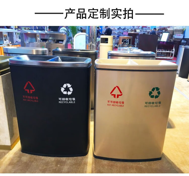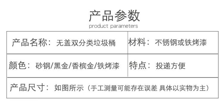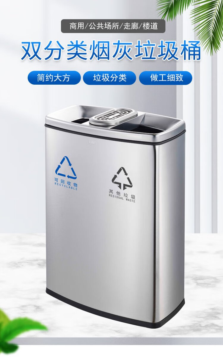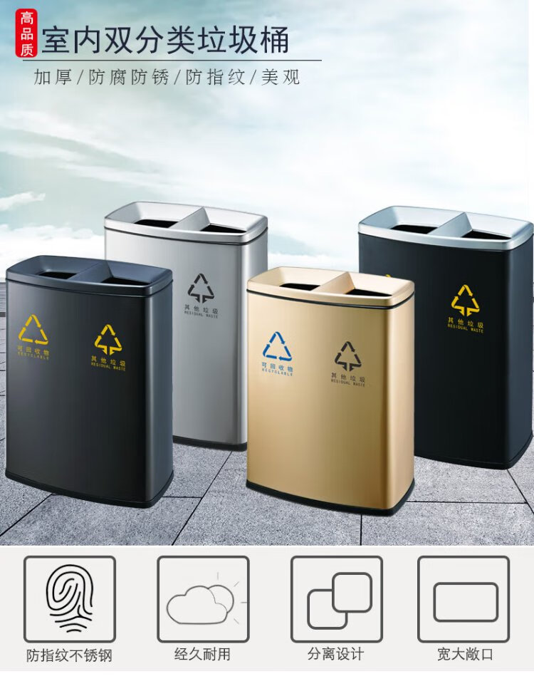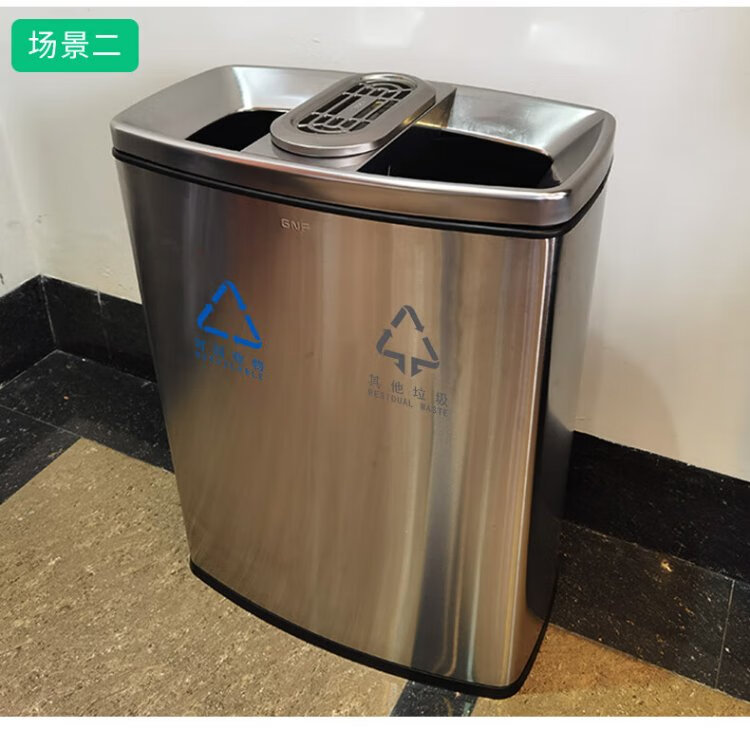 GNF double classification lidless trash can with ashtray stainless steel large indoor and outdoor commercial public places ash GPX-218K black gold with ashtray