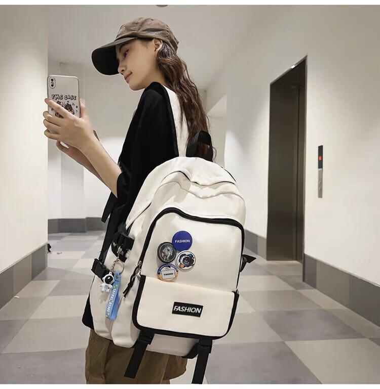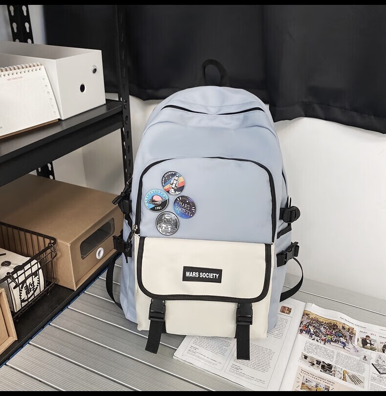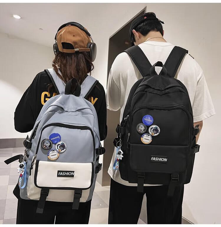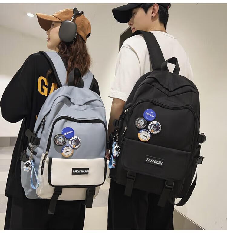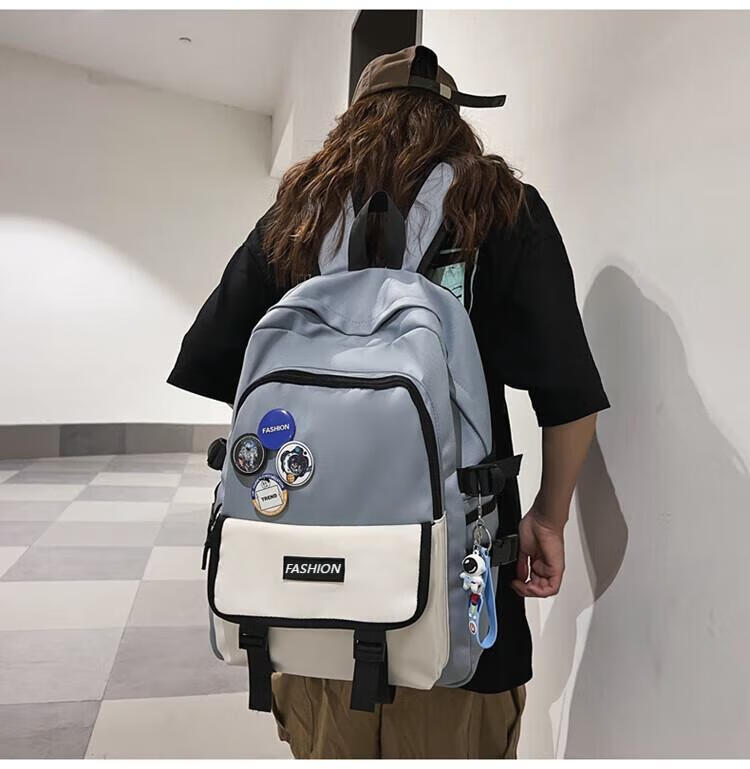 Fengti schoolbag men's backpack backpack women's high-looking Korean version junior high school and high school college student large-capacity water-repellent computer bag blue large size pendant + random badge