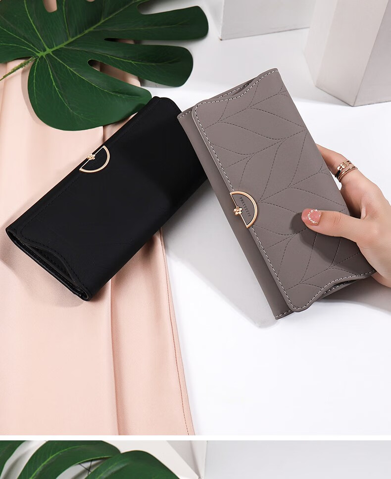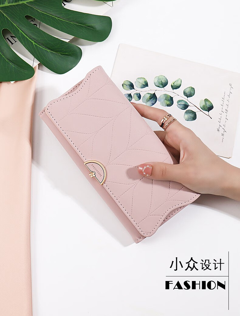 Kangaroo wallet women's niche design New Year's New Simple Folding Long Wallet Small Fresh Trendy Handbag Women's Small Bag Hand-held Bean Paste Color
