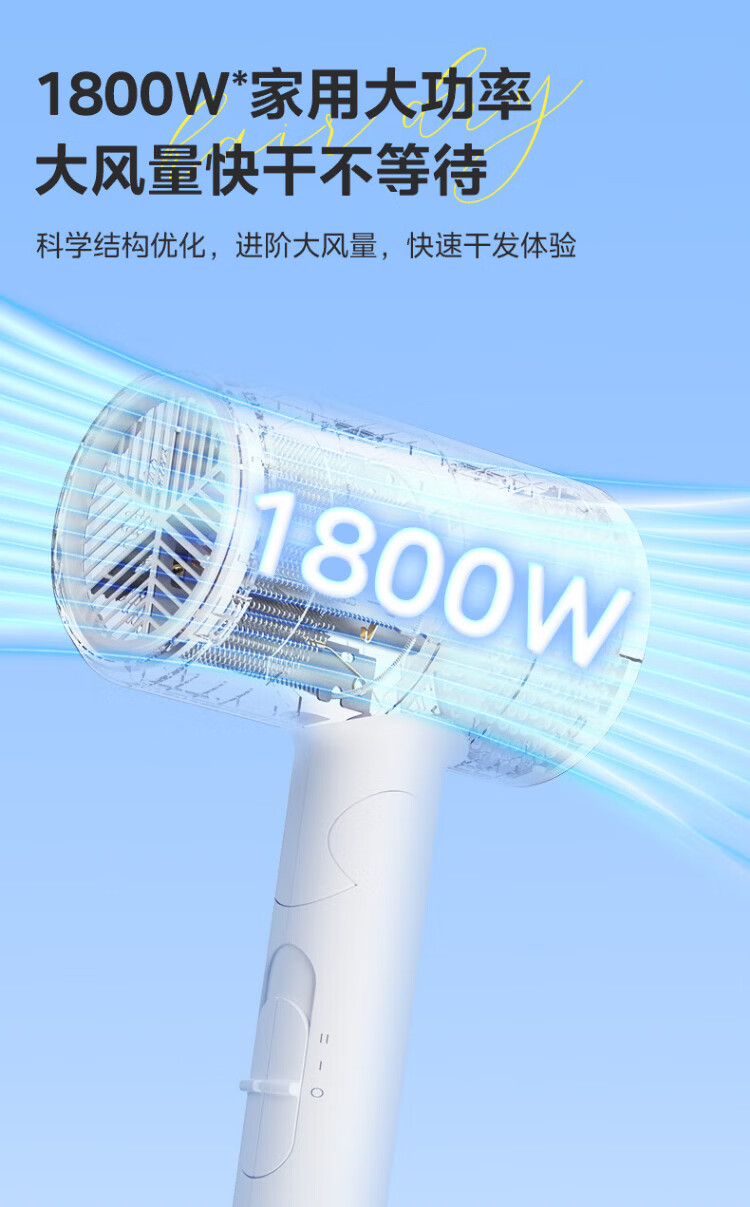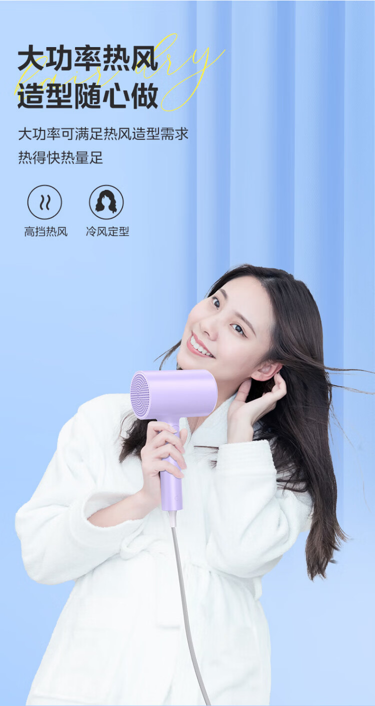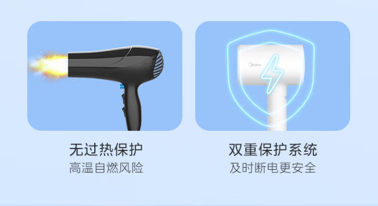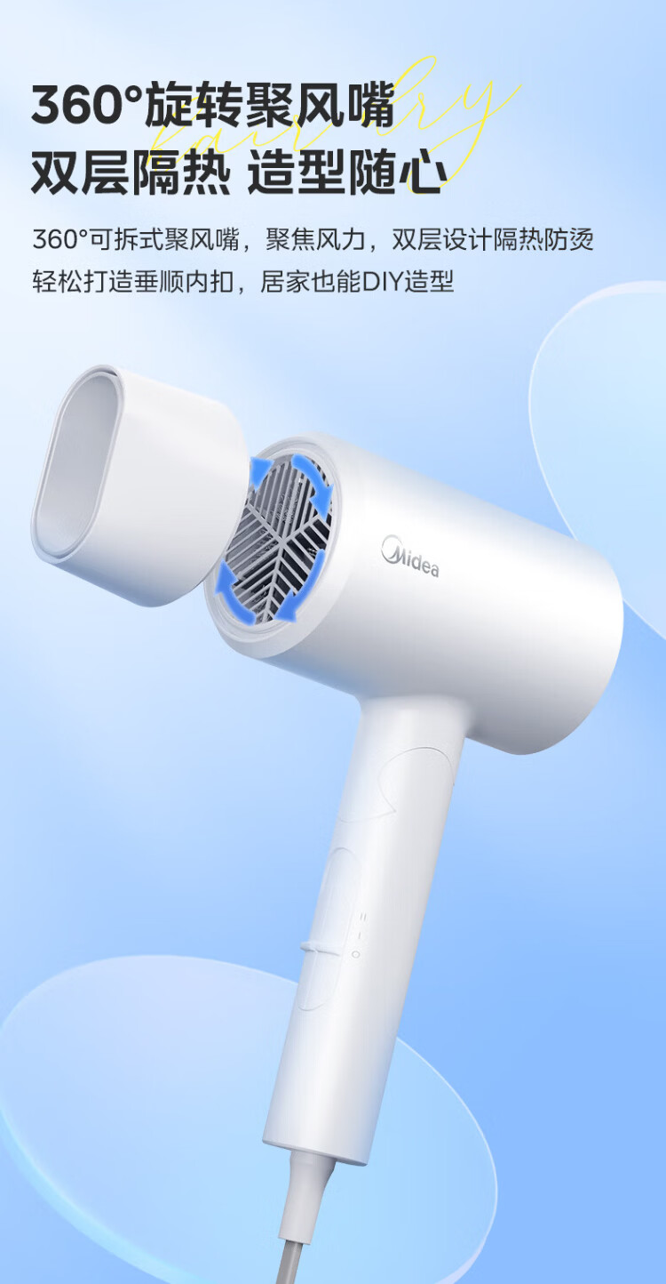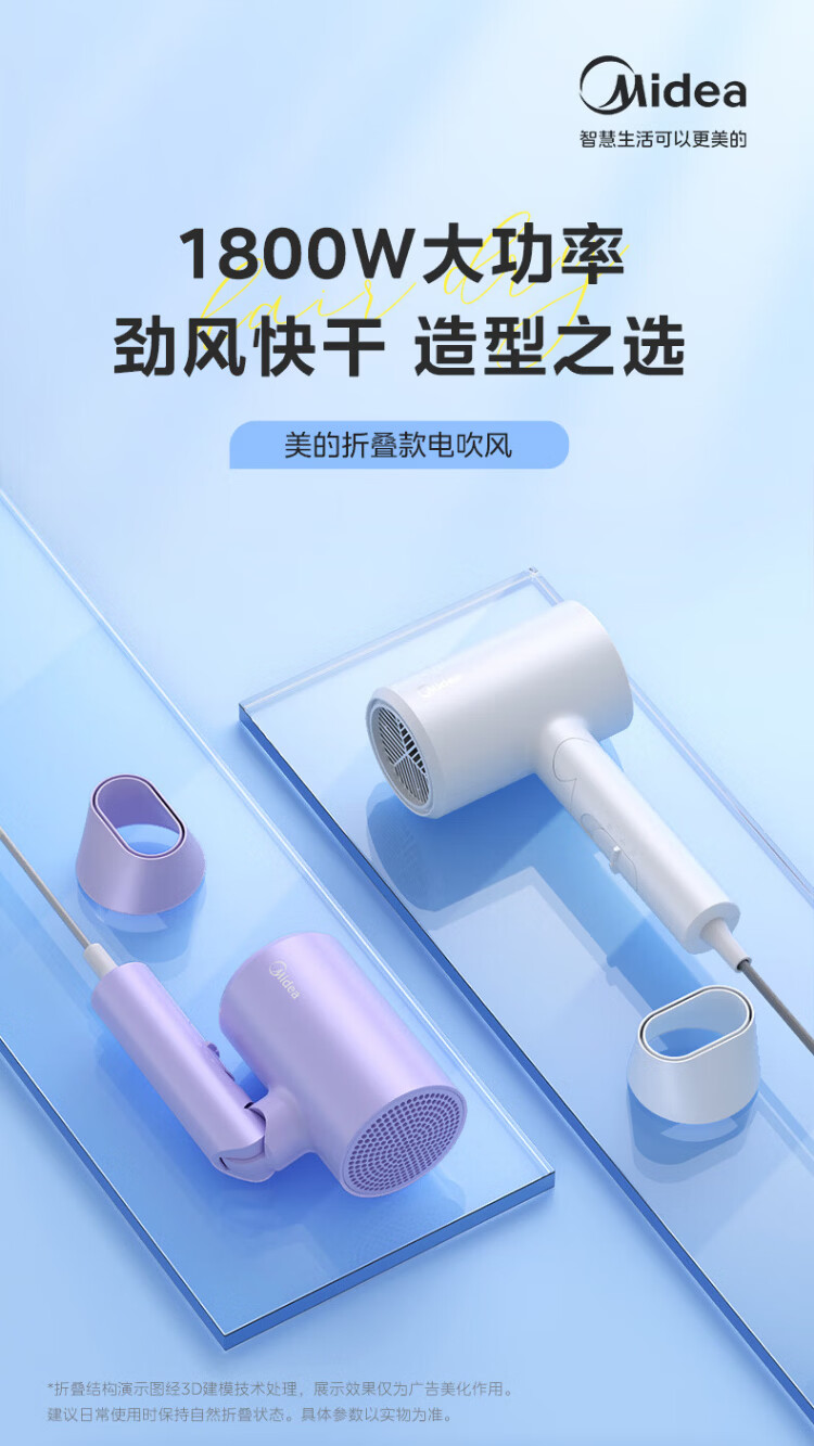 Midea foldable and portable high-power home hair dryer negative ion constant temperature hair care portable business trip home hair dryer student dormitory can be used for men and women holiday birthday gifts portable and foldable 1800W high power quick drying