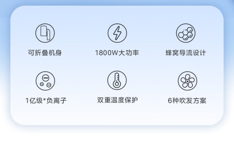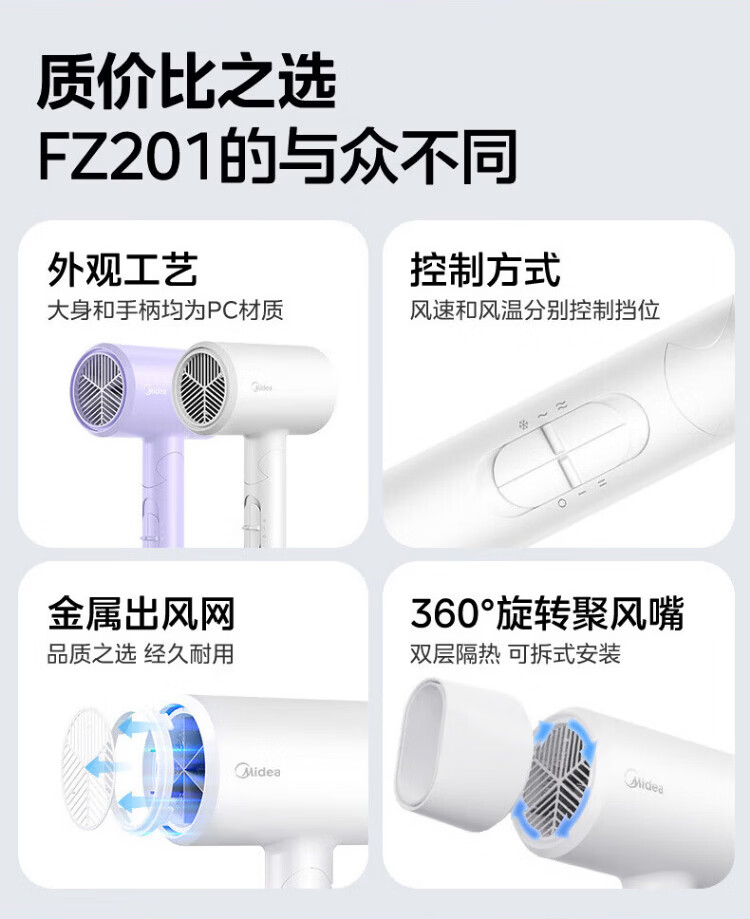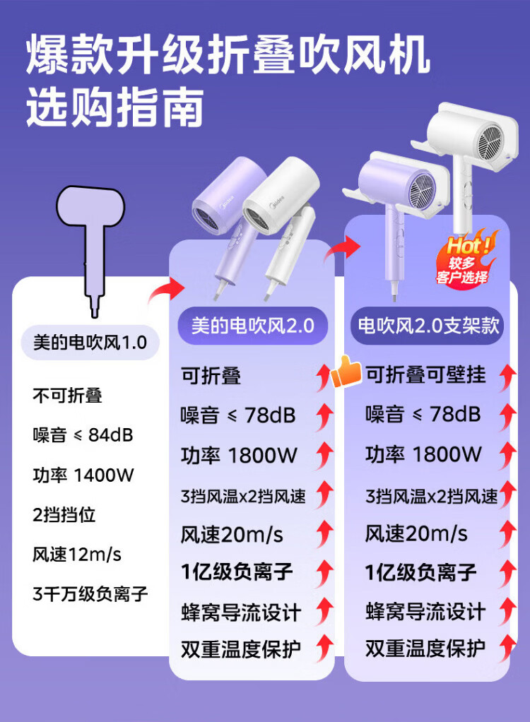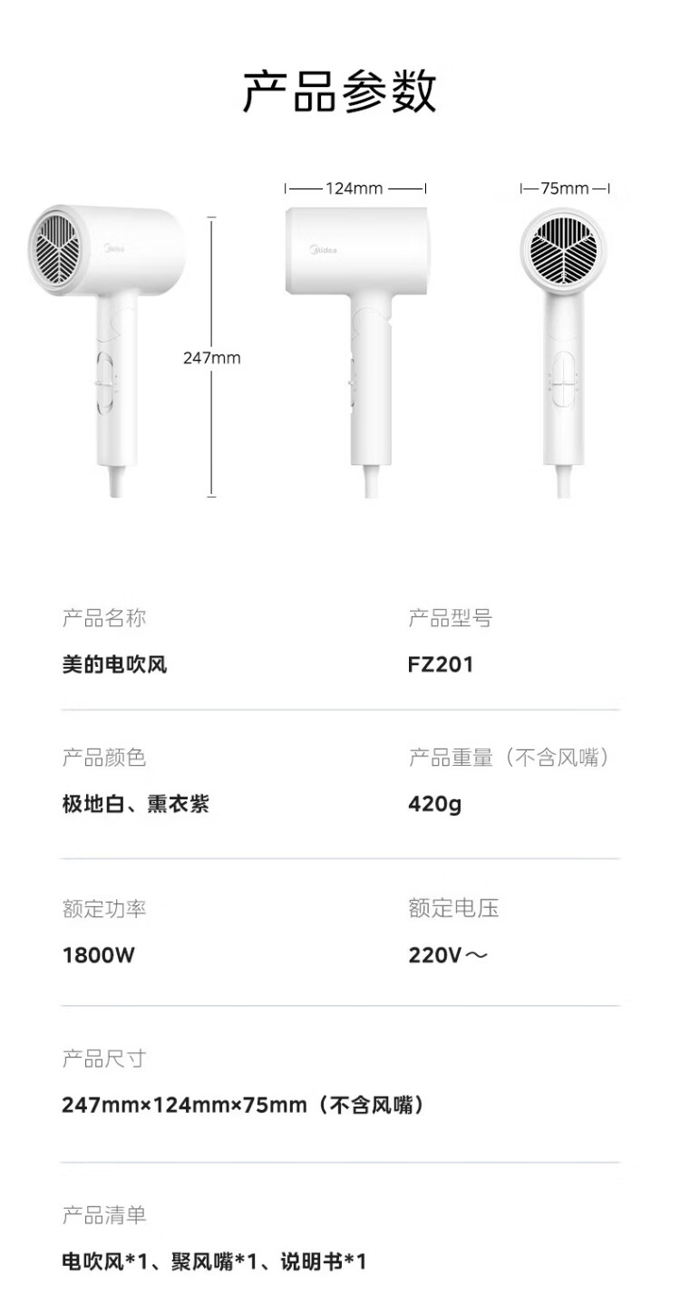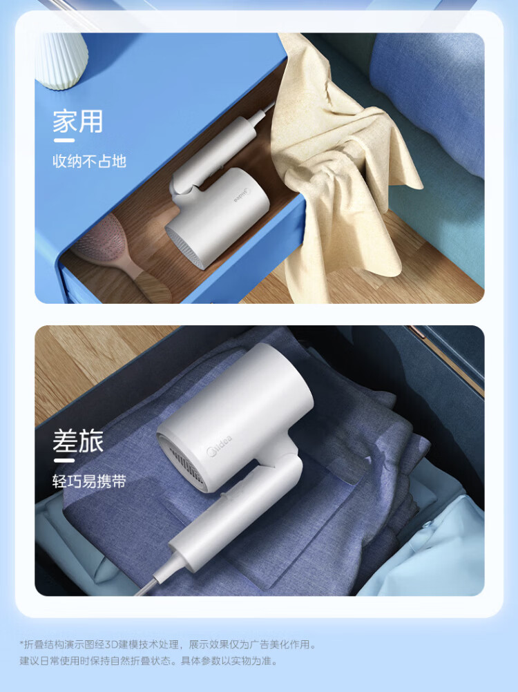 Midea foldable and portable high-power home hair dryer negative ion constant temperature hair care portable business trip home hair dryer student dormitory can be used for men and women holiday birthday gifts portable and foldable 1800W high power quick drying