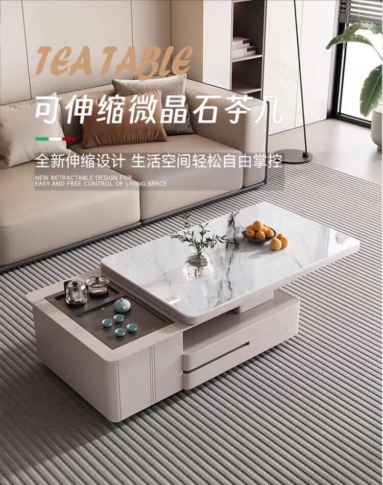 Deting living room coffee table with kettle integrated microcrystalline stone stretching dual-purpose Kung Fu tea table home coffee table TV cabinet 1.2 meters telescopic coffee table tea style fully equipped