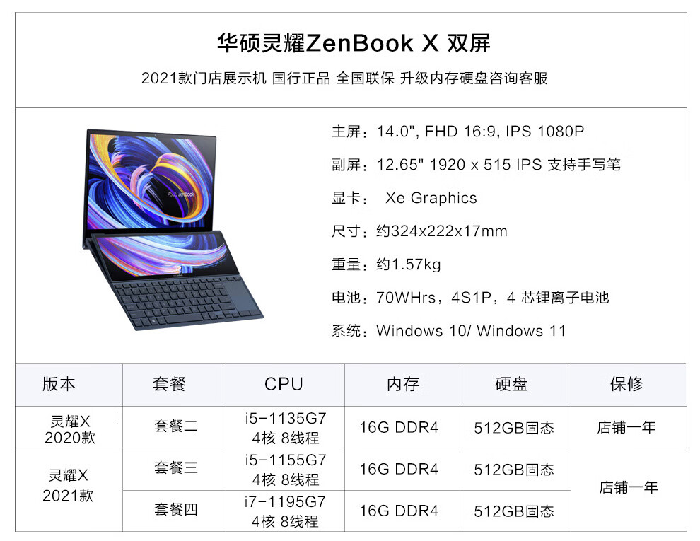 ASUS laptop Lingyao x dual screen pro second-hand thin and light office notebook designer computer 14-inch high-performance all-round laptop Lingyao X dual screen/1195G7/16G/512G/Xe 90% new