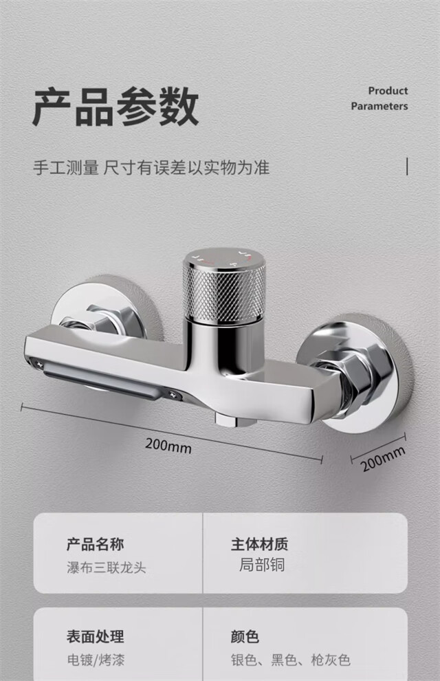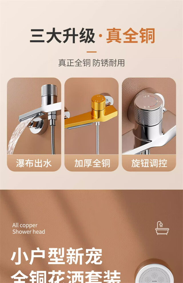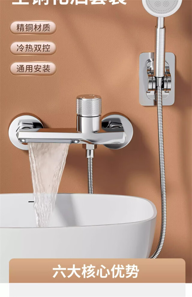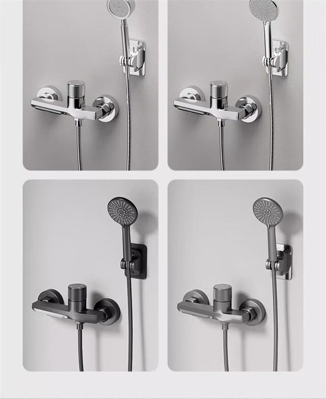 Bowen all-copper shower faucet shower set simple bathtub triple hot and cold flower shower shower booster nozzle silver double outlet faucet (with accessories)