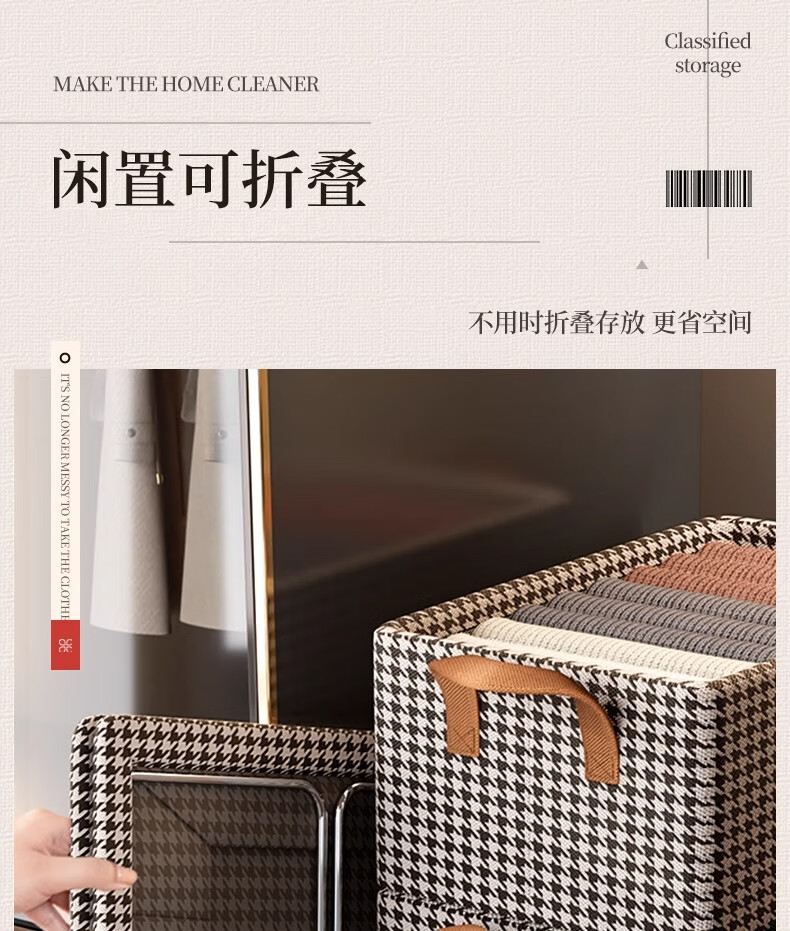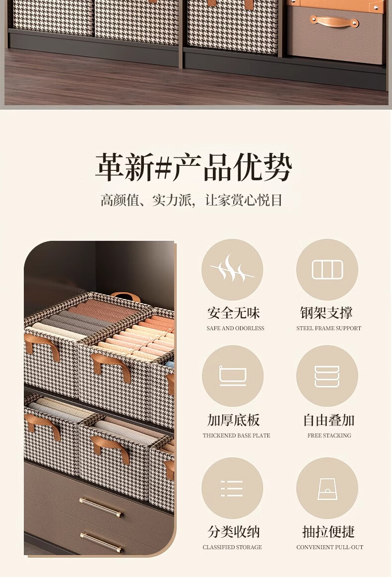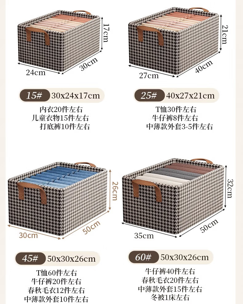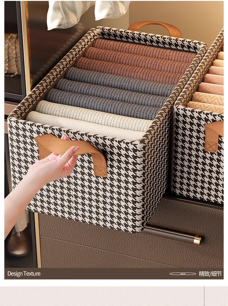 Youna 6-pack houndstooth clothes storage box home wardrobe layered organizer boxed clothes and pants folding storage cabinet extra large 50*30*26 shoot one and get six pieces