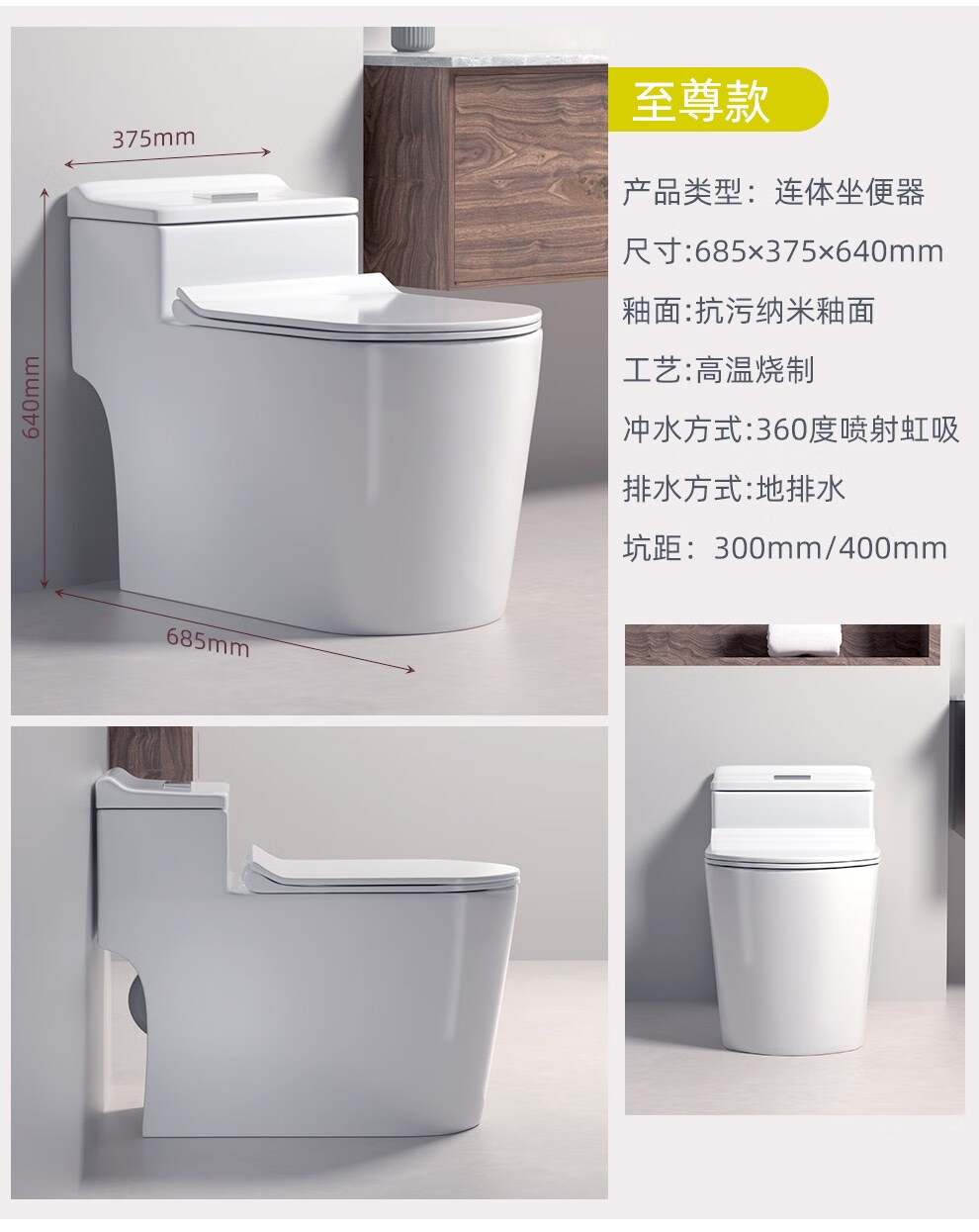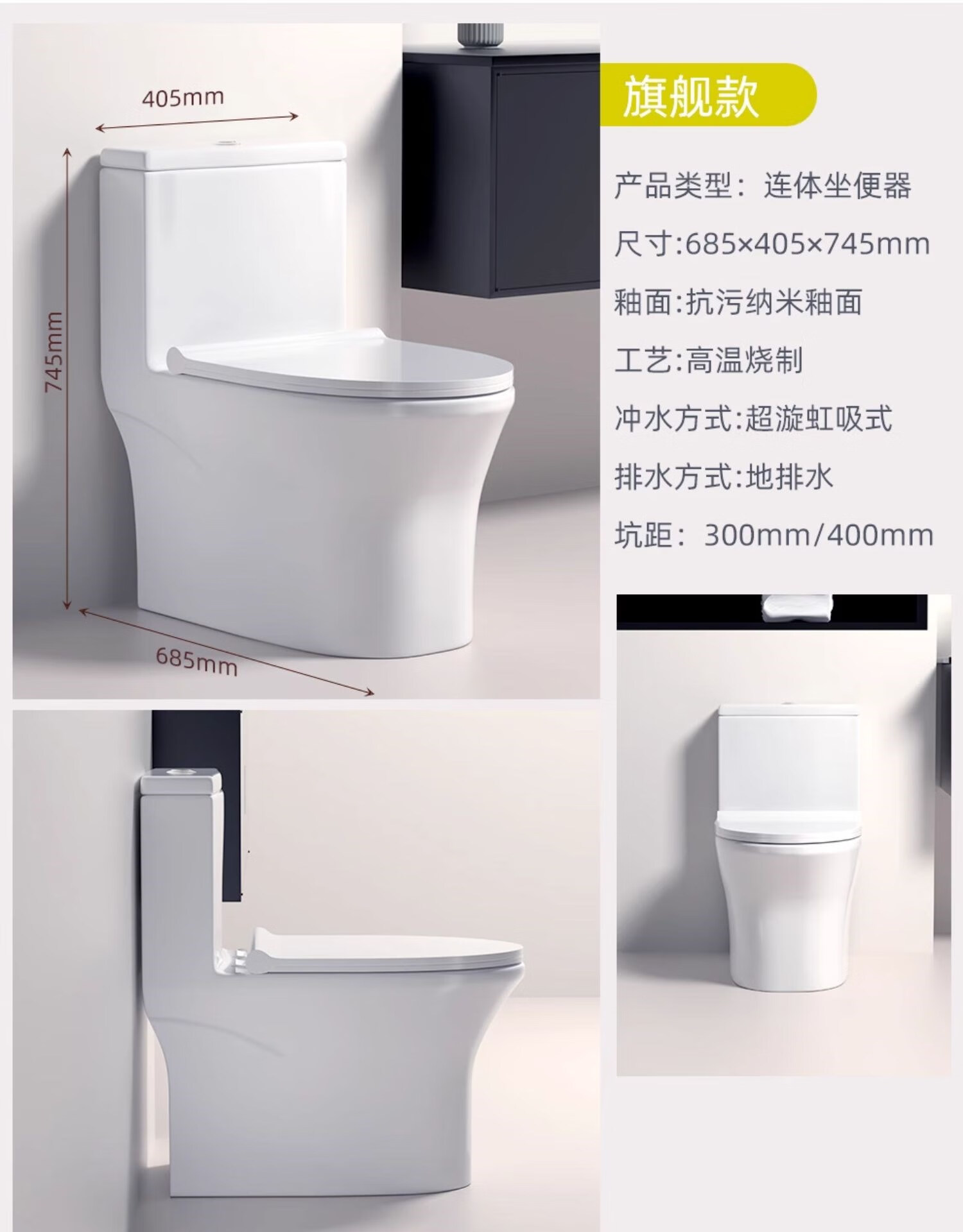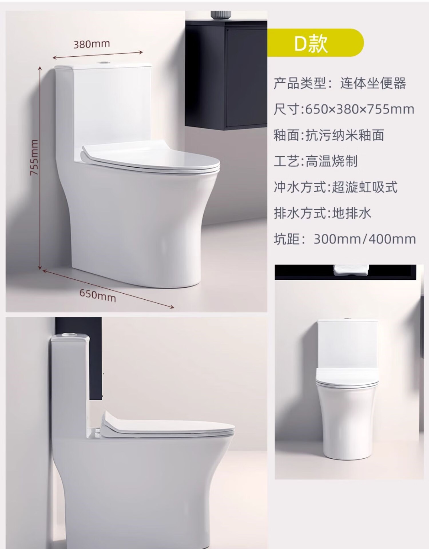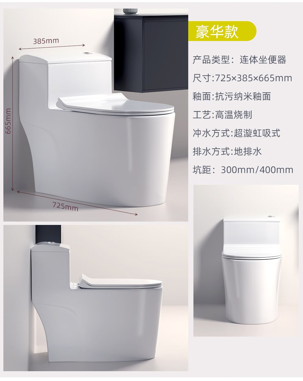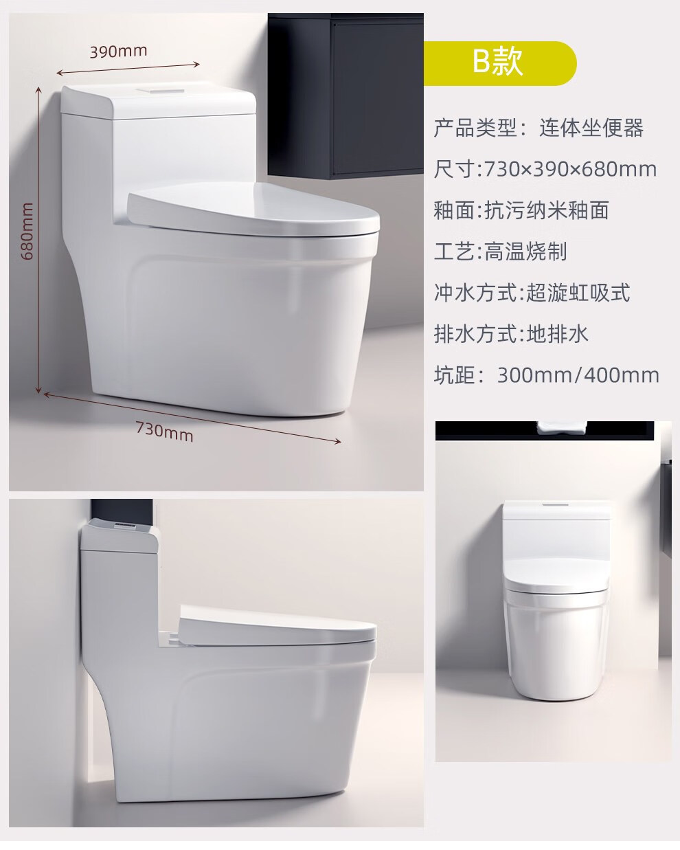 Toilet household flush toilet bathroom ceramic super swirl siphon toilet silent engineering water-saving anti-odor toilet F type top with direct flush type 400mm