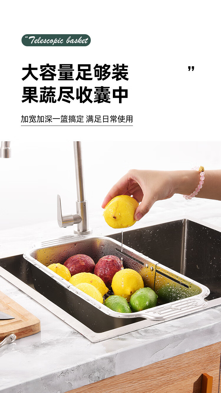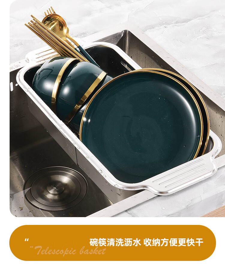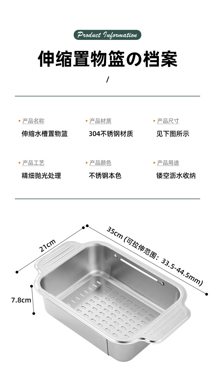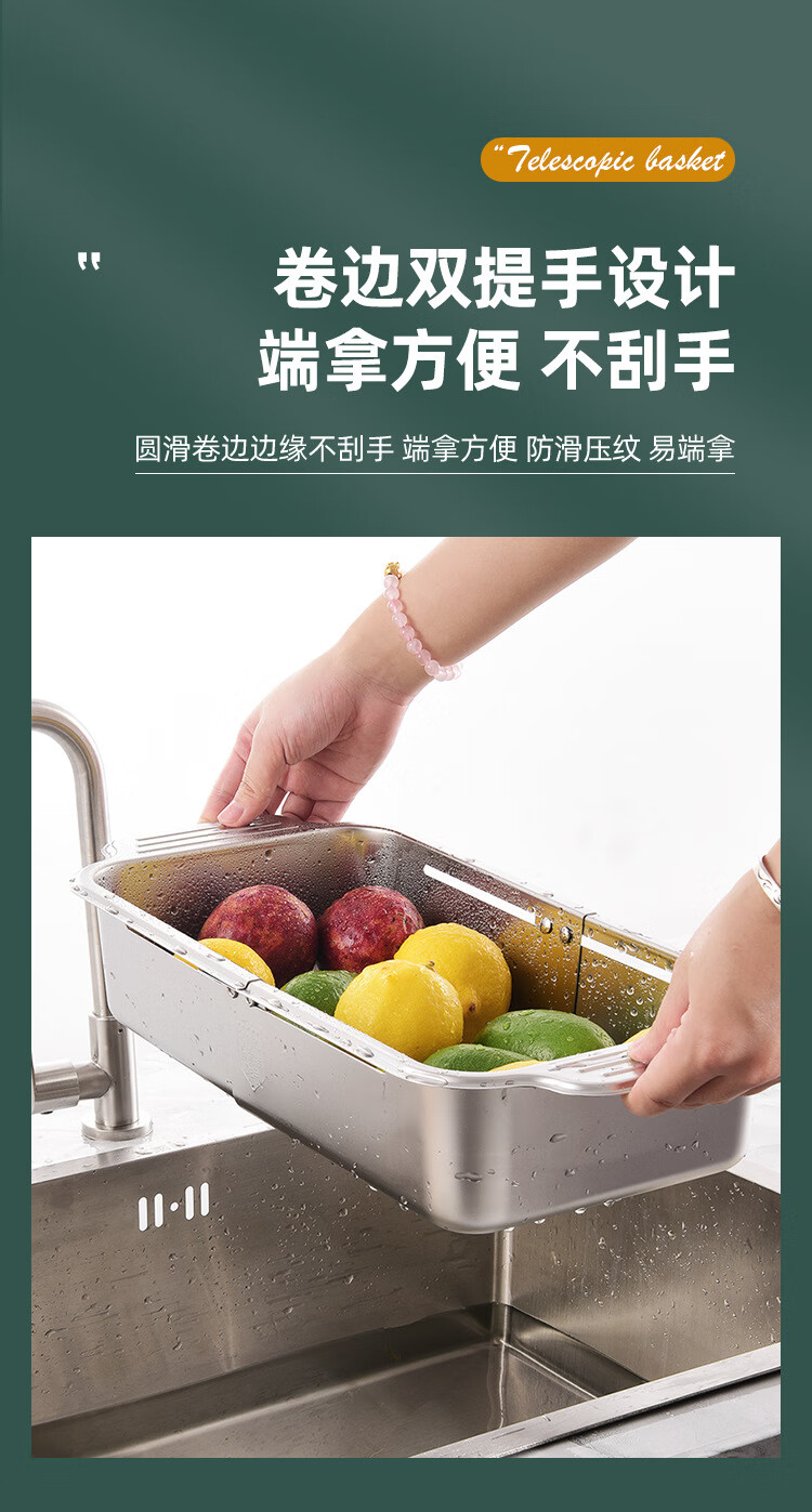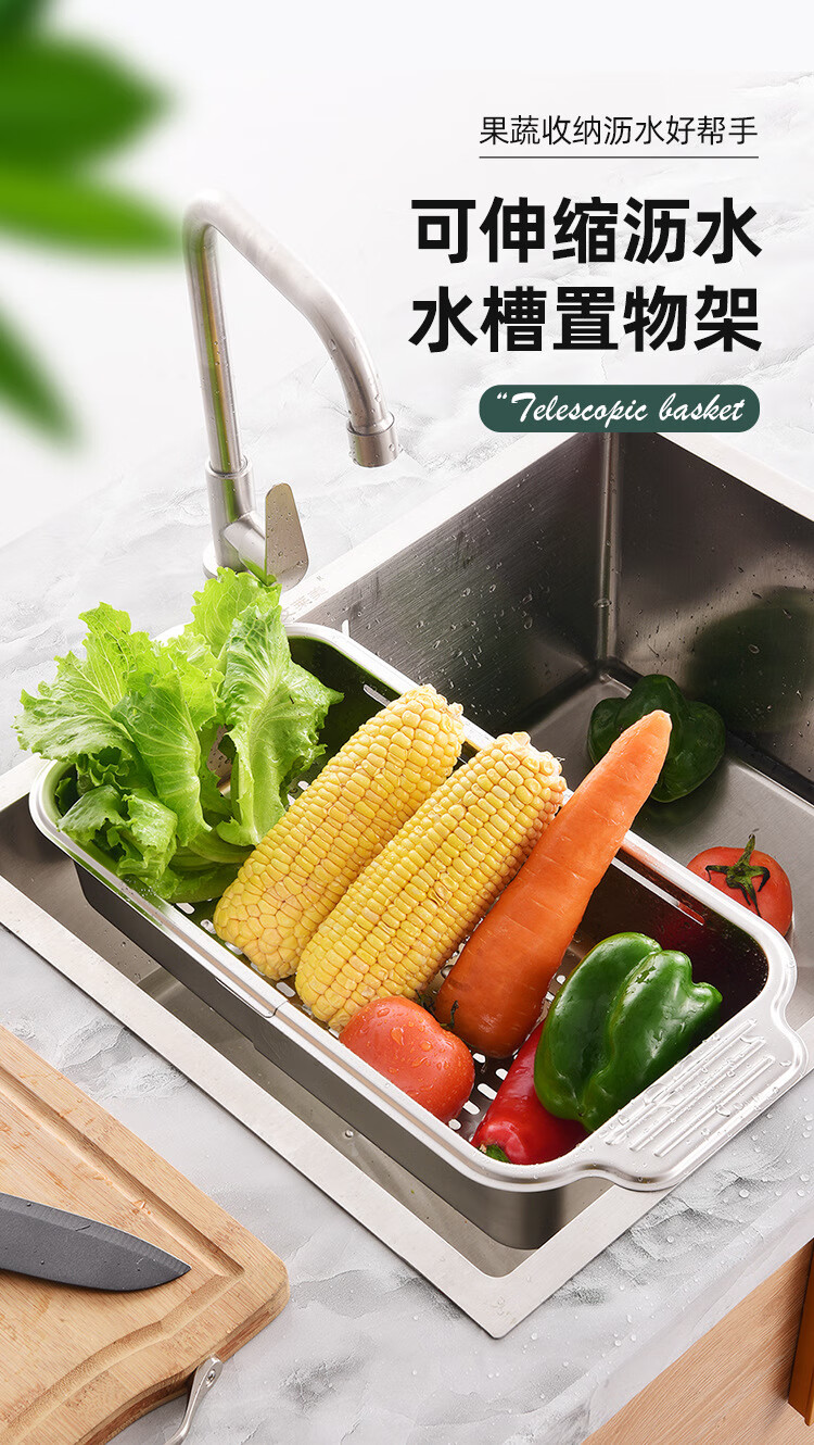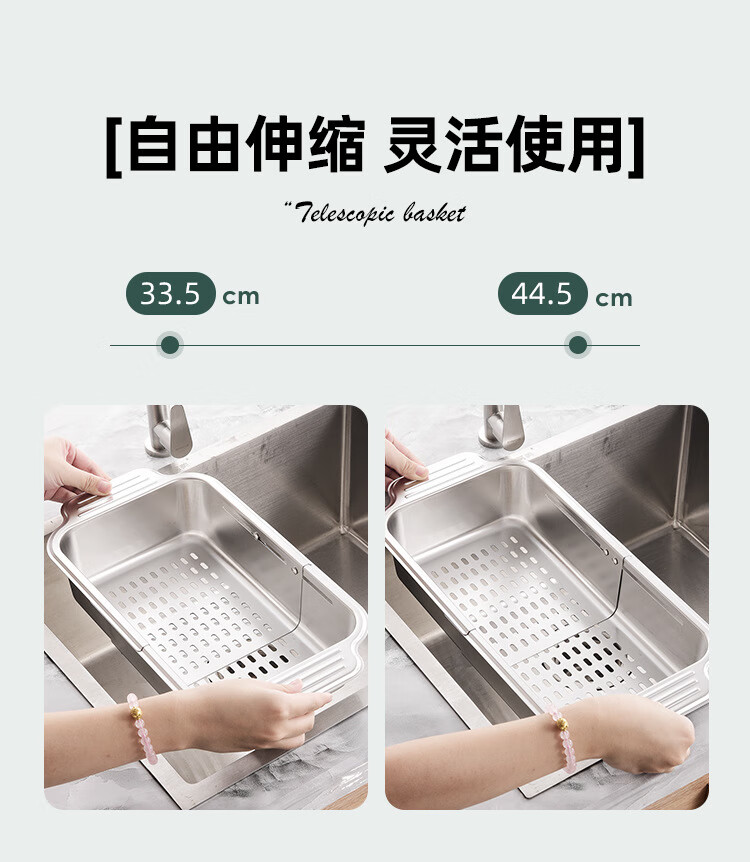 Zhuoji sink drain rack dish rack 304 stainless steel telescopic drain basket dishes chopsticks dishes kitchen sink rack 304 stainless steel (non-retractable telescopic) small size