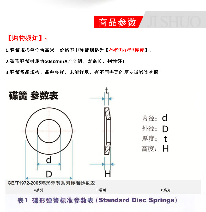 Jishuo GB1972 disc spring disc spring spindle butterfly washer disc pad disc spring disc spring 8- 200 200*90*14 1 piece