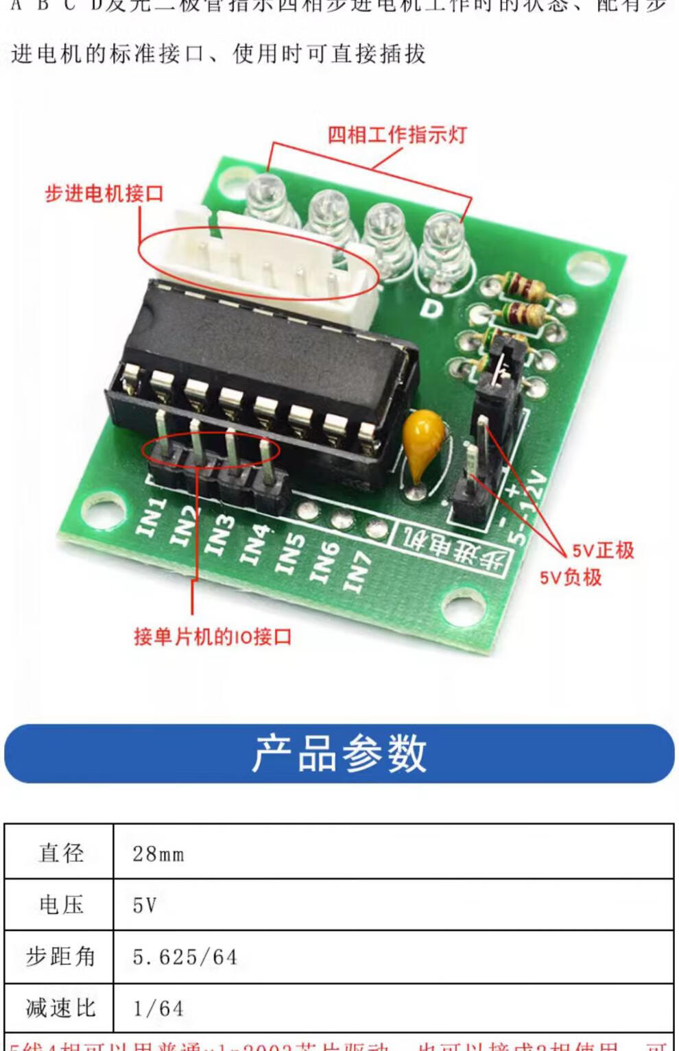Stepper motor 28BYJ4+ULN2003 driver board 4-phase 5-wire 5V12V stepper motor reduction motor module 28BYJ-48-5V stepper motor