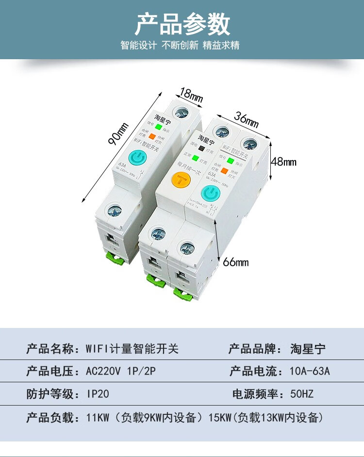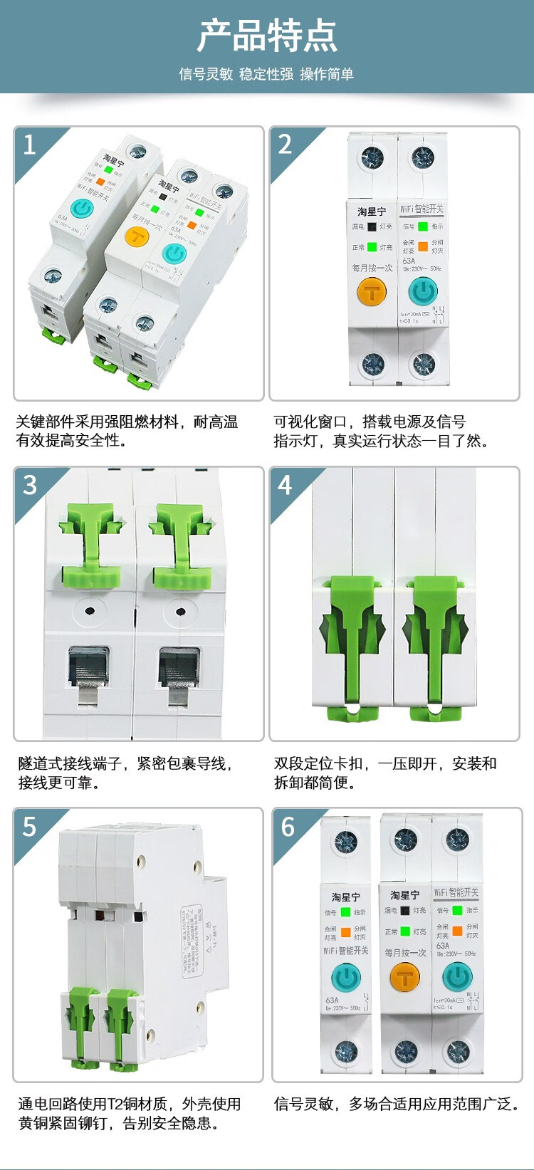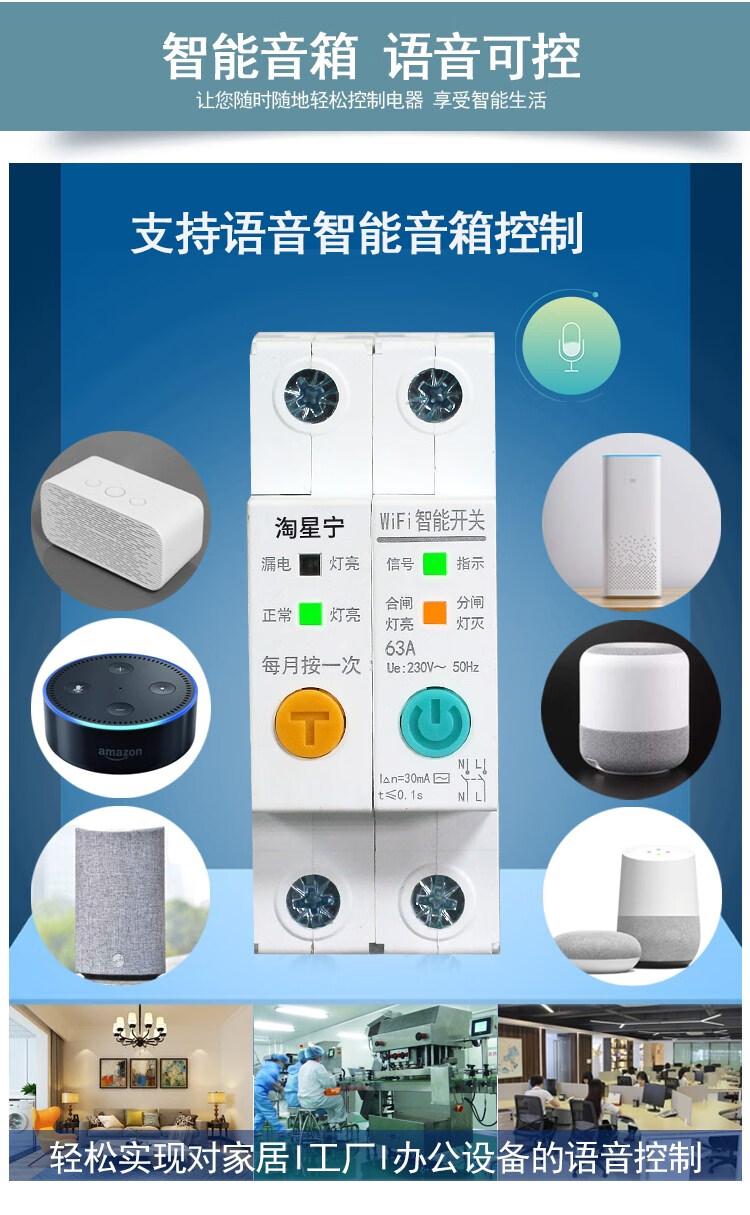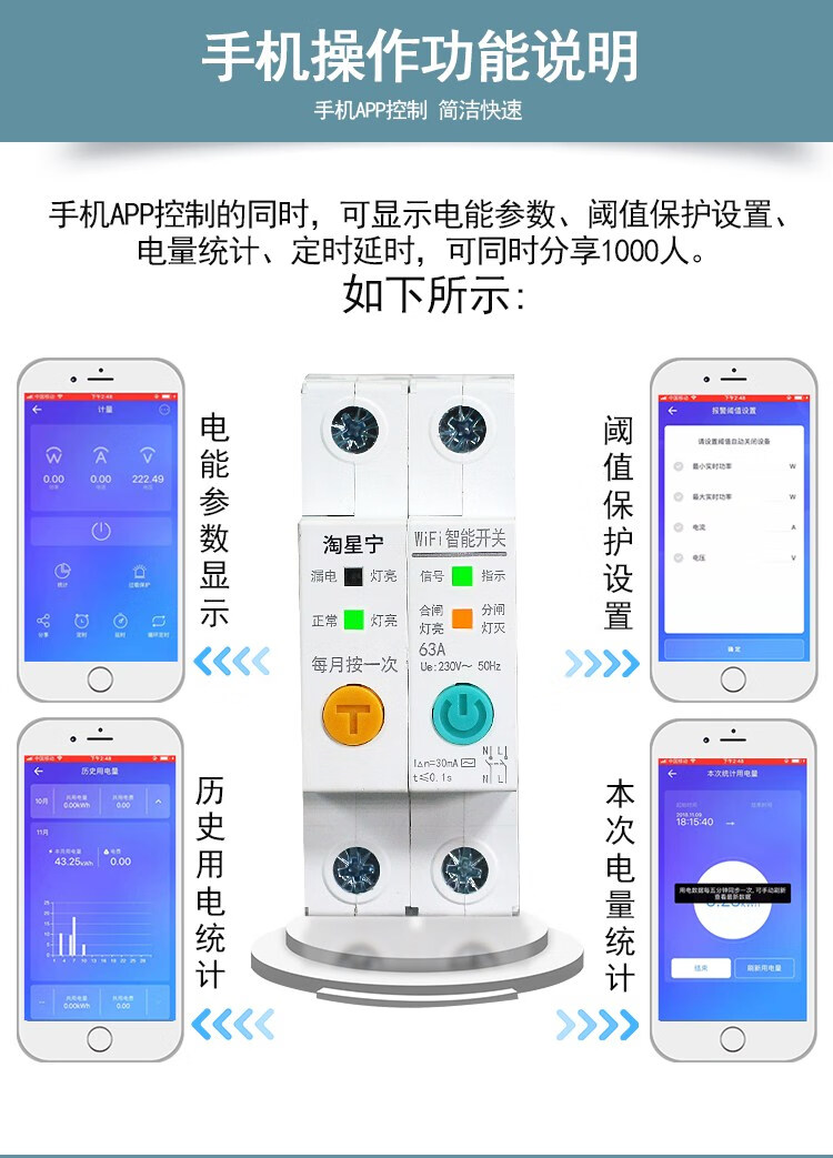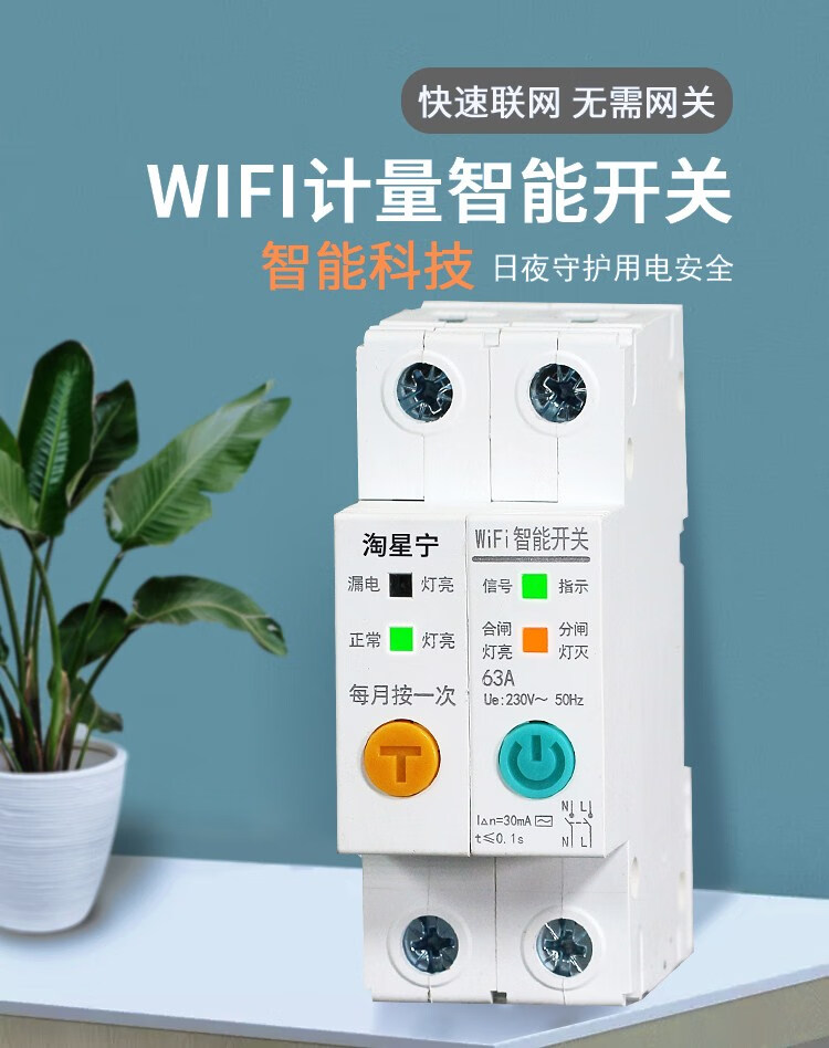 WIFI circuit breaker metering smart air switch mobile phone remote control leakage air switch 220V power light 63A 2P