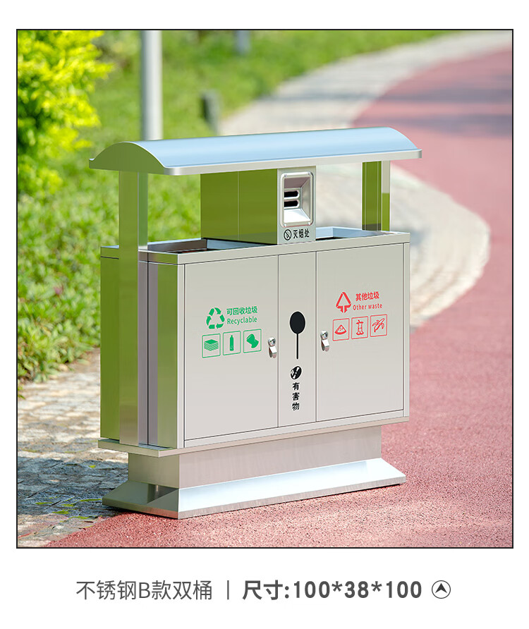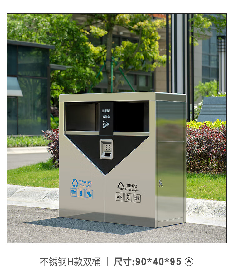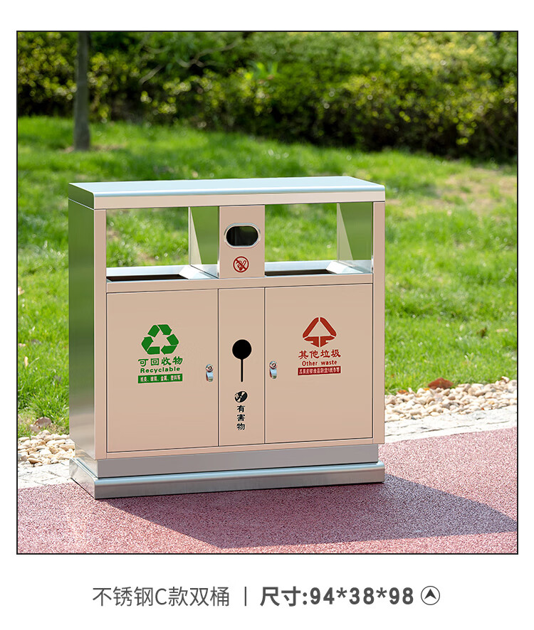 Outdoor trash can stainless steel large classification sanitation peel box outdoor property community street trash can 201 stainless steel A double barrel quality is ours
