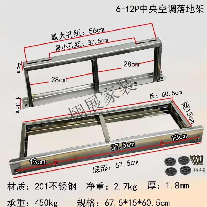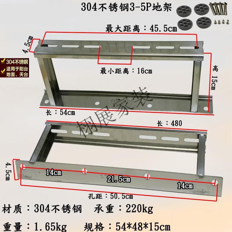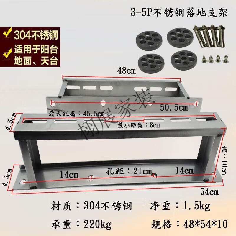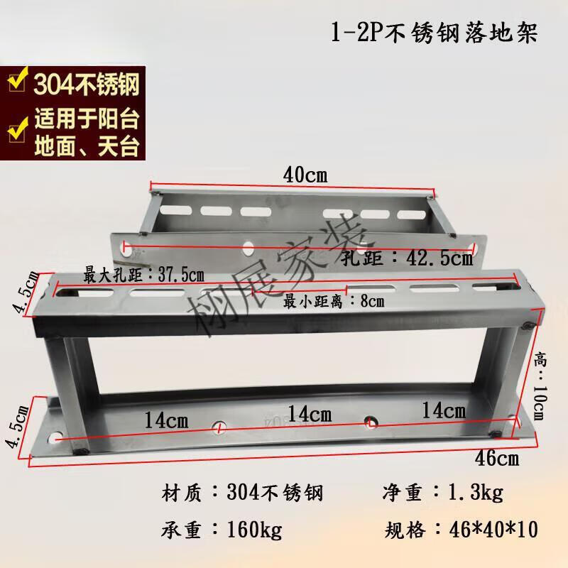 Jingchen customized 304 stainless steel air conditioner bracket thickened outdoor unit floor stand raised base 1-5P air conditioner cushioning bracket 304 thickened 10 cm floor stand 1-2P without installation screws