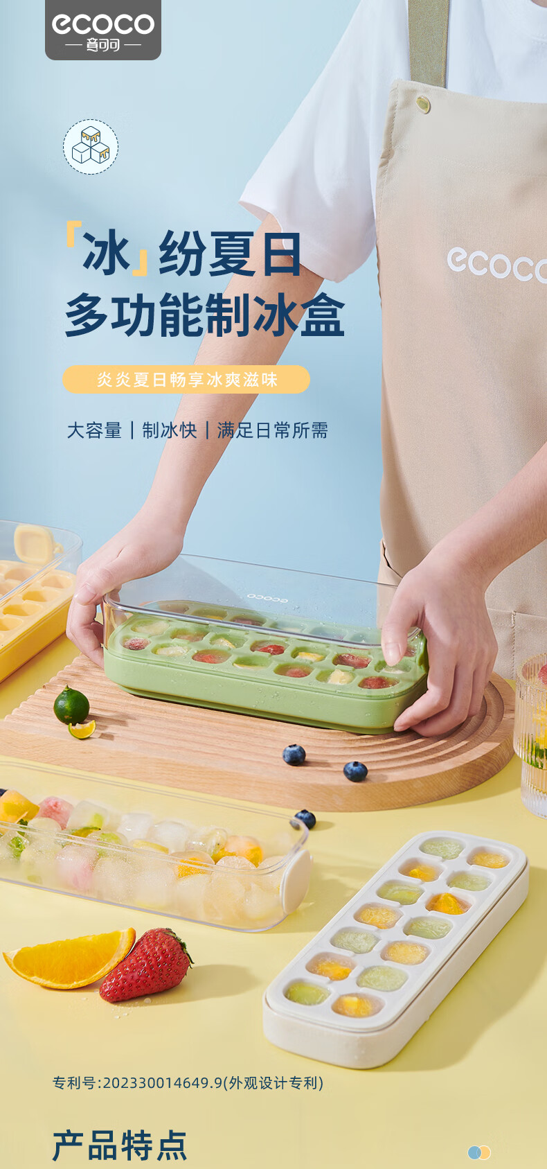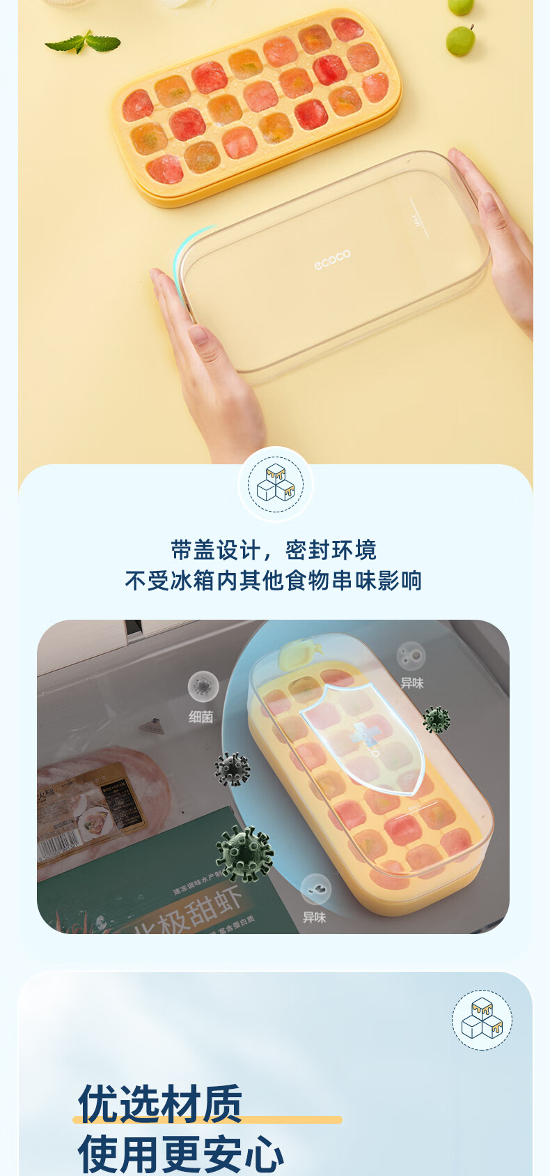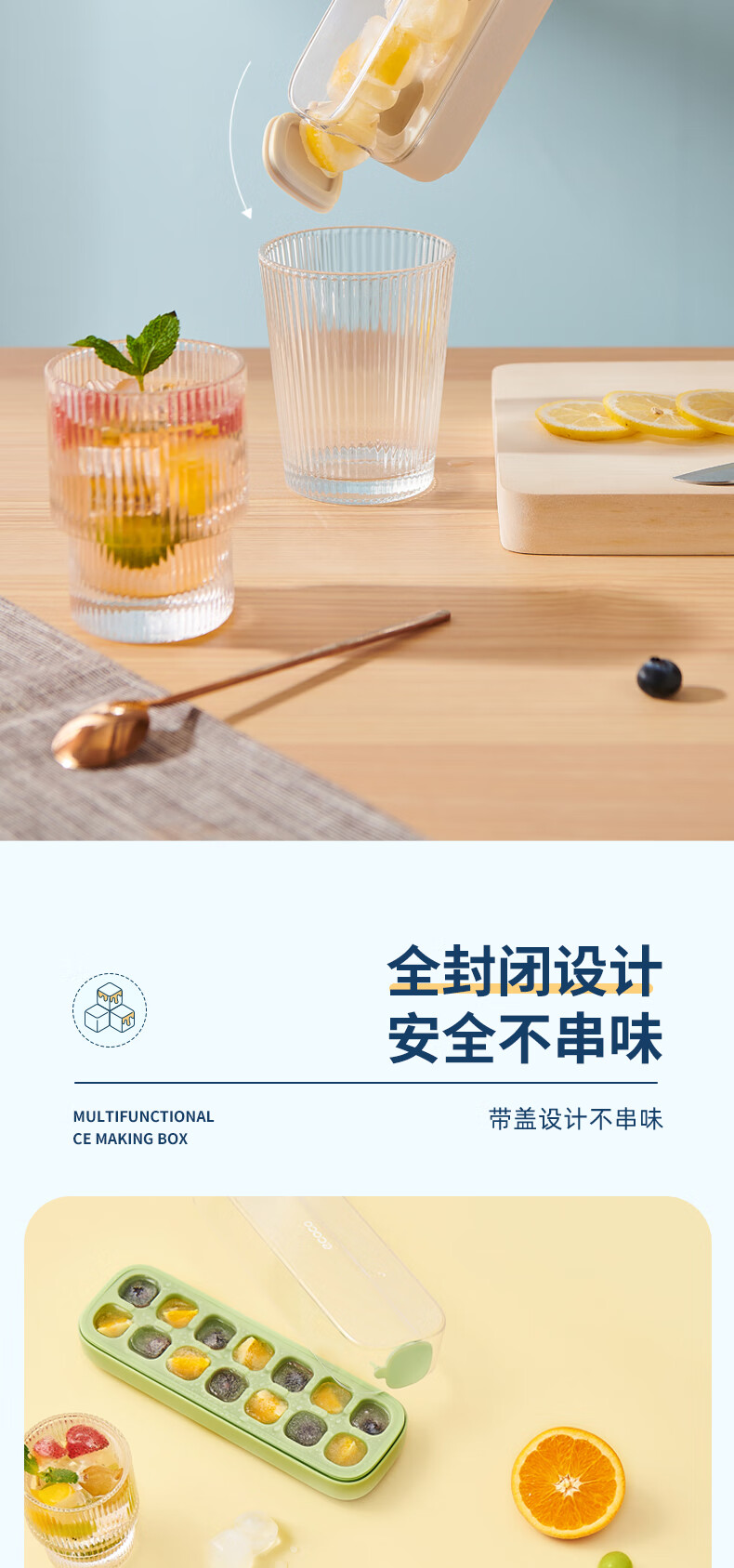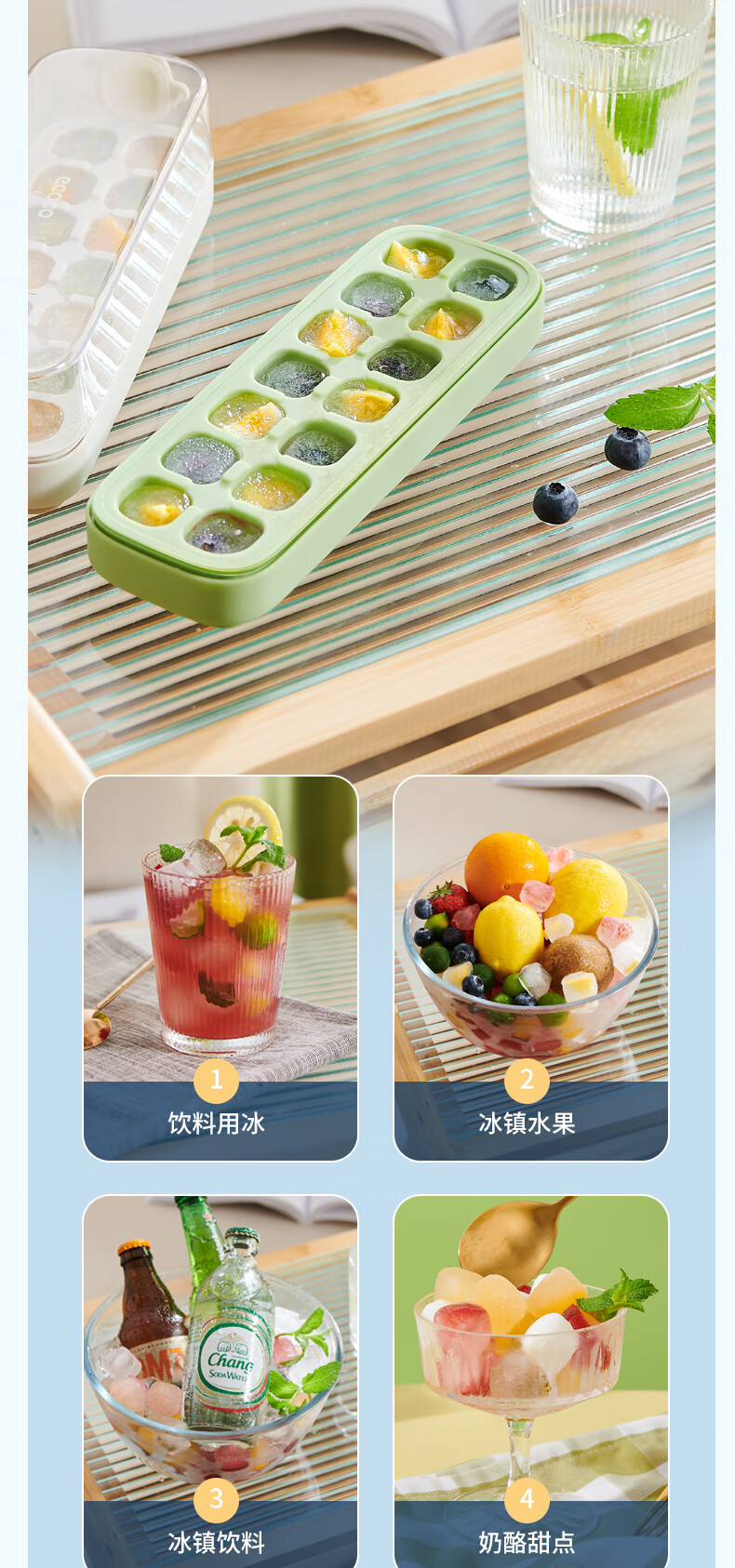 Ecoco pressed ice cube mold ice tray ice box with lid automatic water filling food grade homemade refrigerator ice cube mold large size 21 compartments mint green