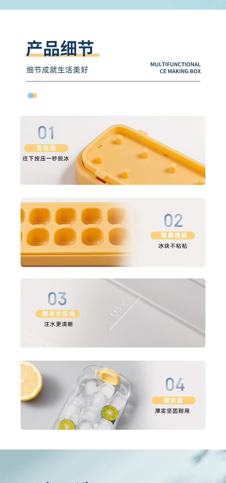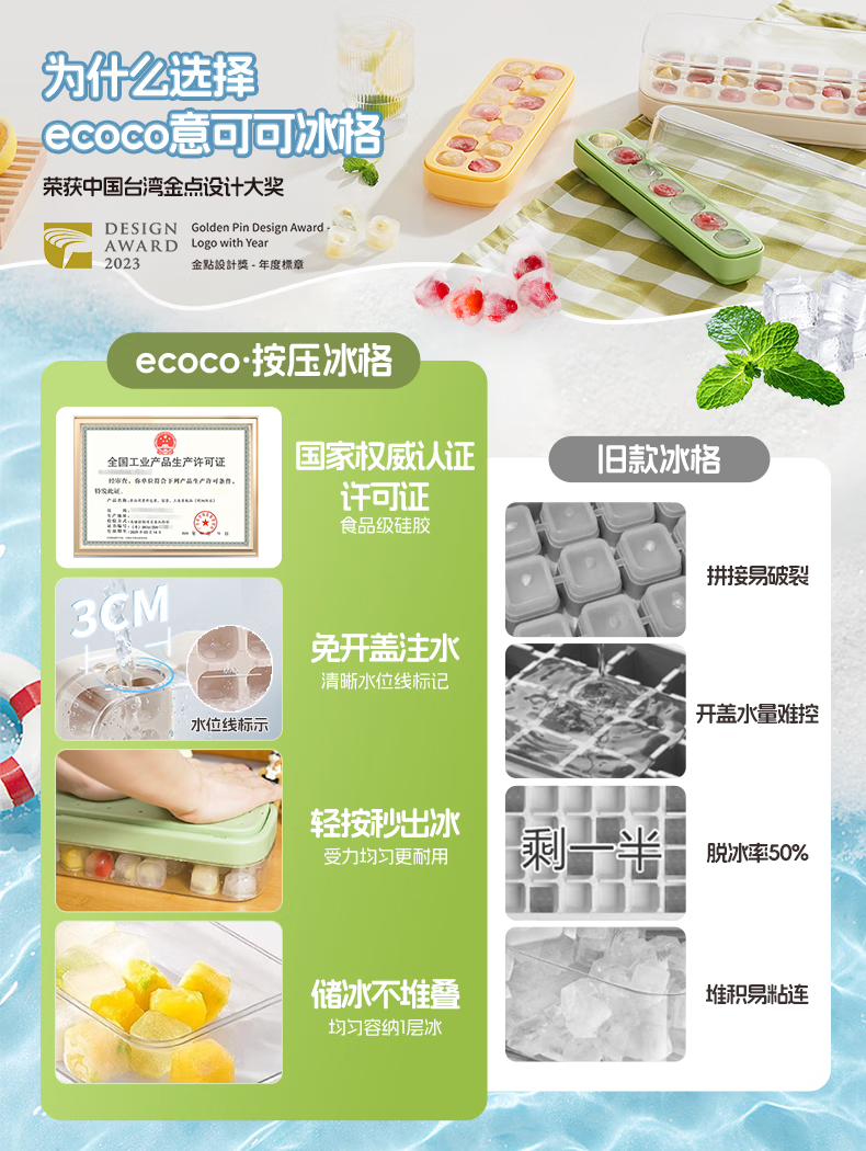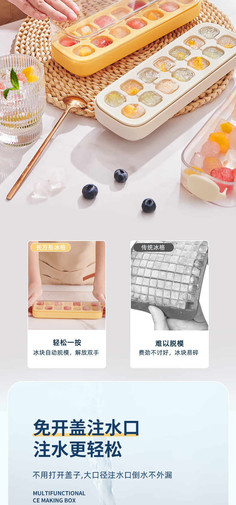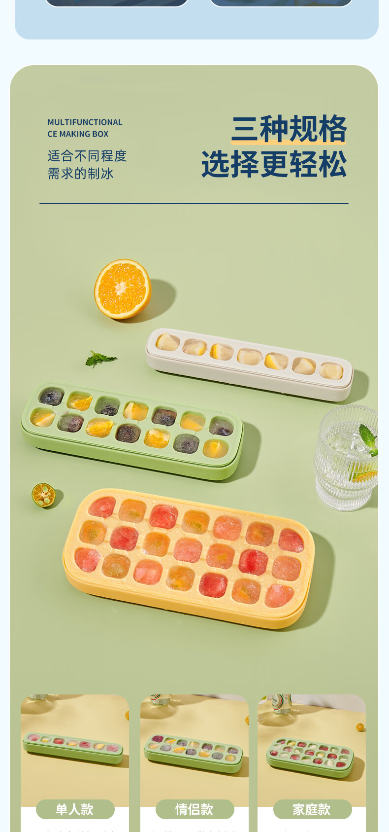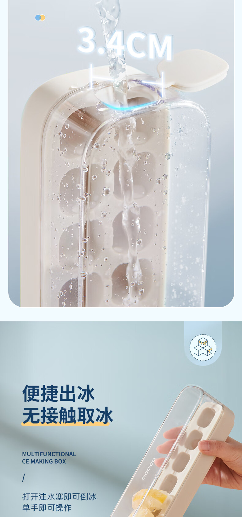 Ecoco pressed ice cube mold ice tray ice box with lid automatic water filling food grade homemade refrigerator ice cube mold large size 21 compartments mint green
