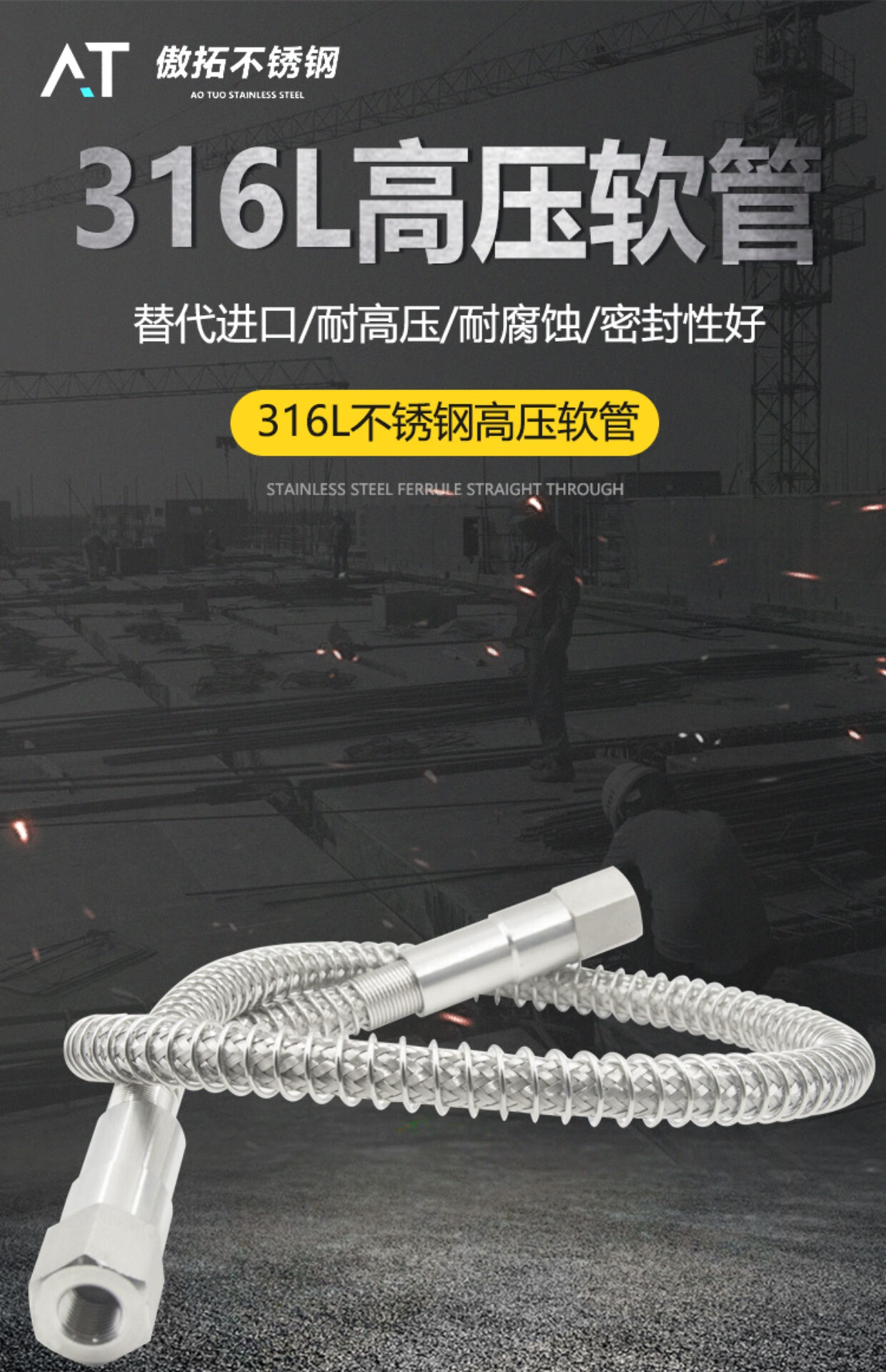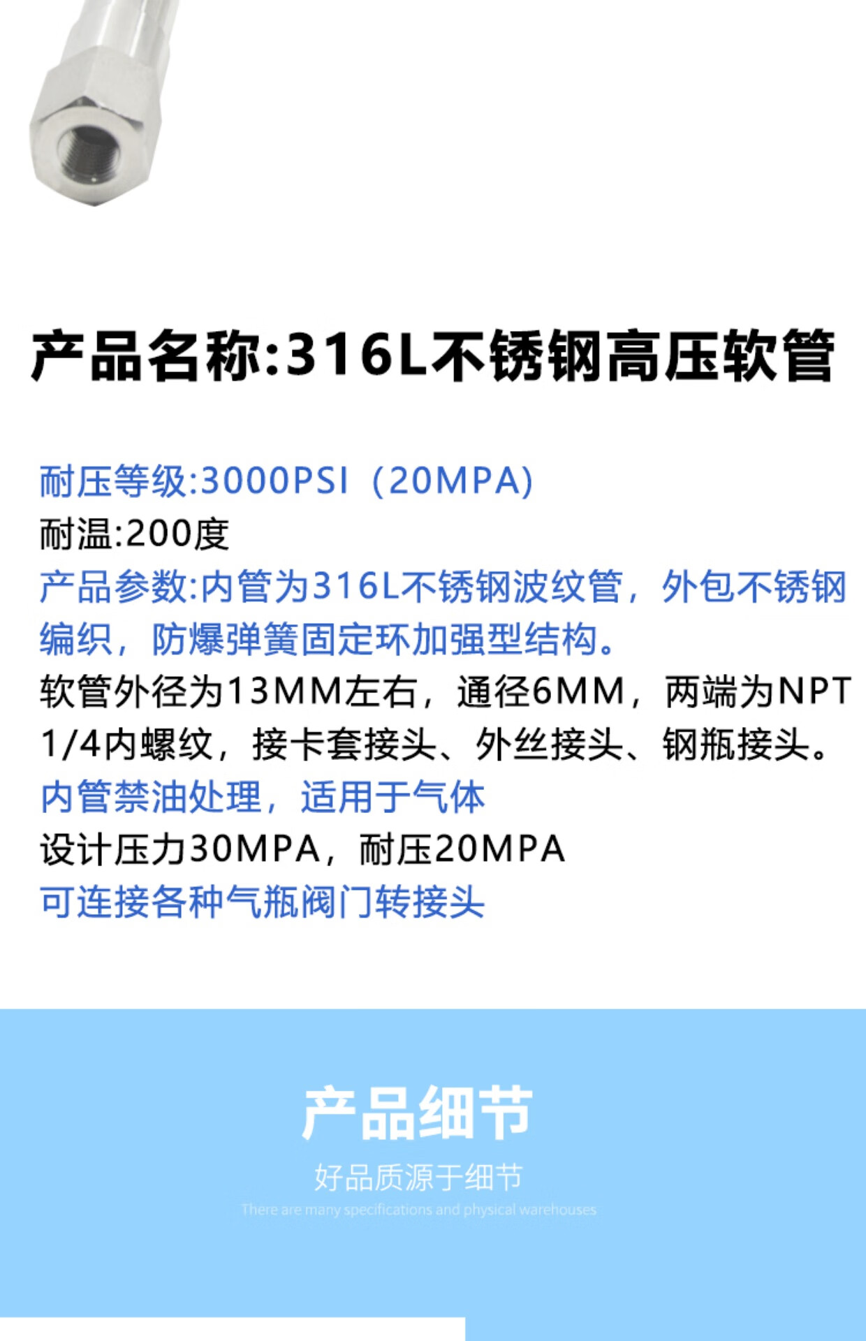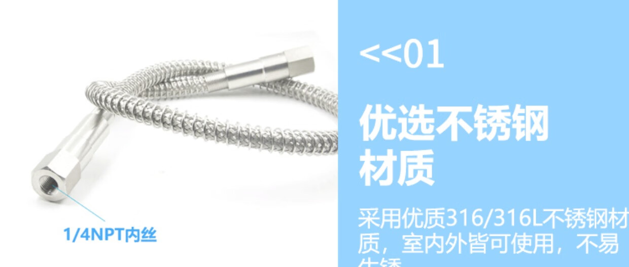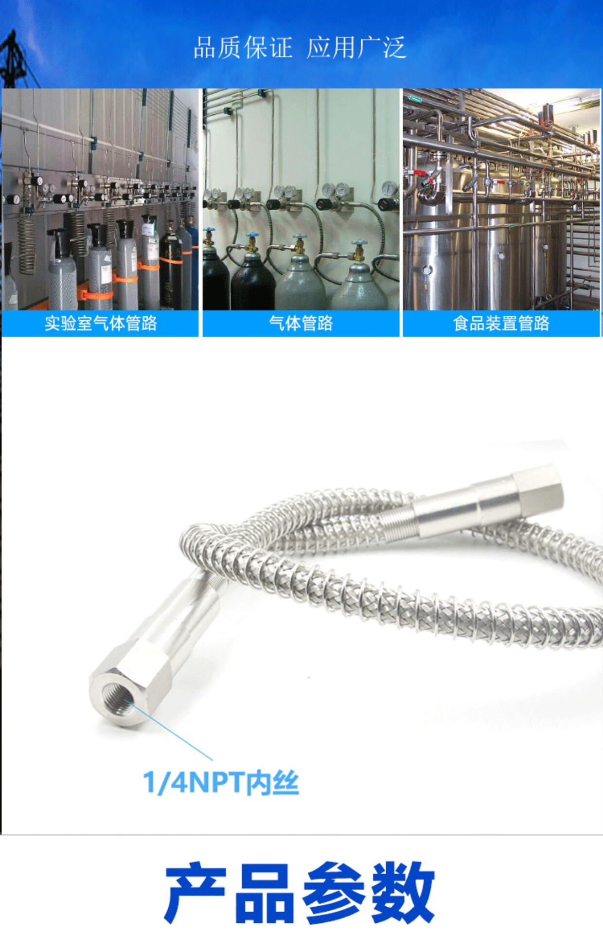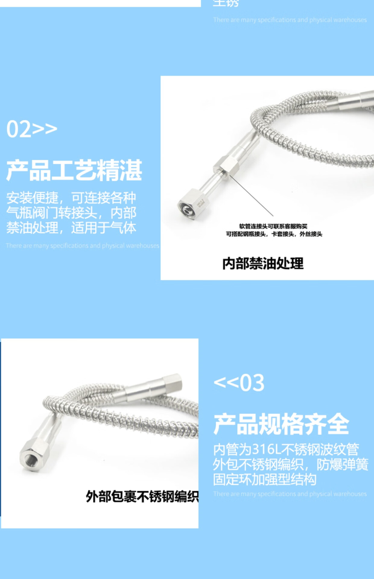 Stainless steel high pressure hose metal bellows NPT1/4 internal thread cylinder connection explosion-proof gas line pipe 0.5m