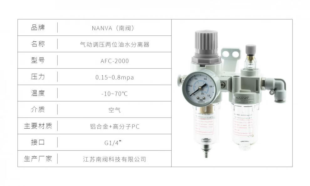 South valve AFC2000 pneumatic filtration and pressure reducing two-way oil-water separation filter pressure regulating valve AFR2000AL2000 does not include connectors