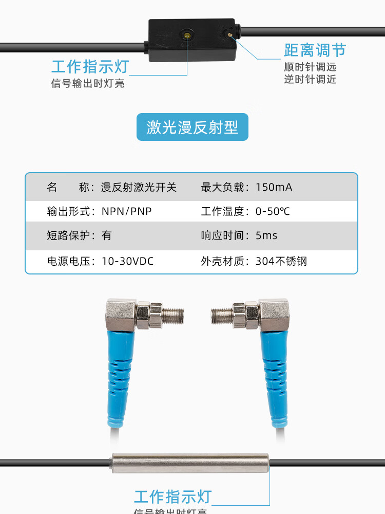 Laser sensor M4M5M6M8 diffuse visible light micro photoelectric switch sensor infrared sensor HD04J-D05PK PNP normally open