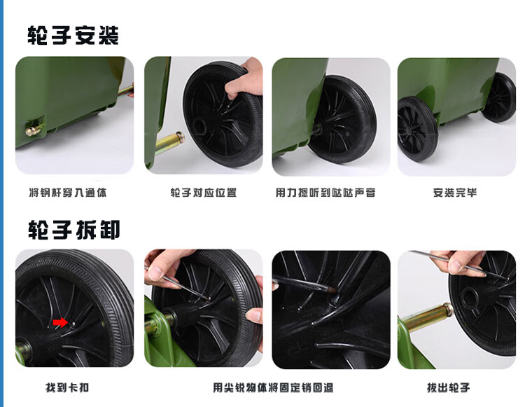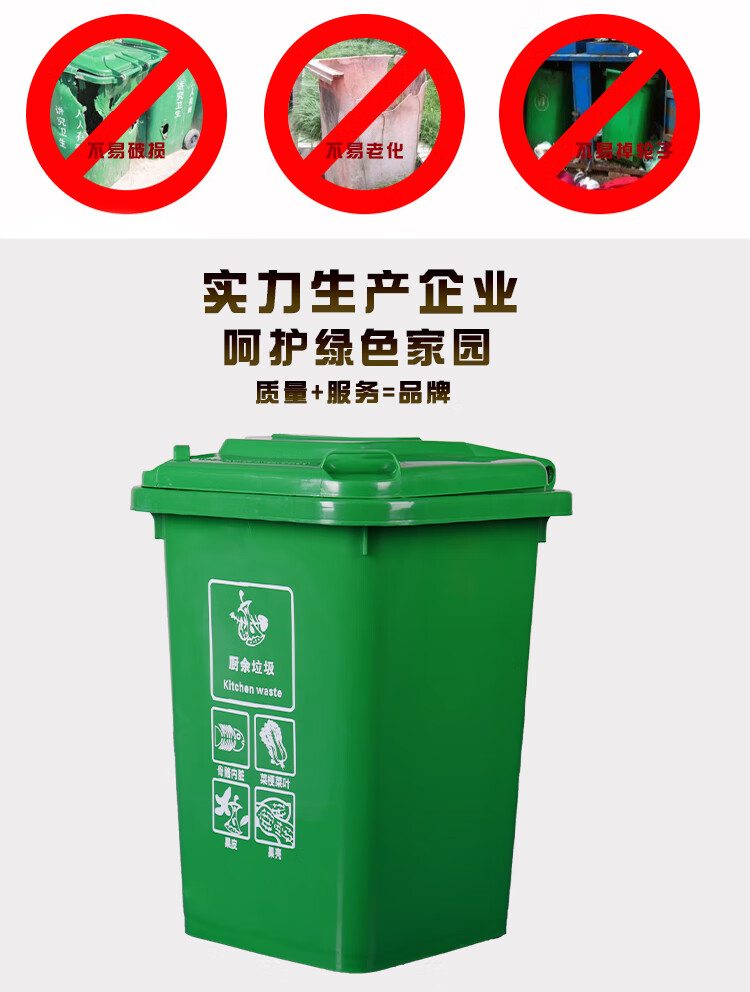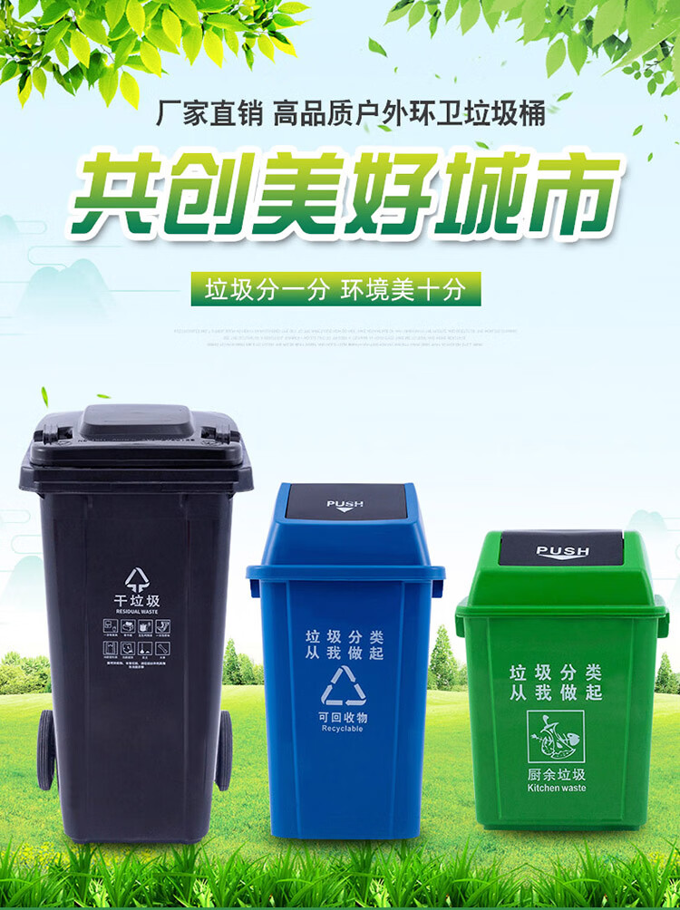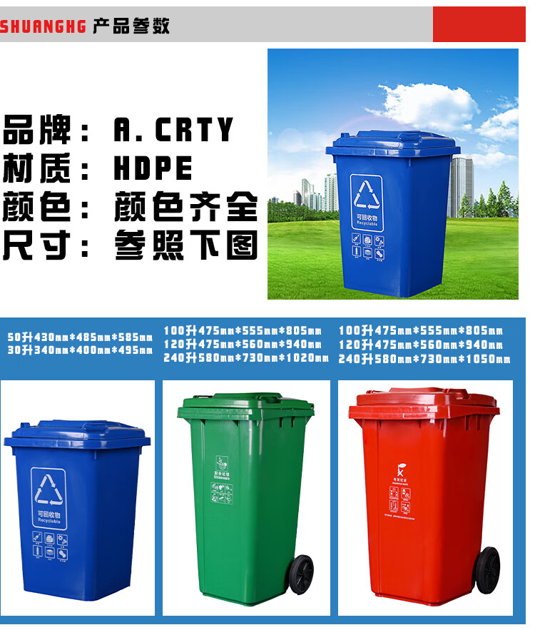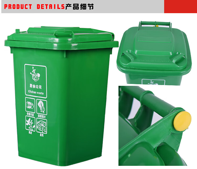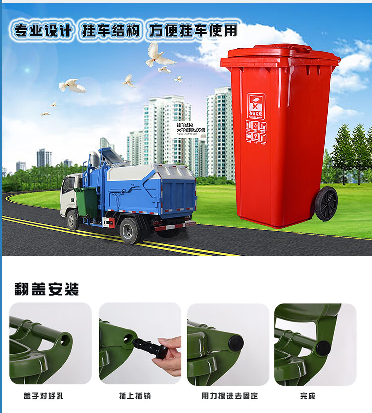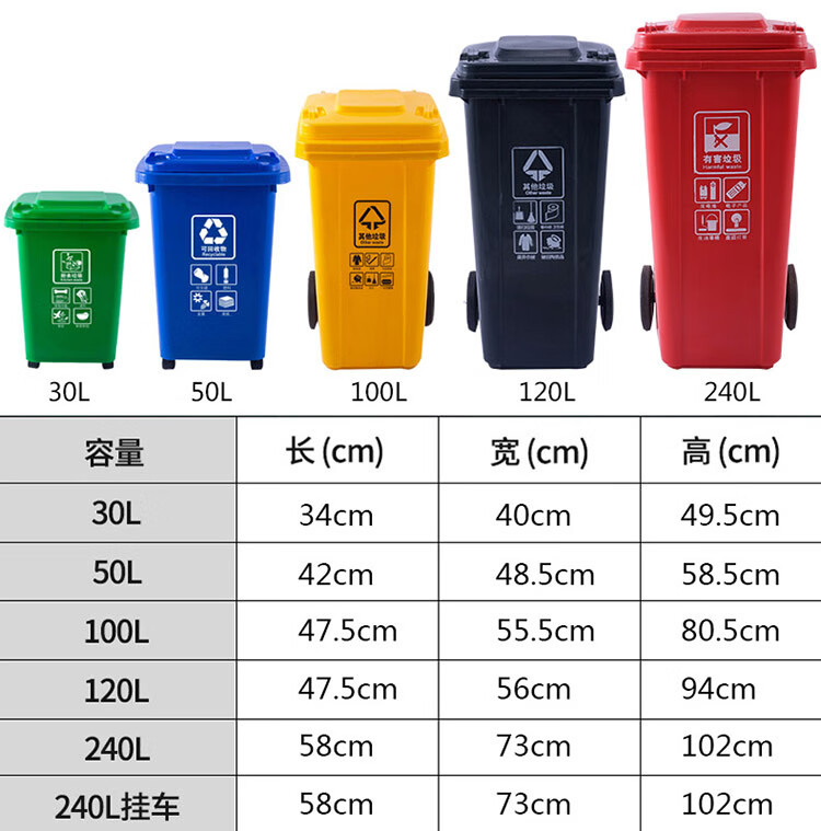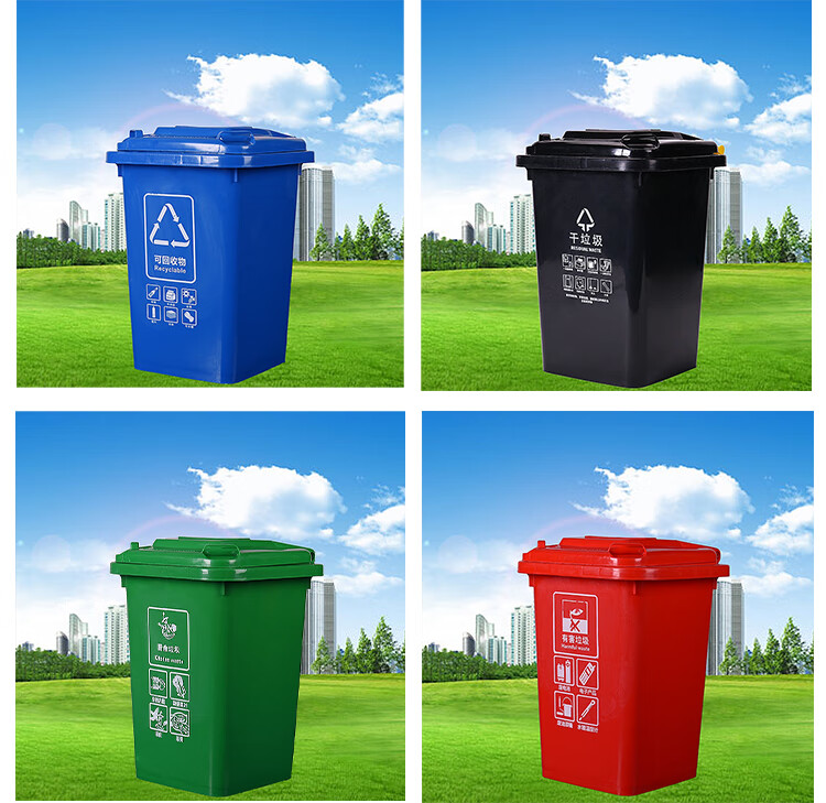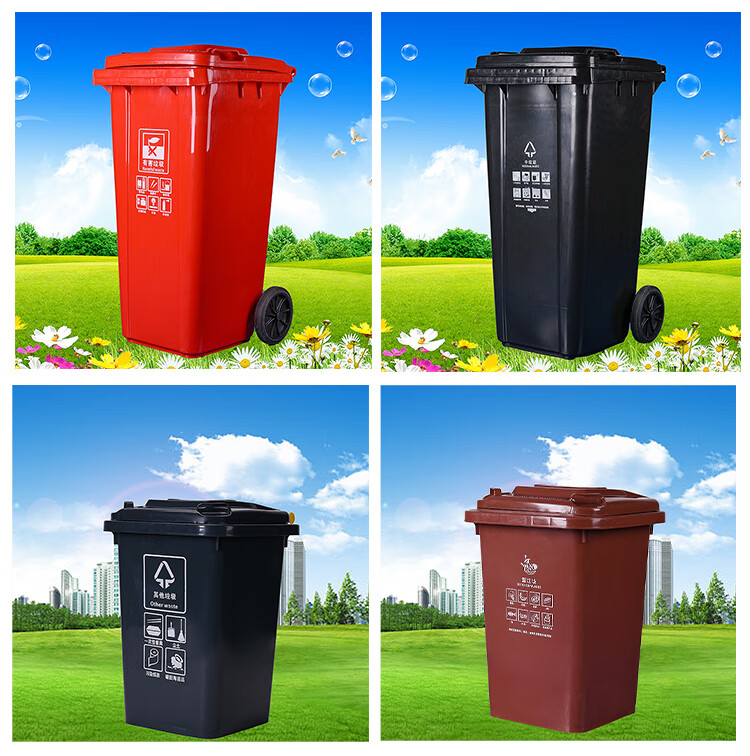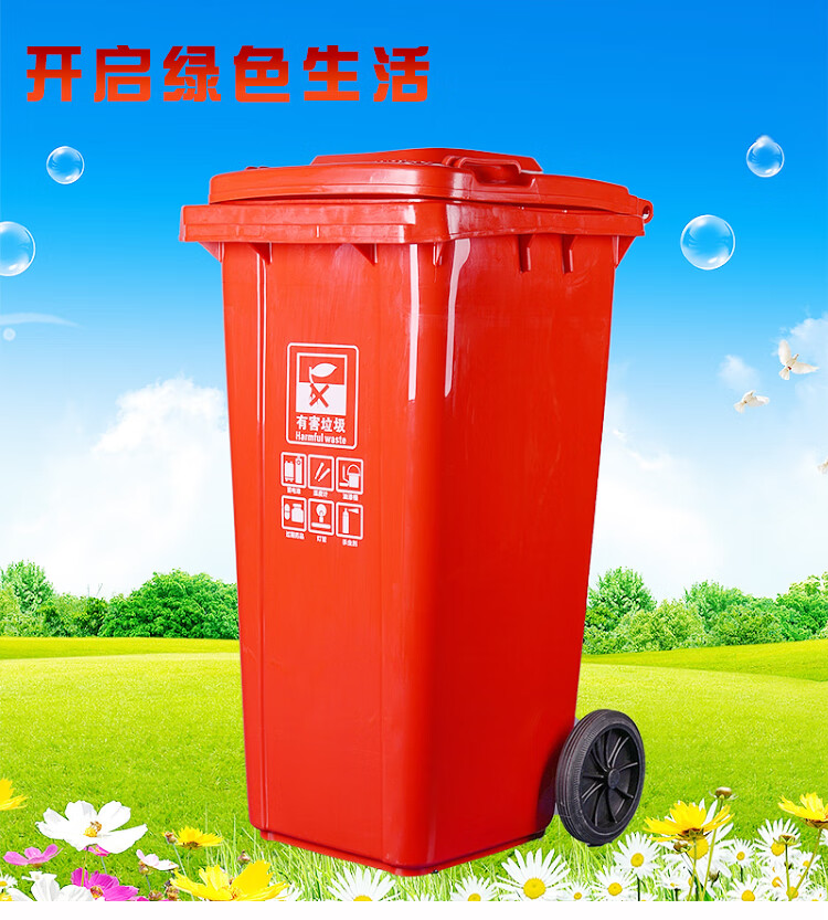 Outdoor trash can large trailer garbage classification property hotel commercial wheeled cover large capacity thickened 50 liters four wheels + cover + red harmful