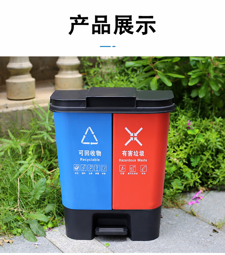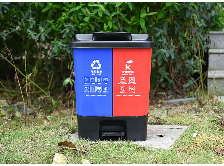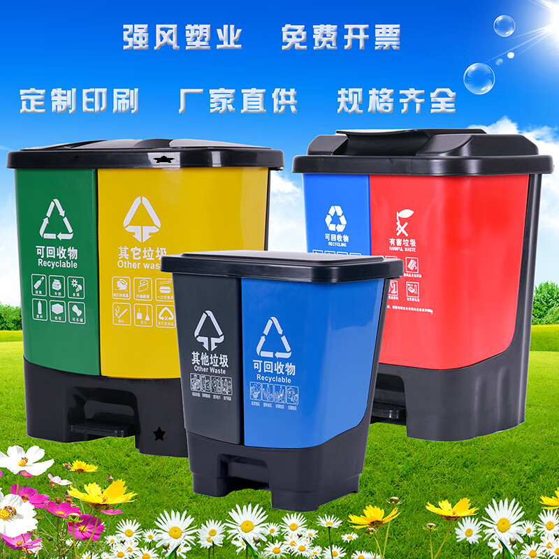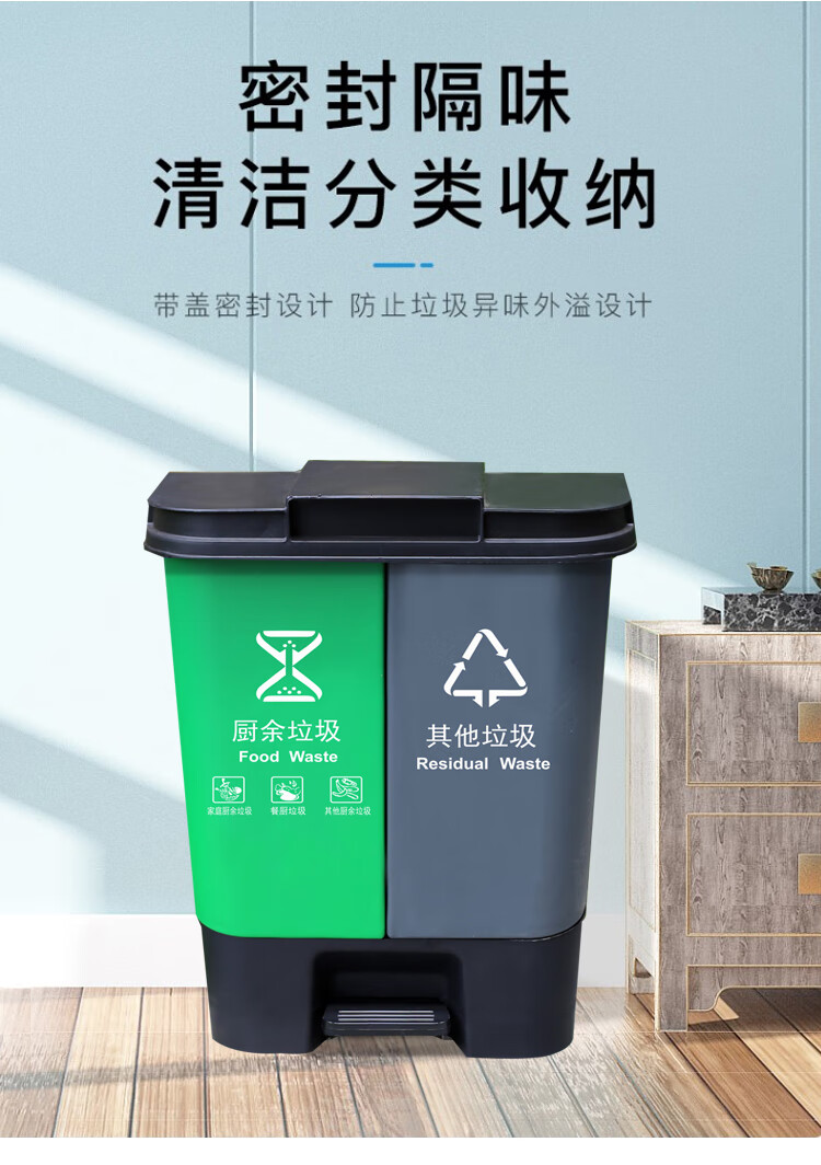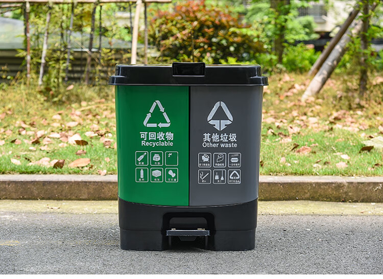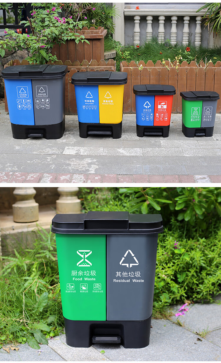 Garbage classification trash can commercial school wet and dry harmful food waste three-in-one foot double bucket 100L with lid 16 liters green food waste + gray others