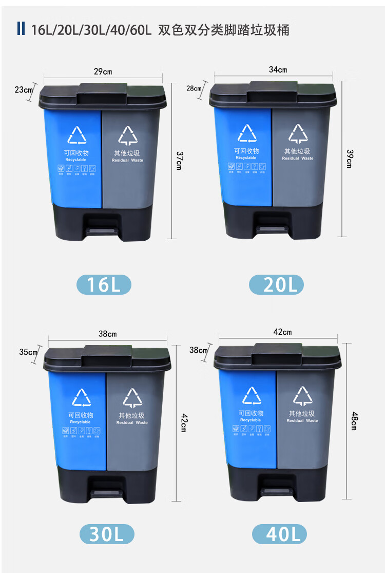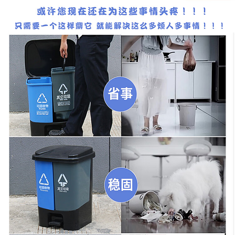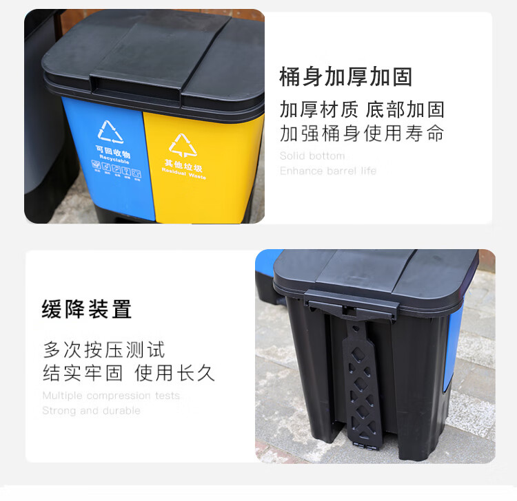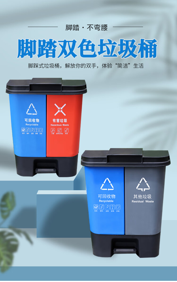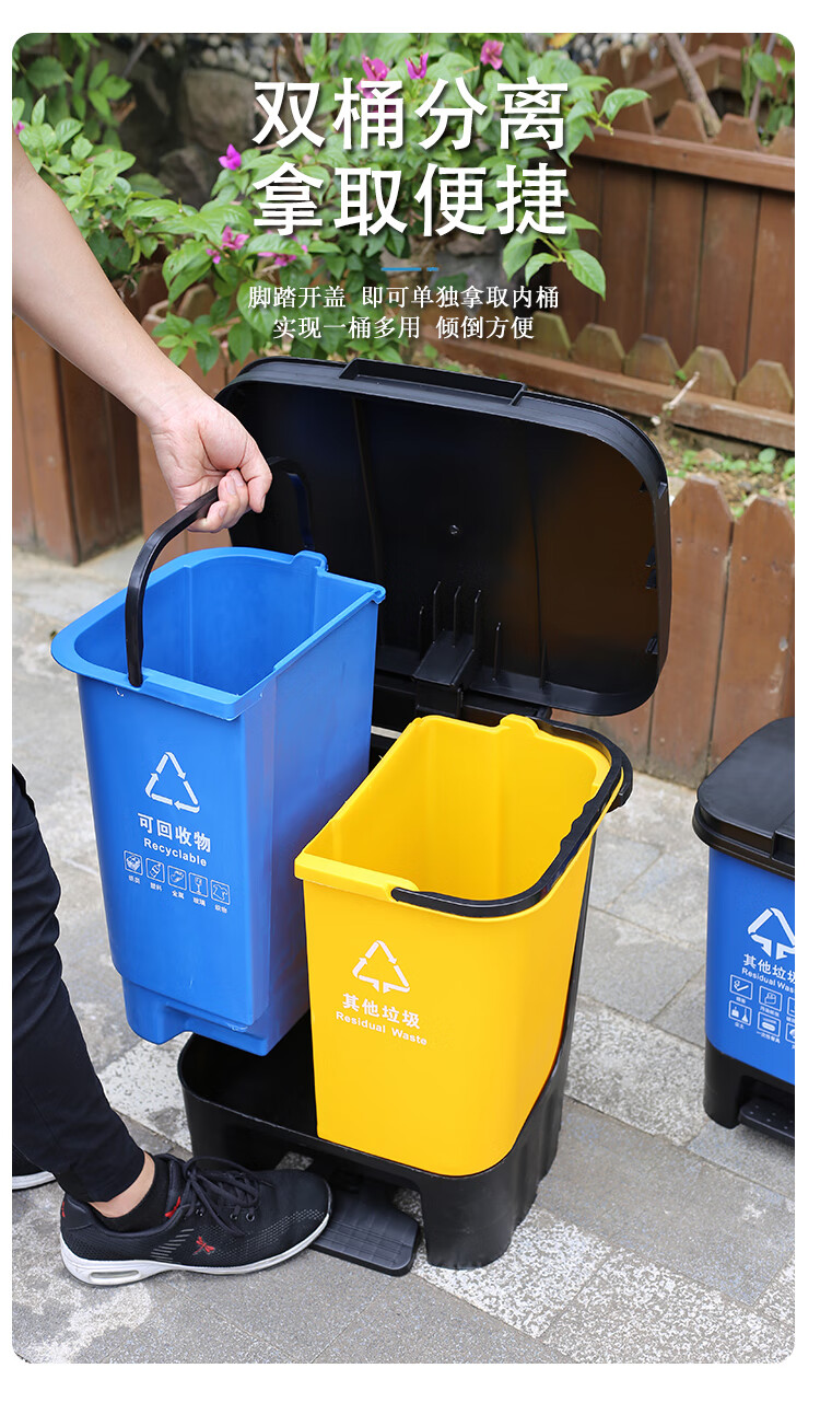 Garbage classification trash can commercial school wet and dry harmful food waste three-in-one foot double bucket 100L with lid 16 liters green food waste + gray others