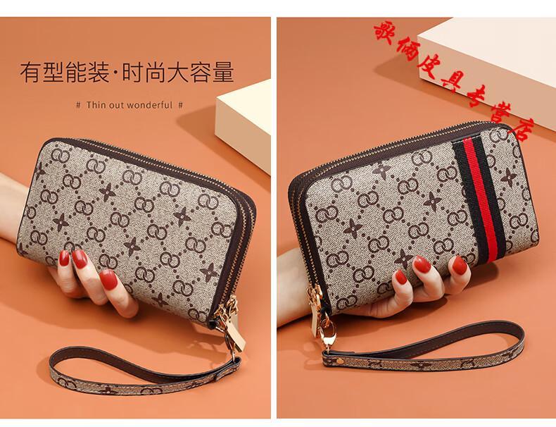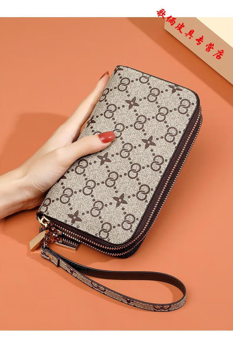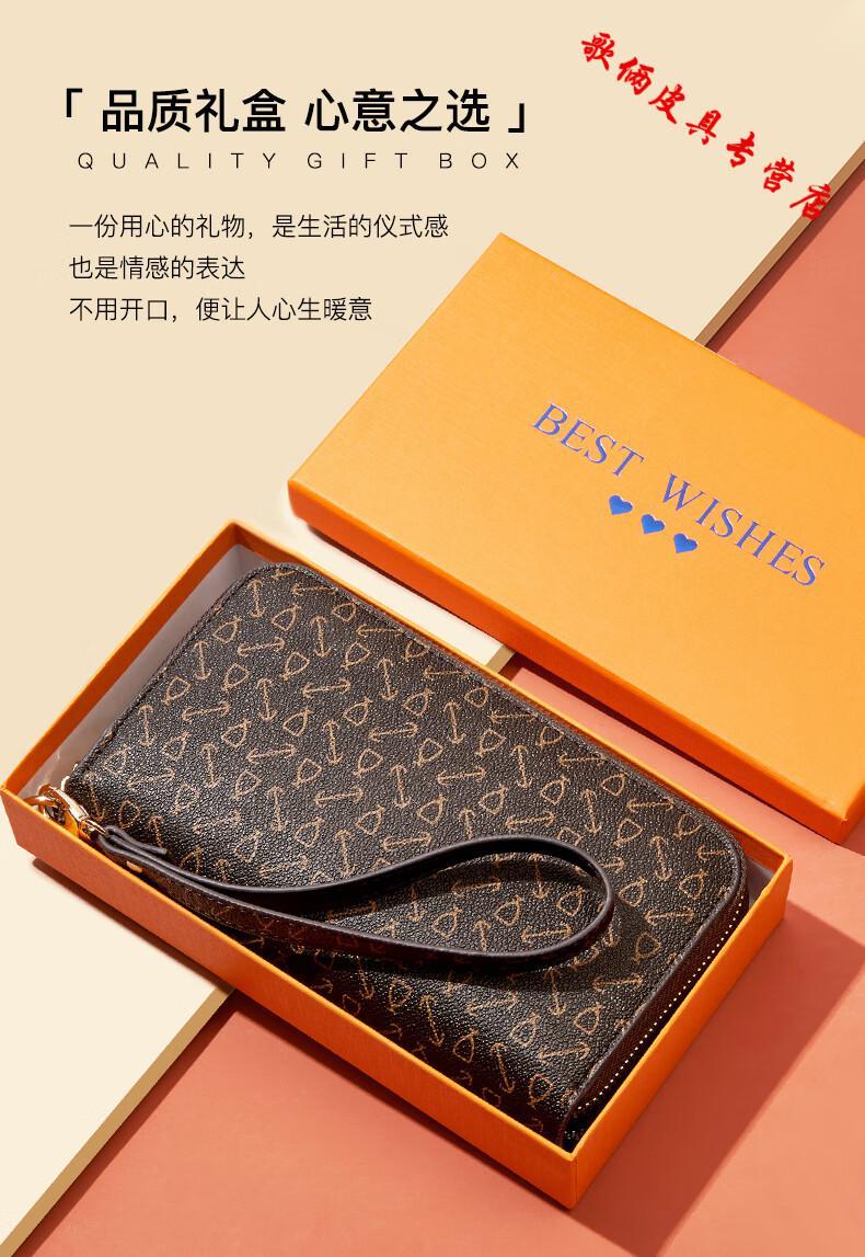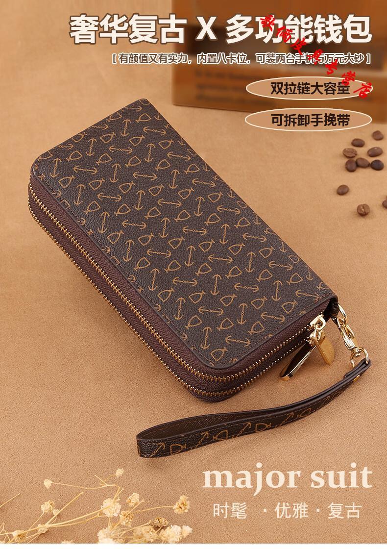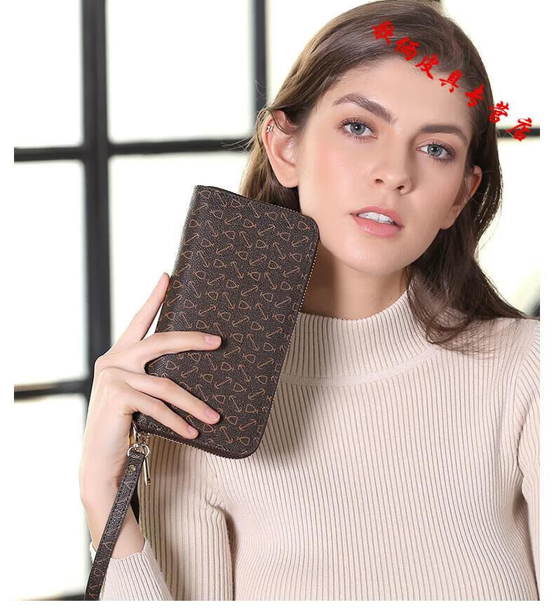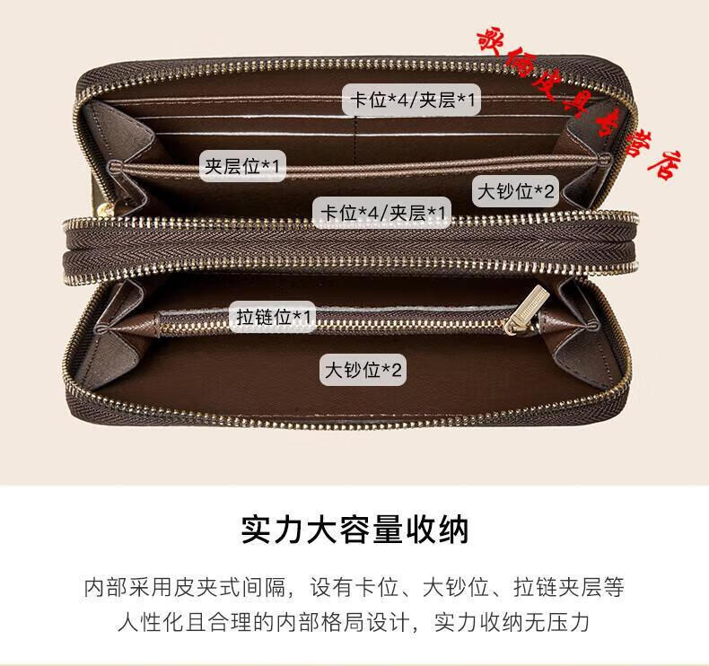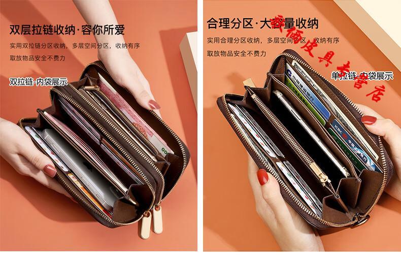 Casa-kups Genuine Leather Long Clutch Women's Mobile Phone Bag 2025 New Large Capacity Fashionable High-end Money Arrow Pattern Brown-Double Zipper