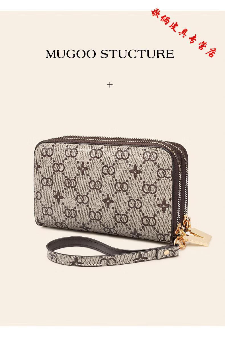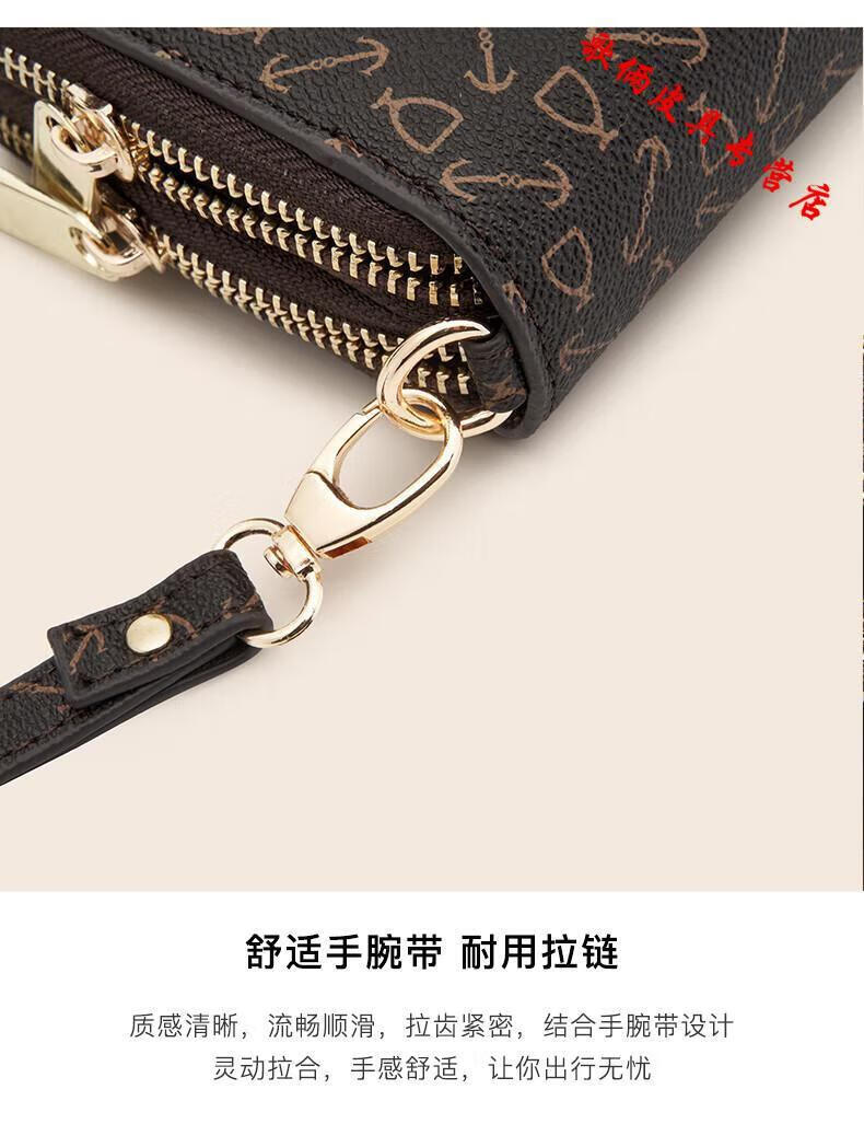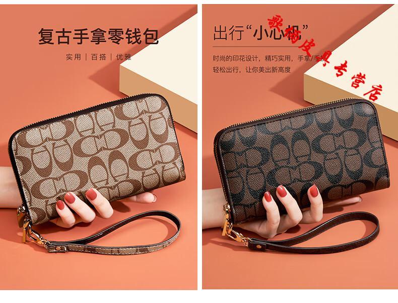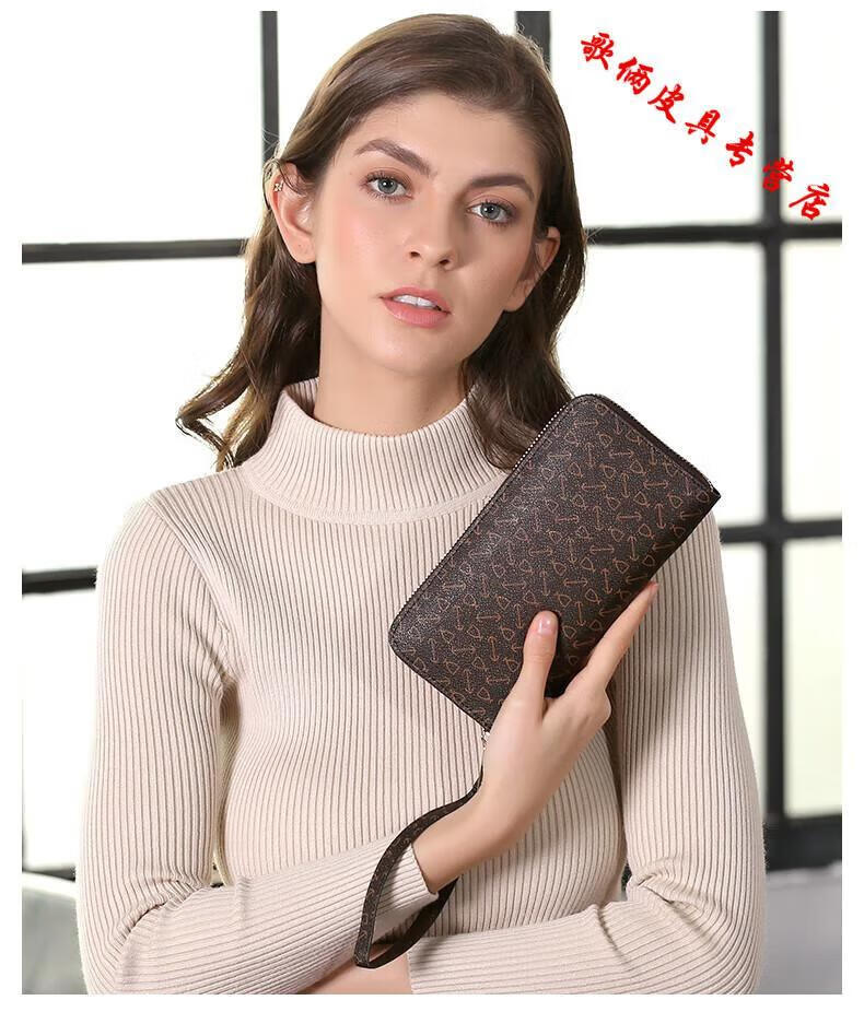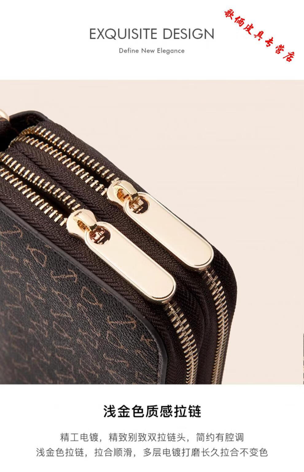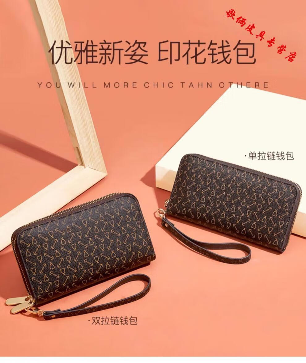 Casa-kups Genuine Leather Long Clutch Women's Mobile Phone Bag 2025 New Large Capacity Fashionable High-end Money Arrow Pattern Brown-Double Zipper