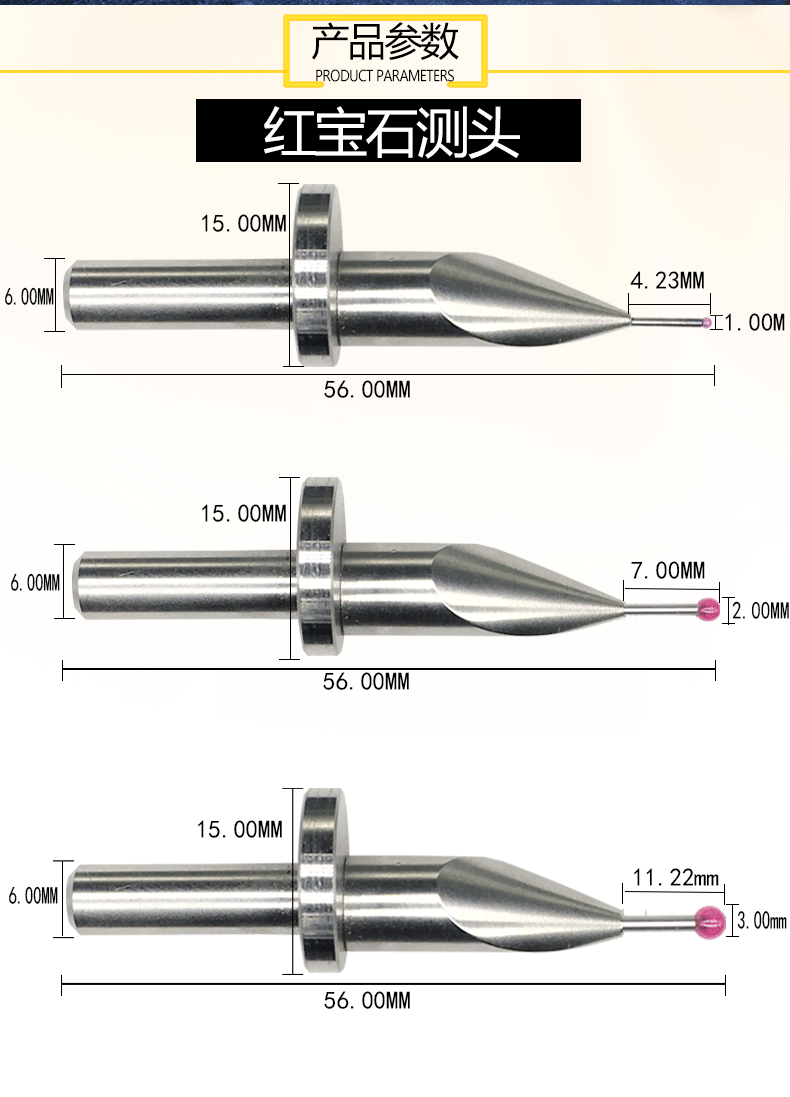 Height meter tungsten steel probe 1.0/2.0/30/4.0/5.0 ruby probe height meter probe TESA domestic extended 75mm measuring arm