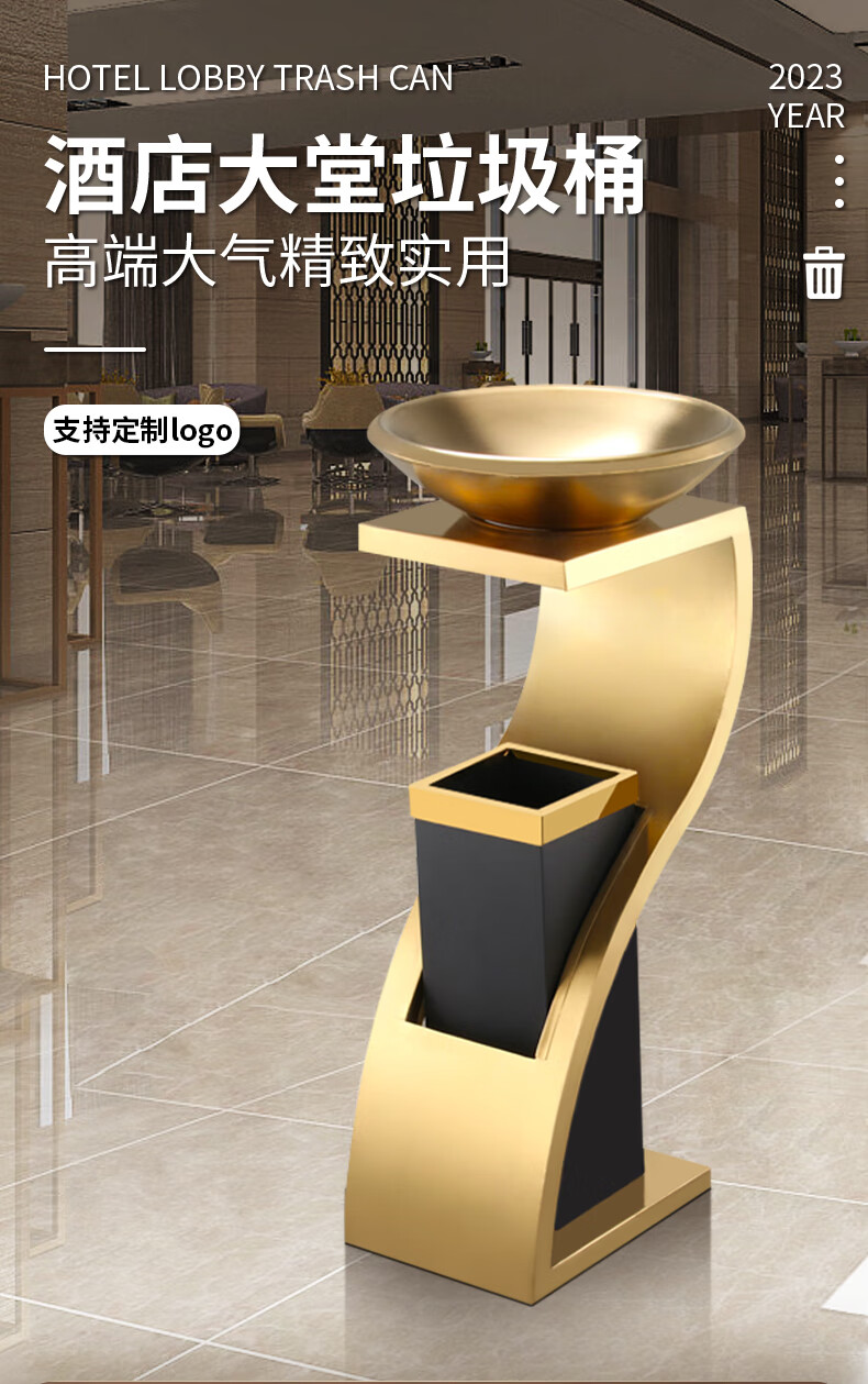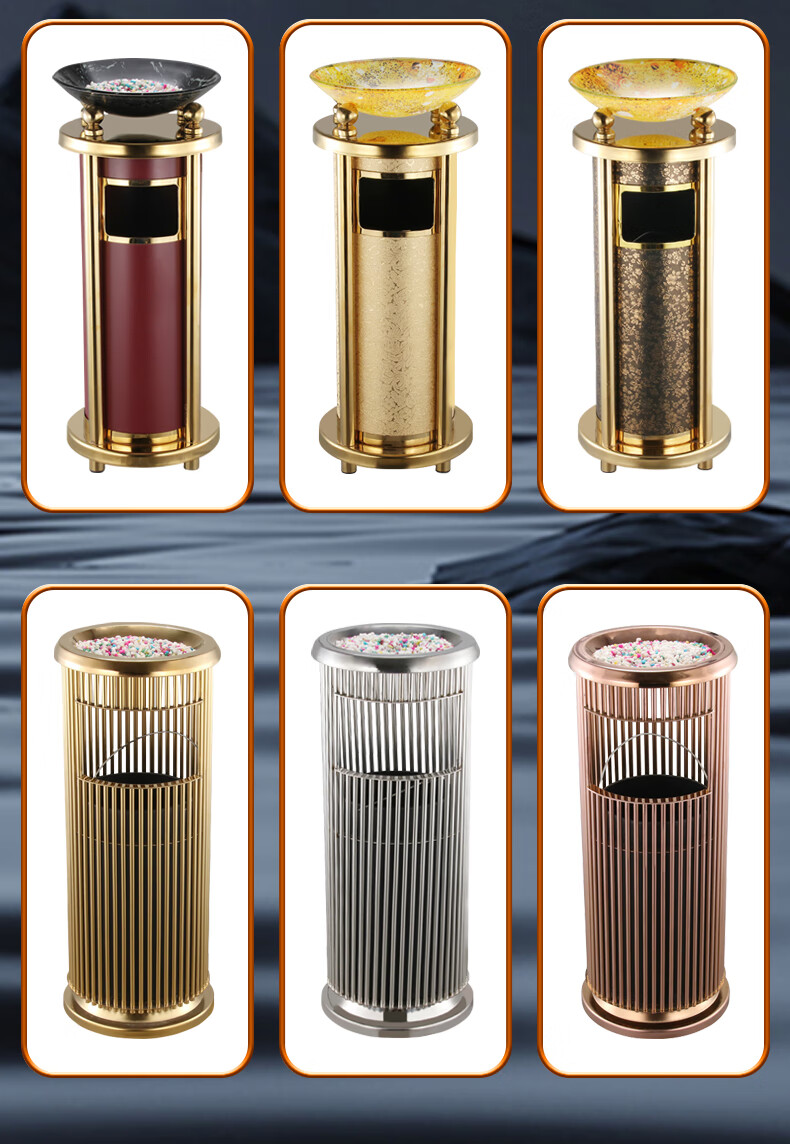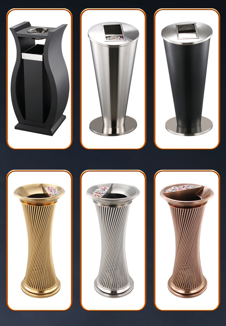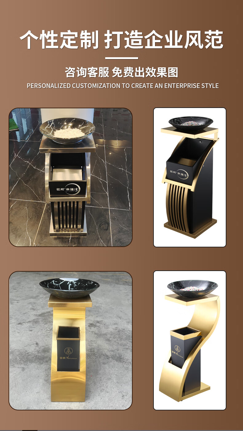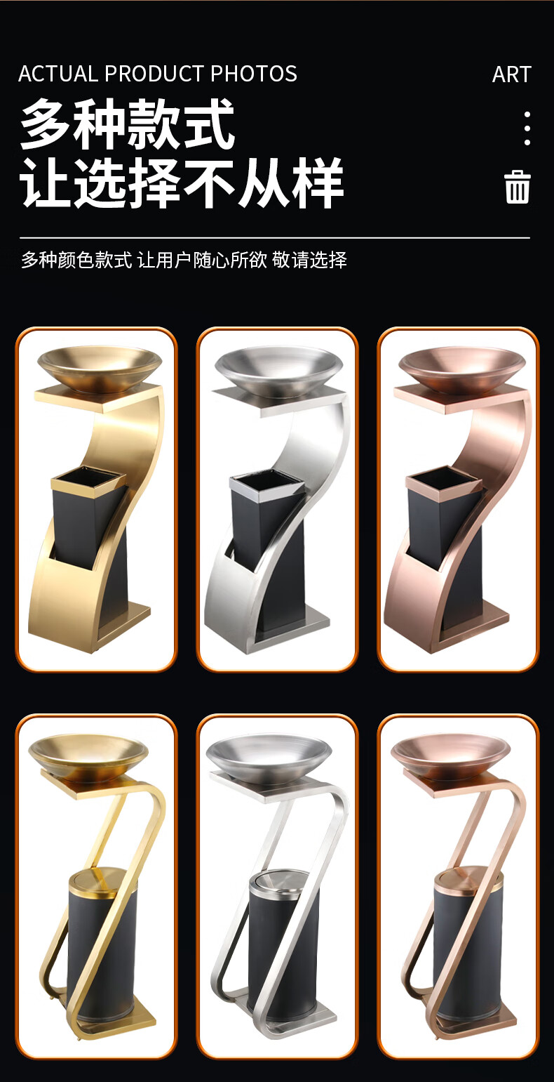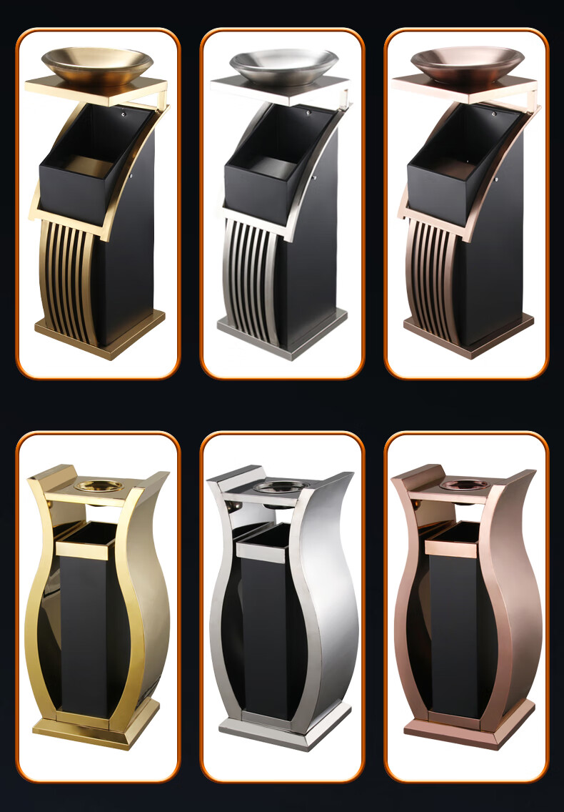 Hotel lobby stainless steel trash can commercial office building vertical elevator corridor KTV sanitary bucket with ashtray S-shaped stainless steel + tempered glass basin