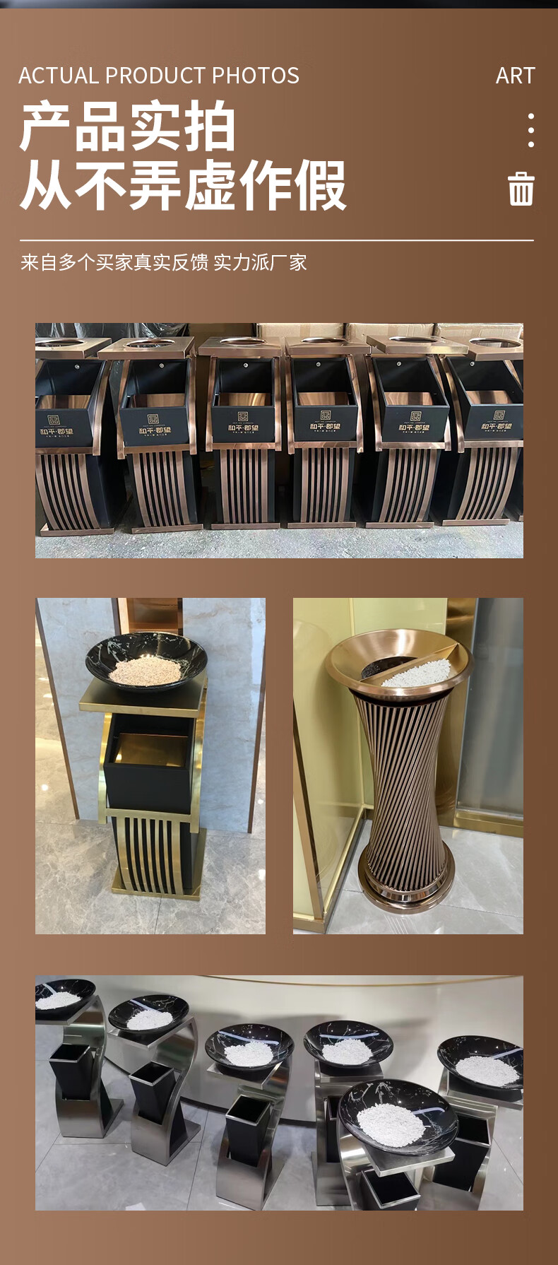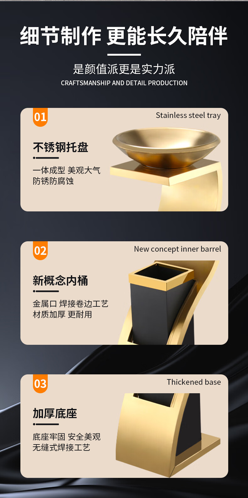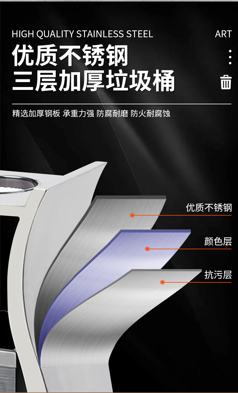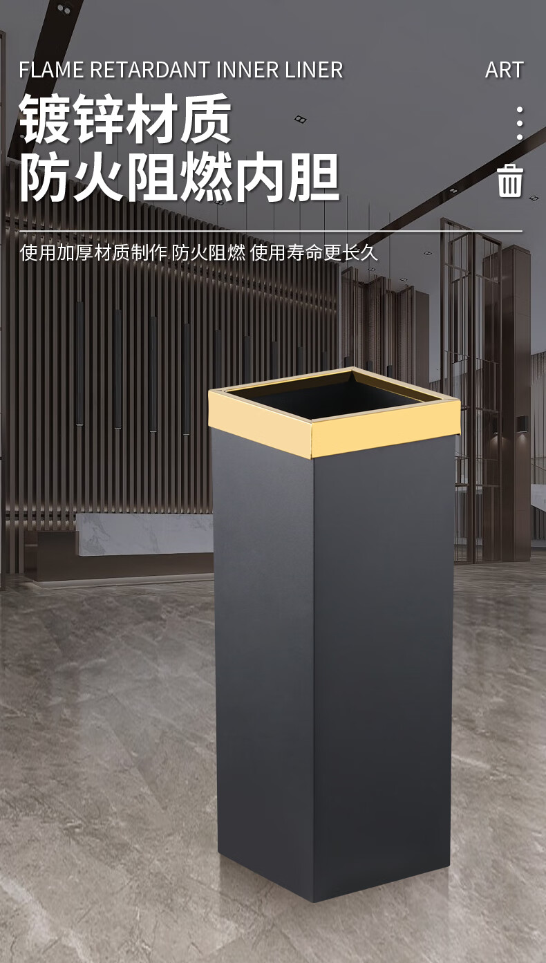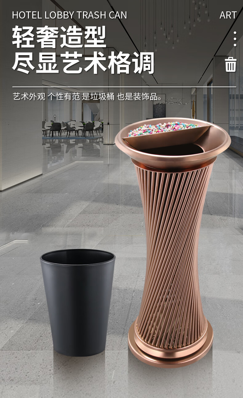 Hotel lobby stainless steel trash can commercial office building vertical elevator corridor KTV sanitary bucket with ashtray S-shaped stainless steel + tempered glass basin