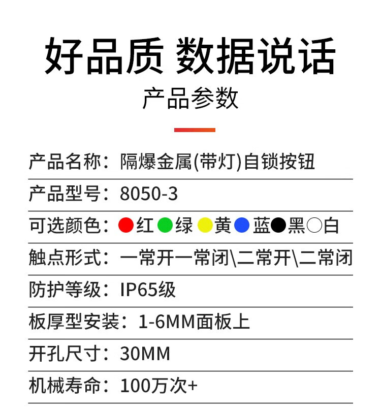 8050 metal explosion-proof illuminated self-locking button with EX explosion-proof mark 3C certificate switch manual reset normally open T6 red one normally open and one normally closed without light
