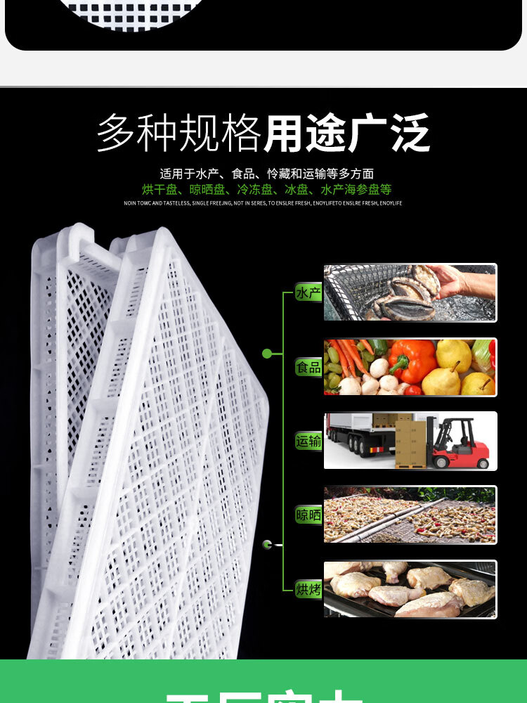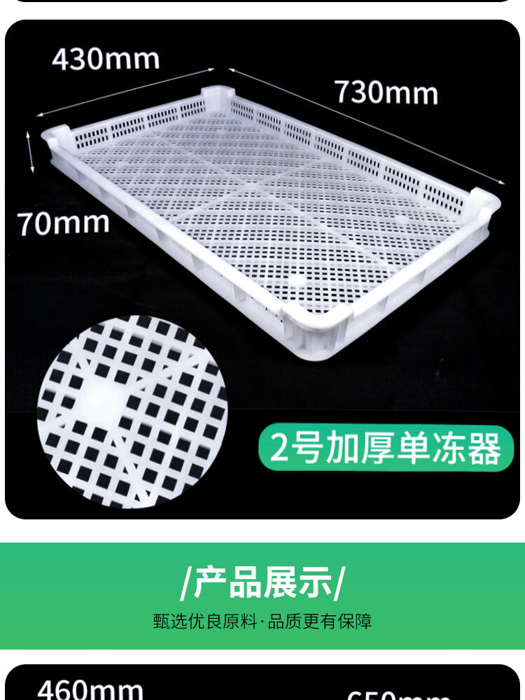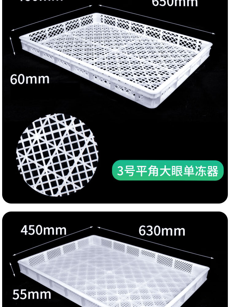 Plastic basket single freezer freezing tray drying tray aquatic sea cucumber tray cold storage tray No. 3 flat-angle big eye 650*460*60mm