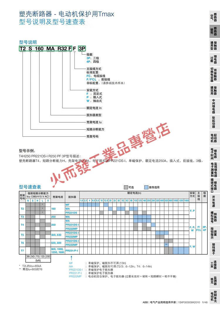 Molded case circuit breaker T1N160 T2S250 TMD R63A100A125A160A FFCerror 3P 32A