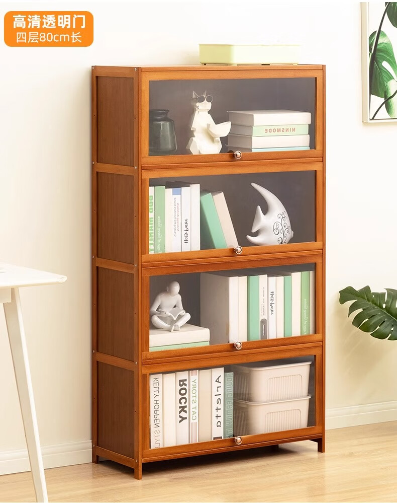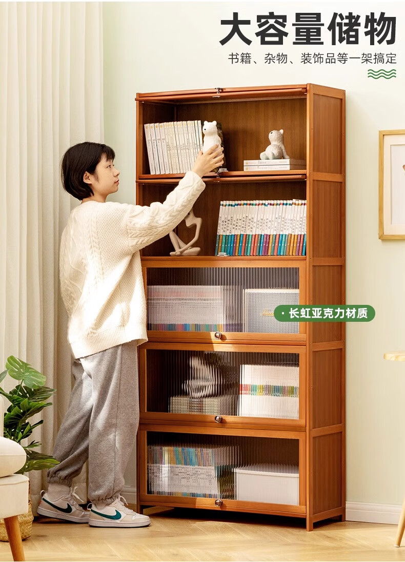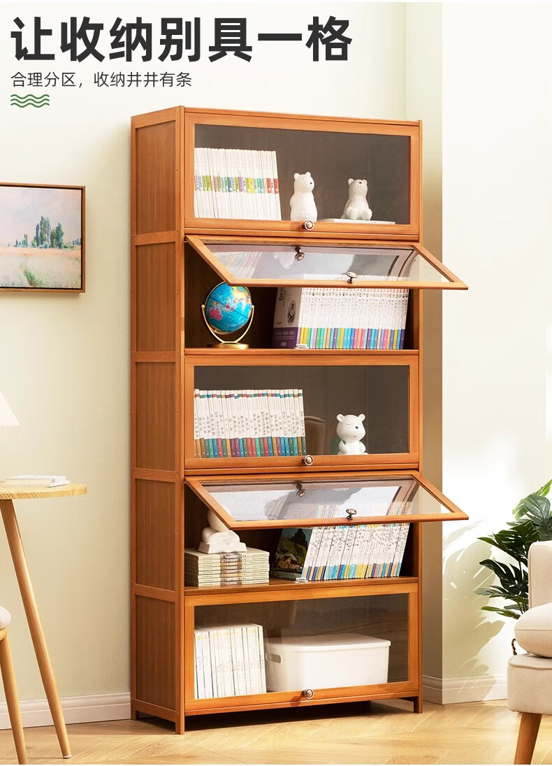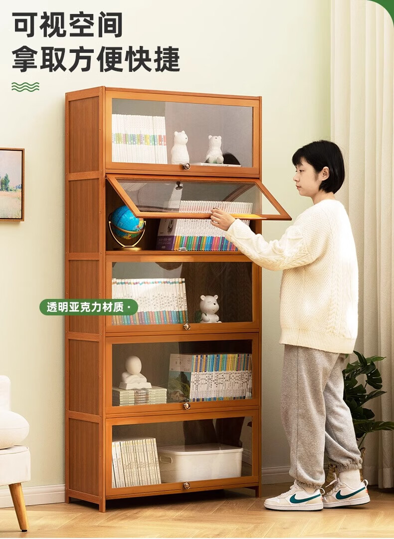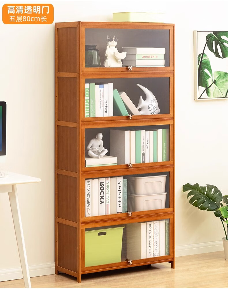 Trojan simple floor-standing bookshelf living room storage rack simple study storage cabinet bookcase reading rack integrated against the wall Changhong flip door five layers 80 long