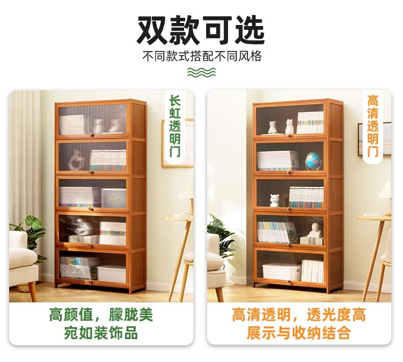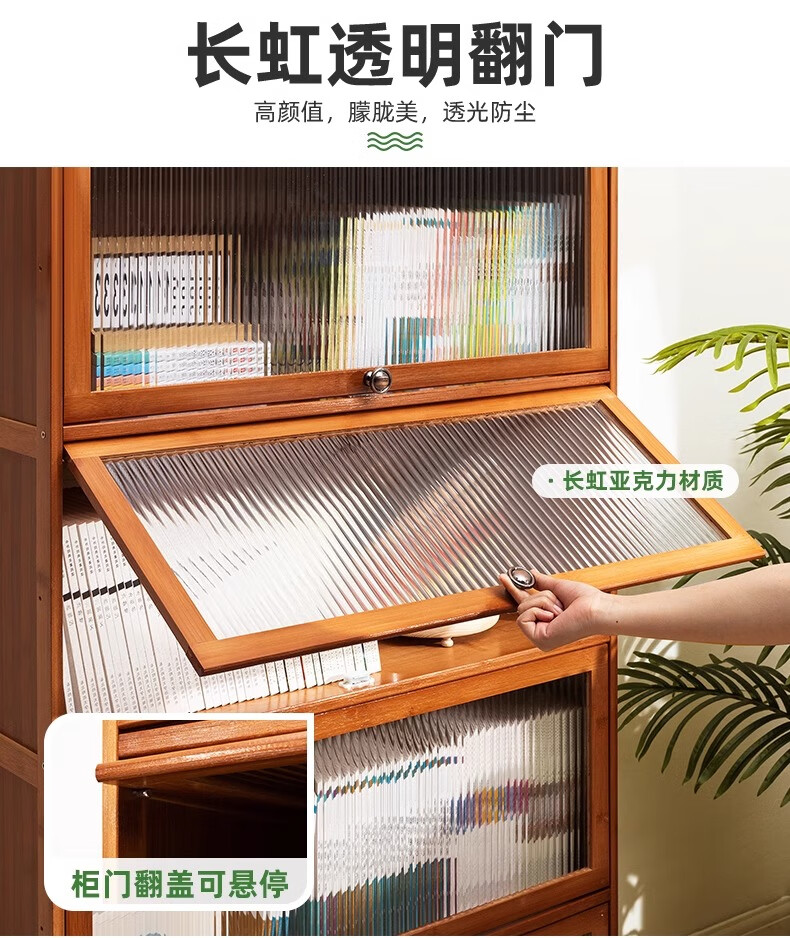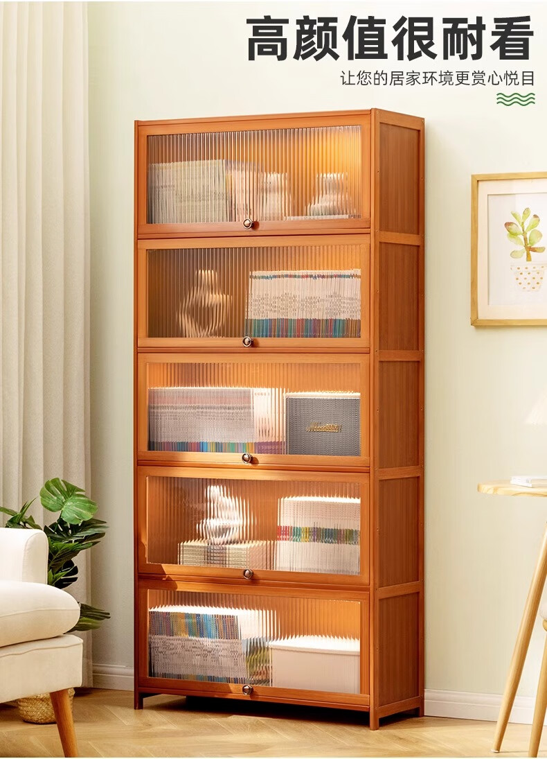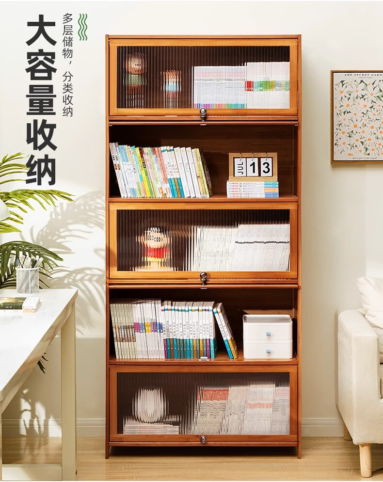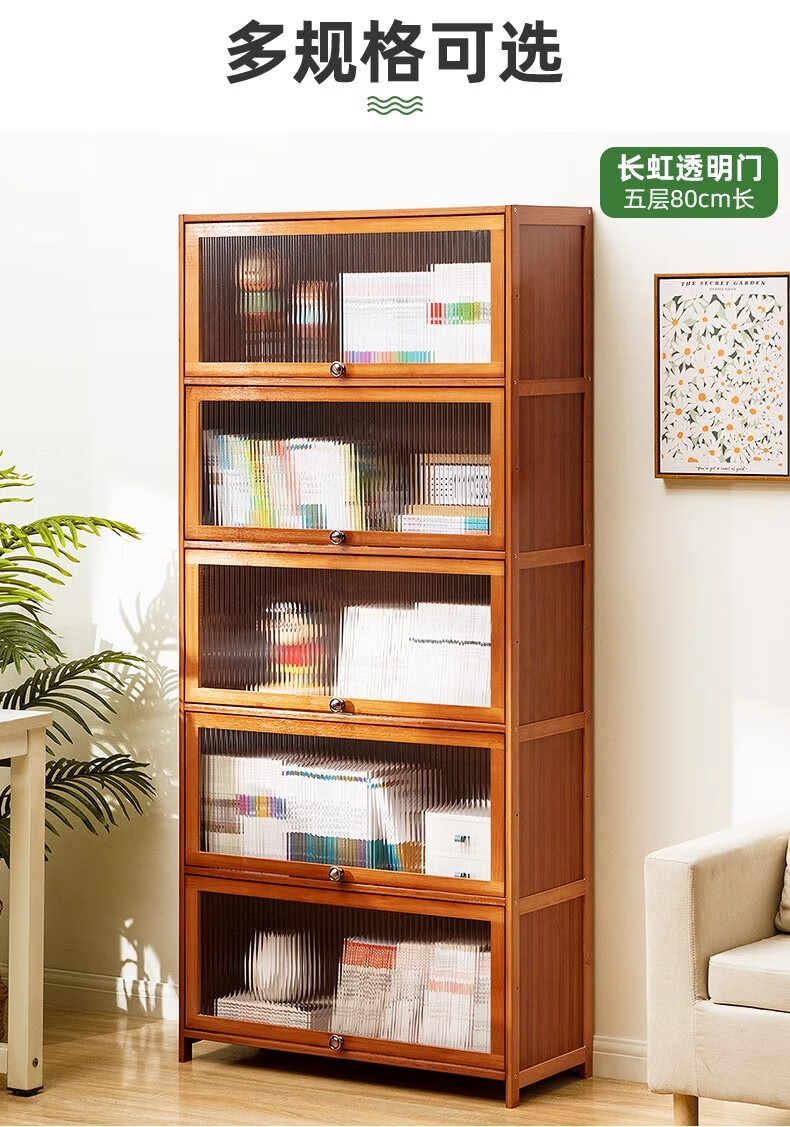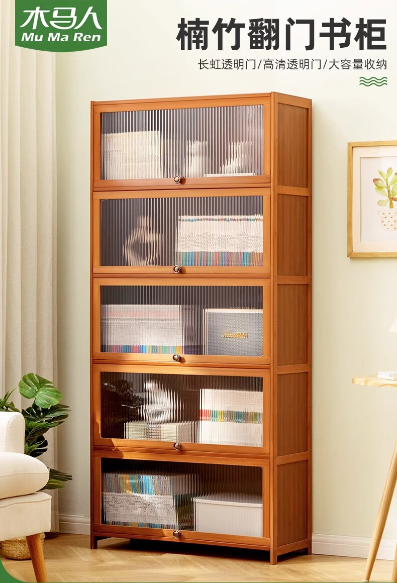 Trojan simple floor-standing bookshelf living room storage rack simple study storage cabinet bookcase reading rack integrated against the wall Changhong flip door five layers 80 long