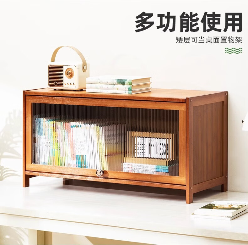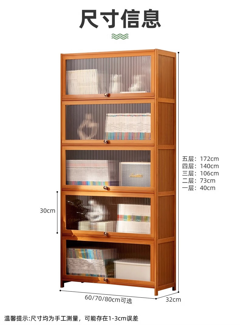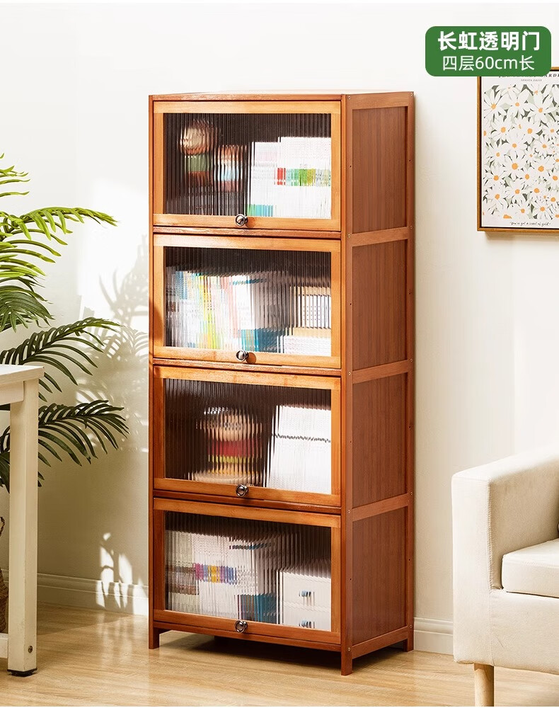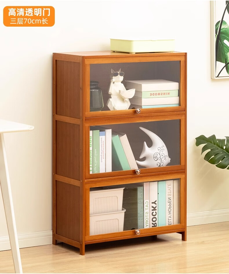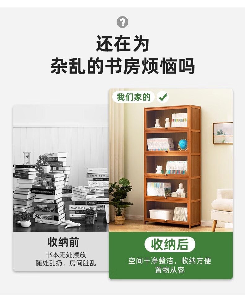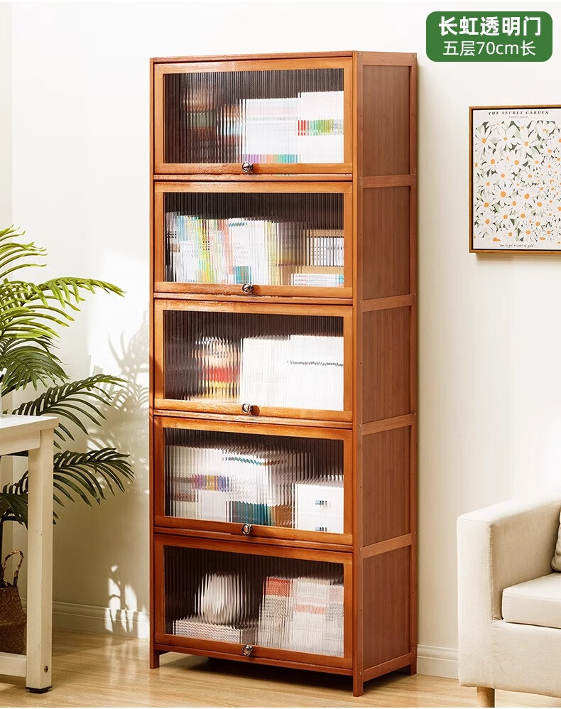 Trojan simple floor-standing bookshelf living room storage rack simple study storage cabinet bookcase reading rack integrated against the wall Changhong flip door five layers 80 long