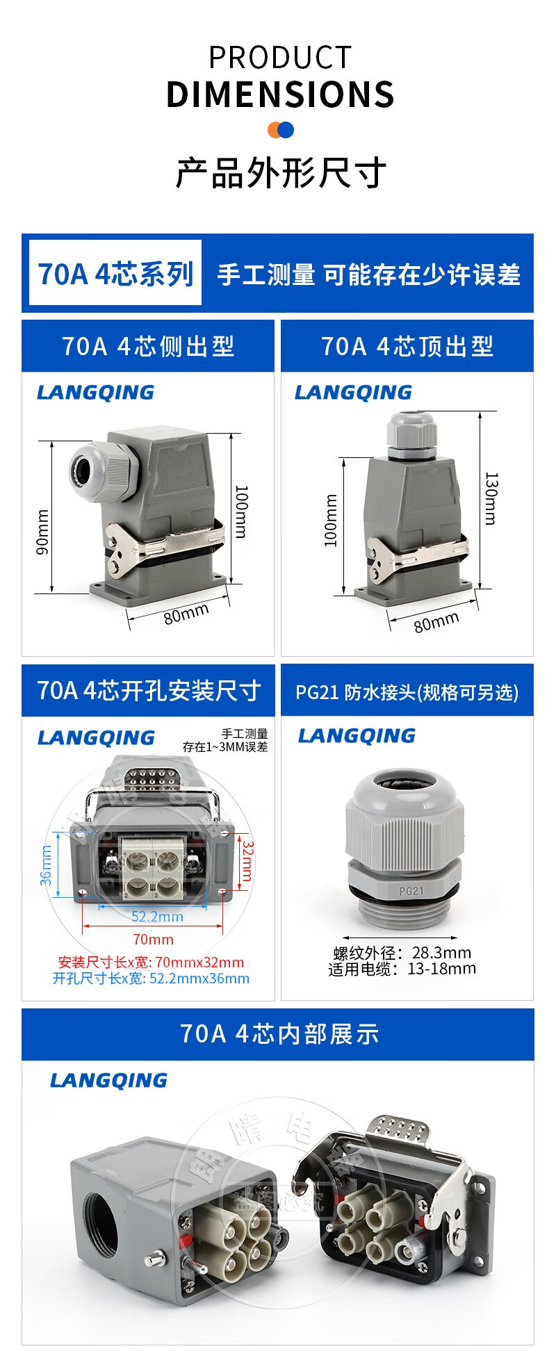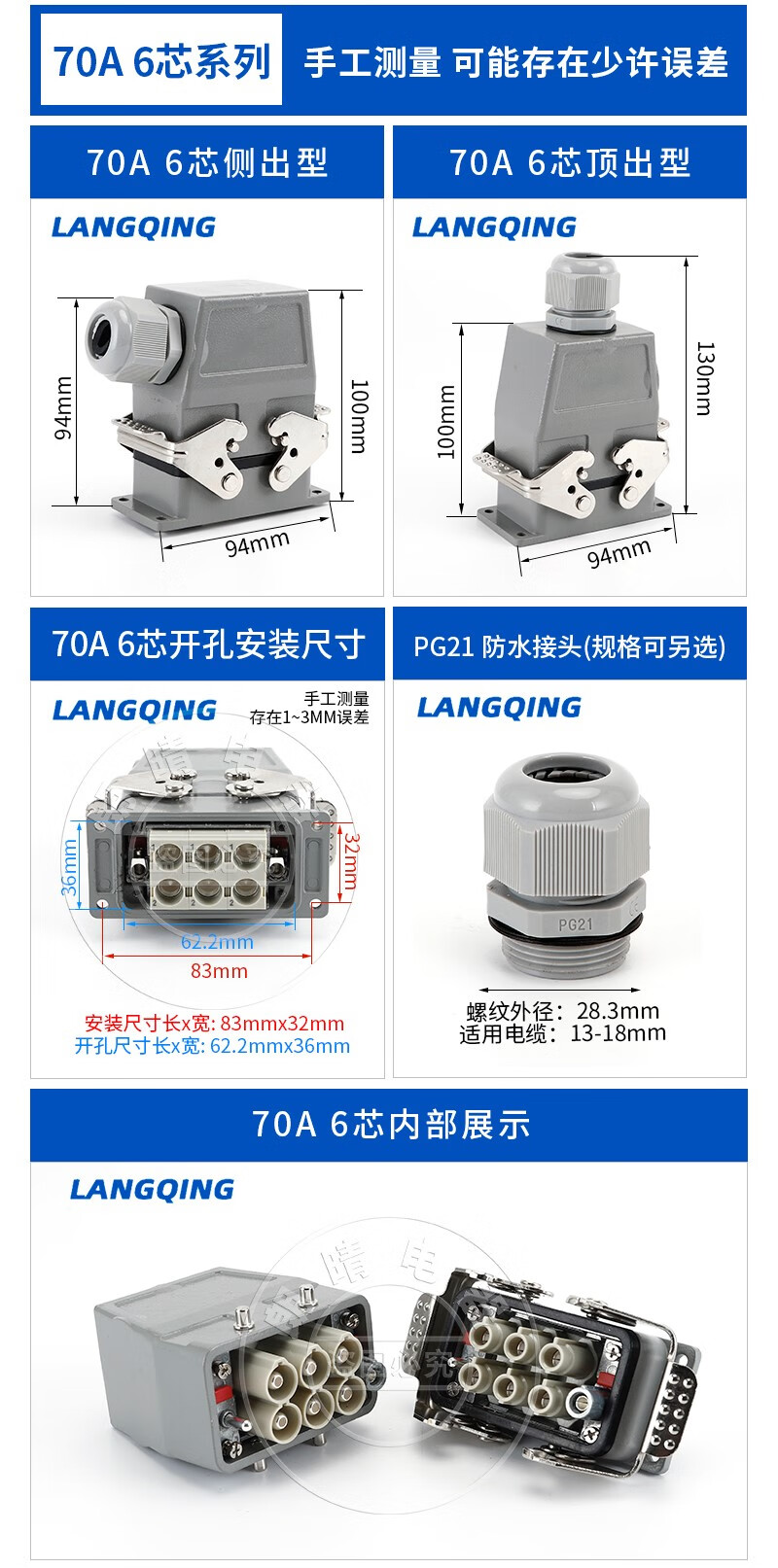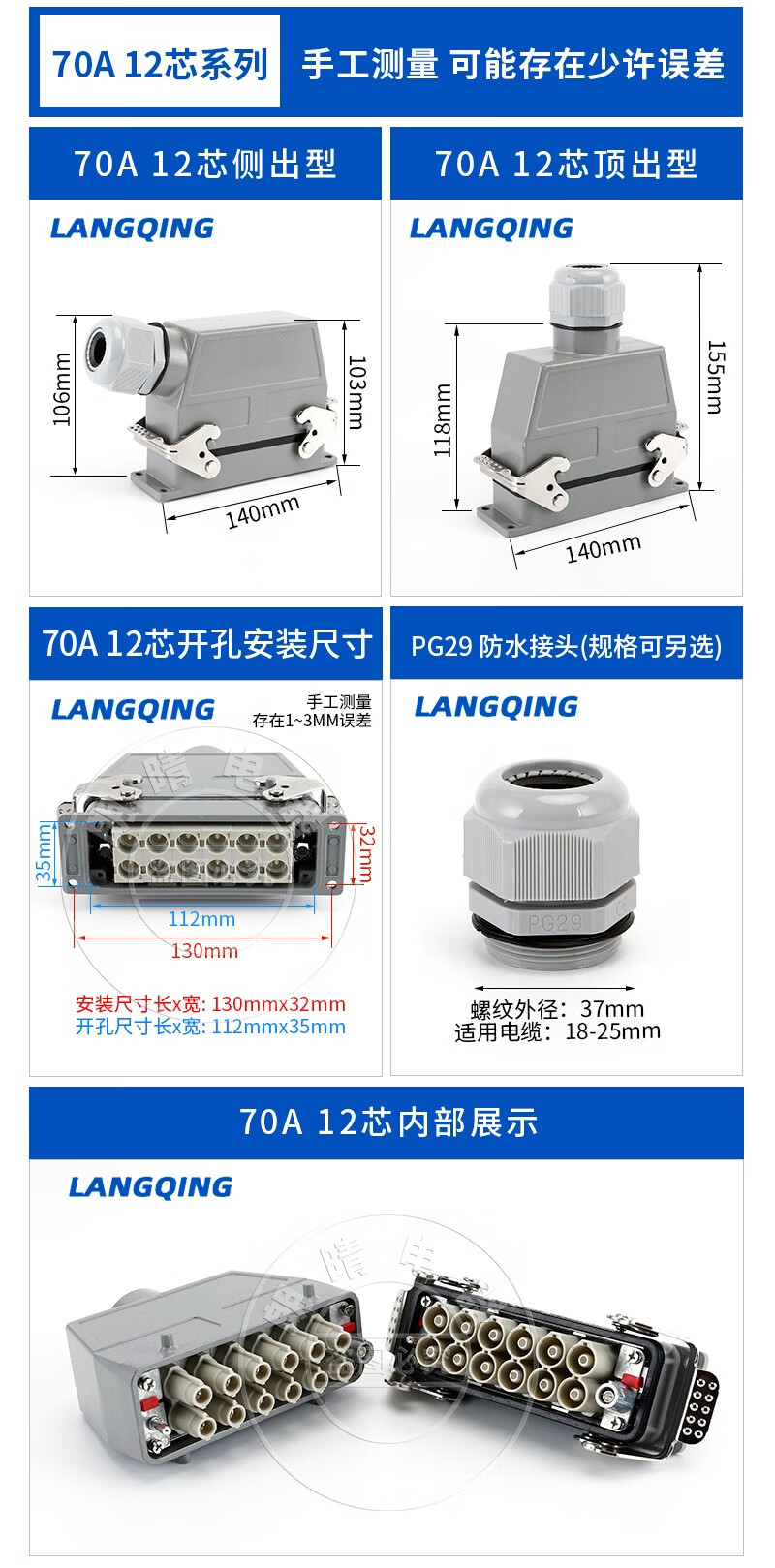 Heavy-duty connector high current 100A high power 70A high voltage 4-core 6-hole 8-pin 12PIN aviation plug socket 200A high current consultation customer service