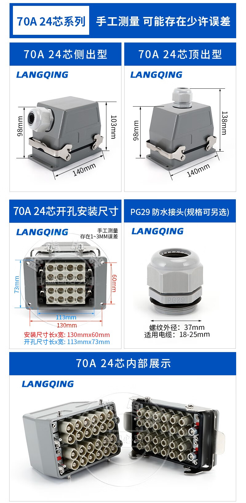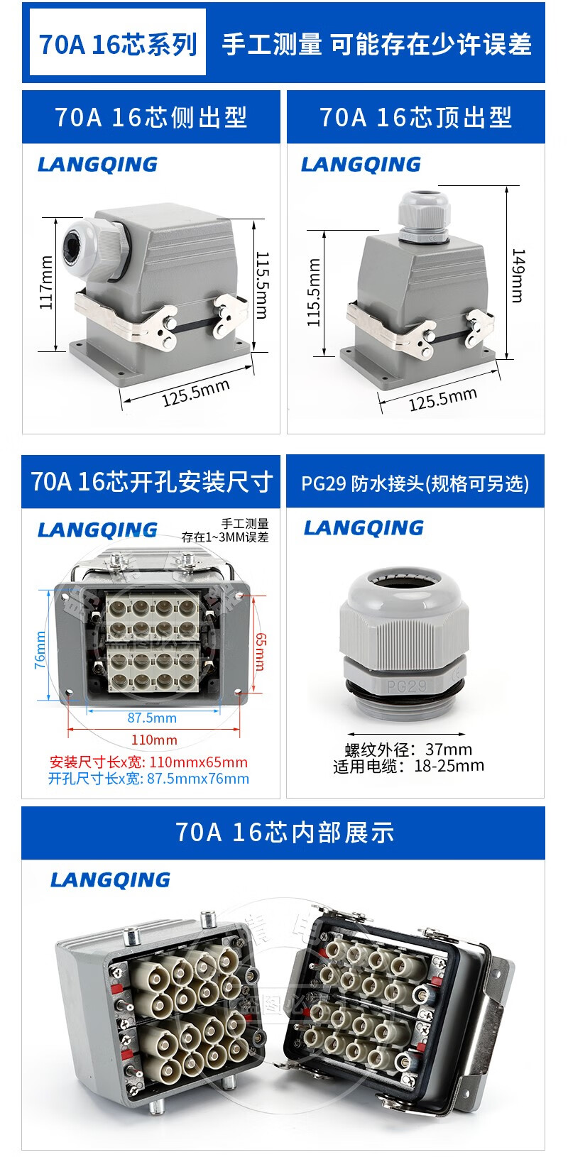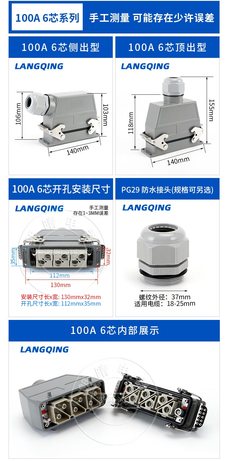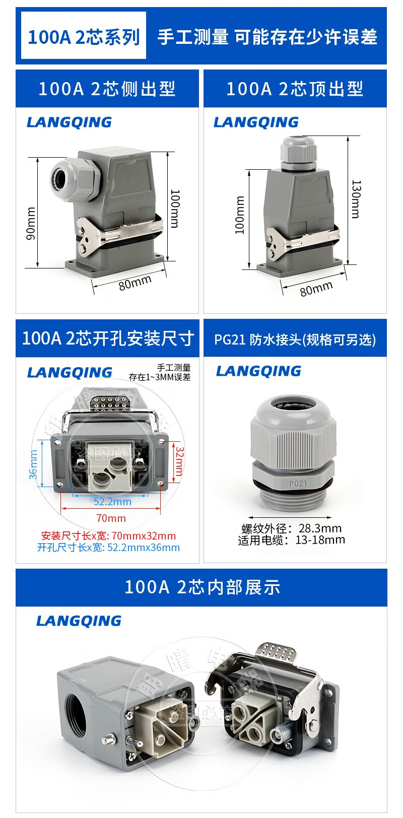 Heavy-duty connector high current 100A high power 70A high voltage 4-core 6-hole 8-pin 12PIN aviation plug socket 200A high current consultation customer service