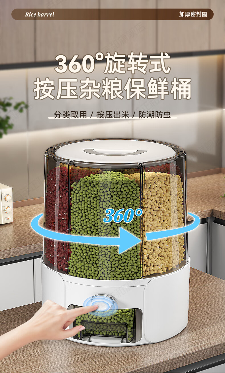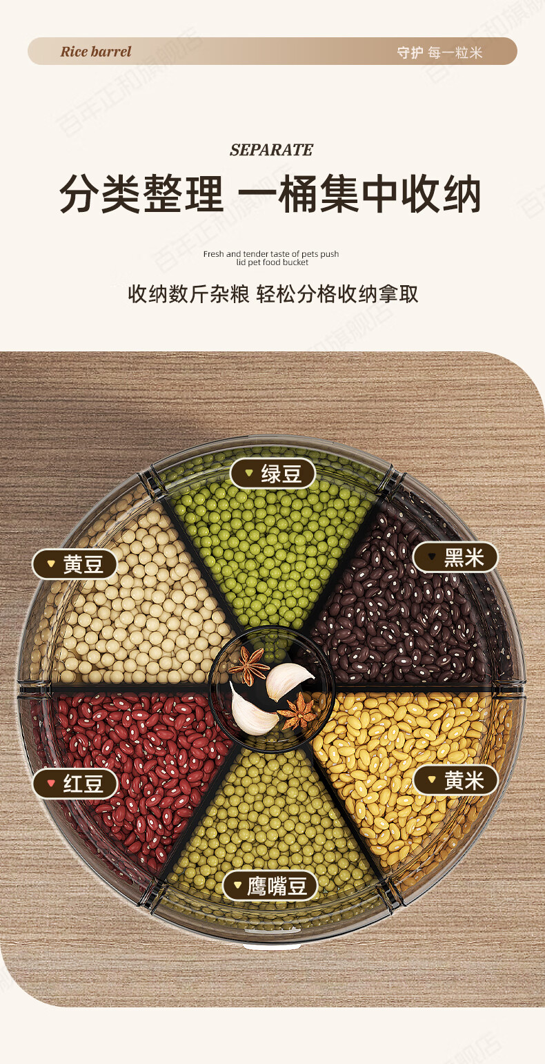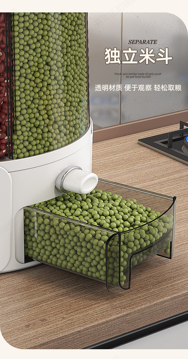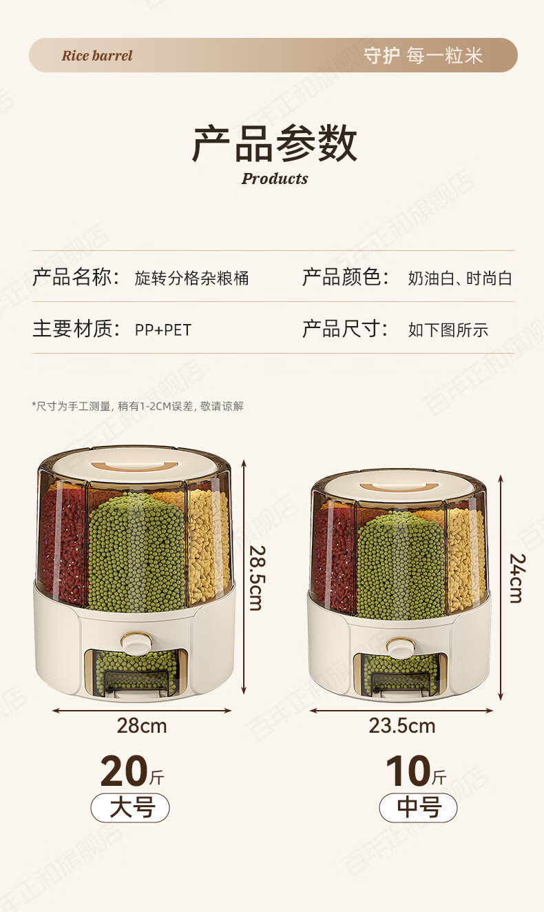 Centennial Zhenghe rice bucket grain storage box household insect-proof and moisture-proof sealed rotating partitioned rice cylinder storage tank cream yellow 12 pounds