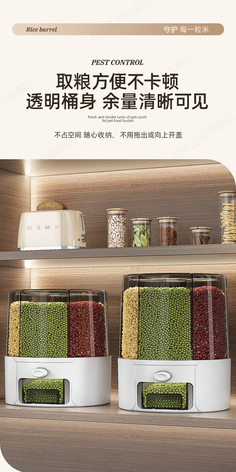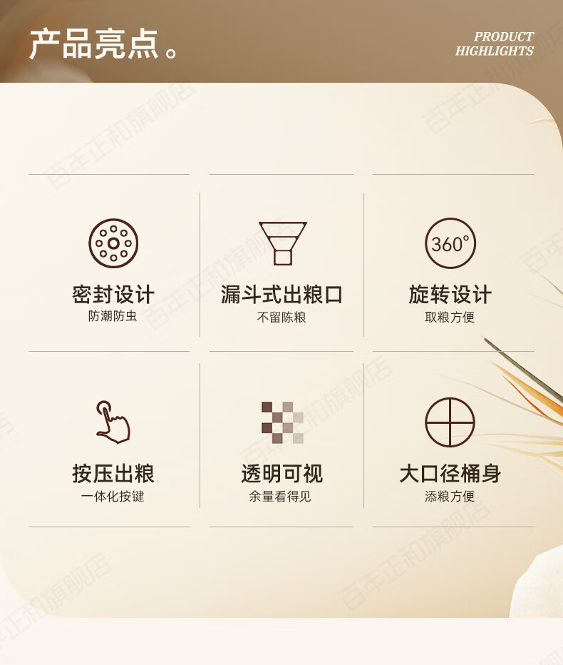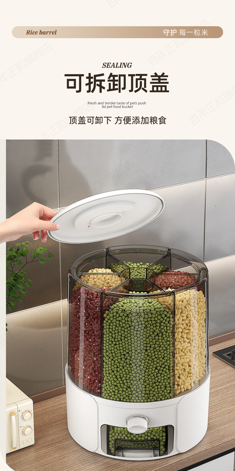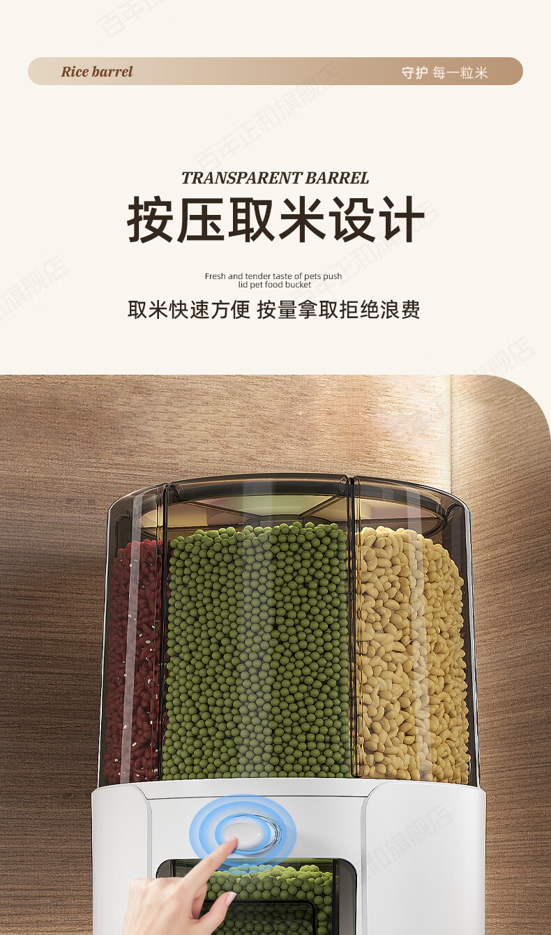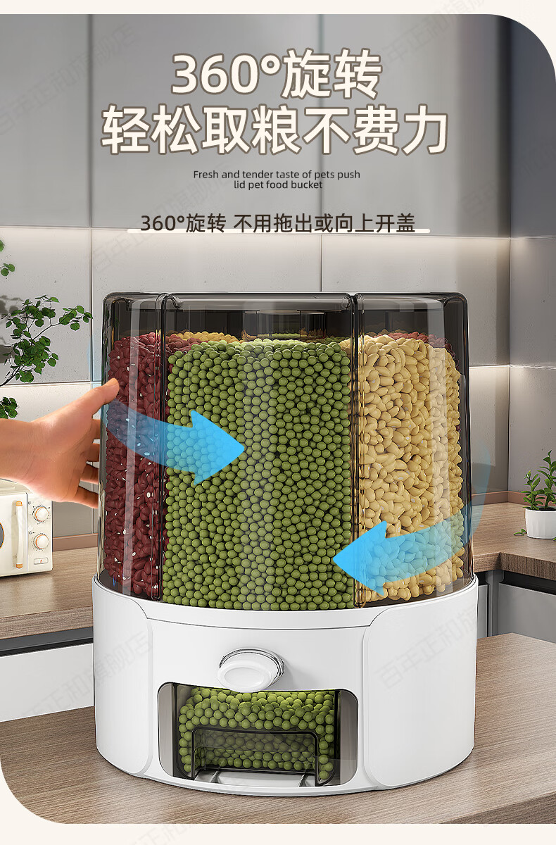 Centennial Zhenghe rice bucket grain storage box household insect-proof and moisture-proof sealed rotating partitioned rice cylinder storage tank cream yellow 12 pounds