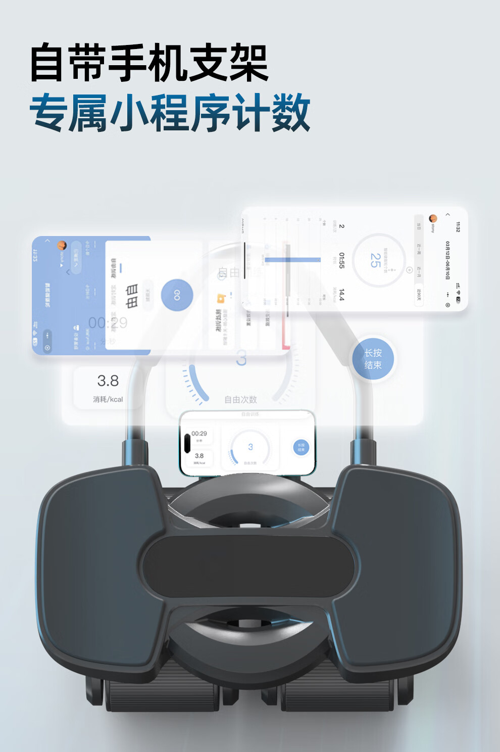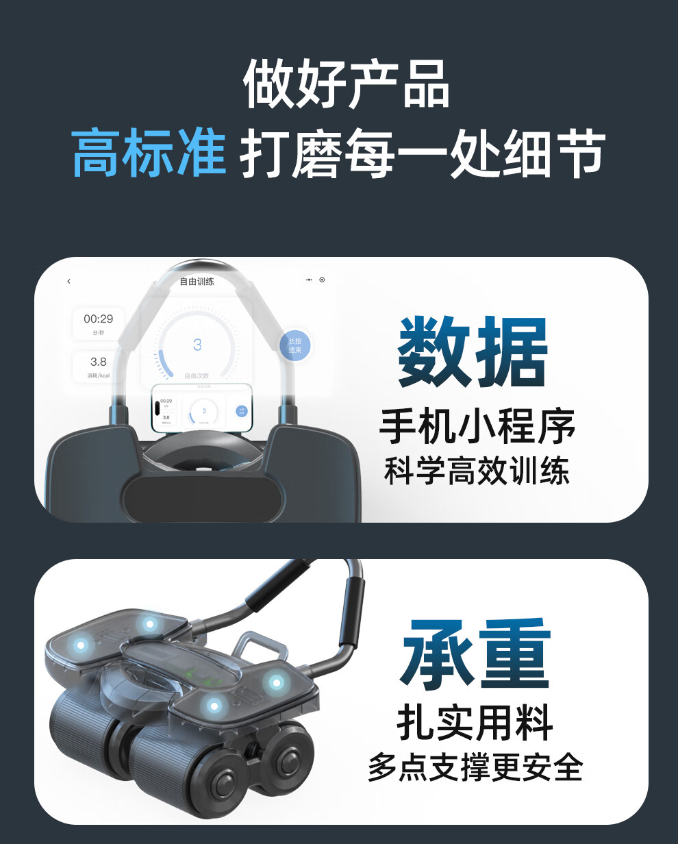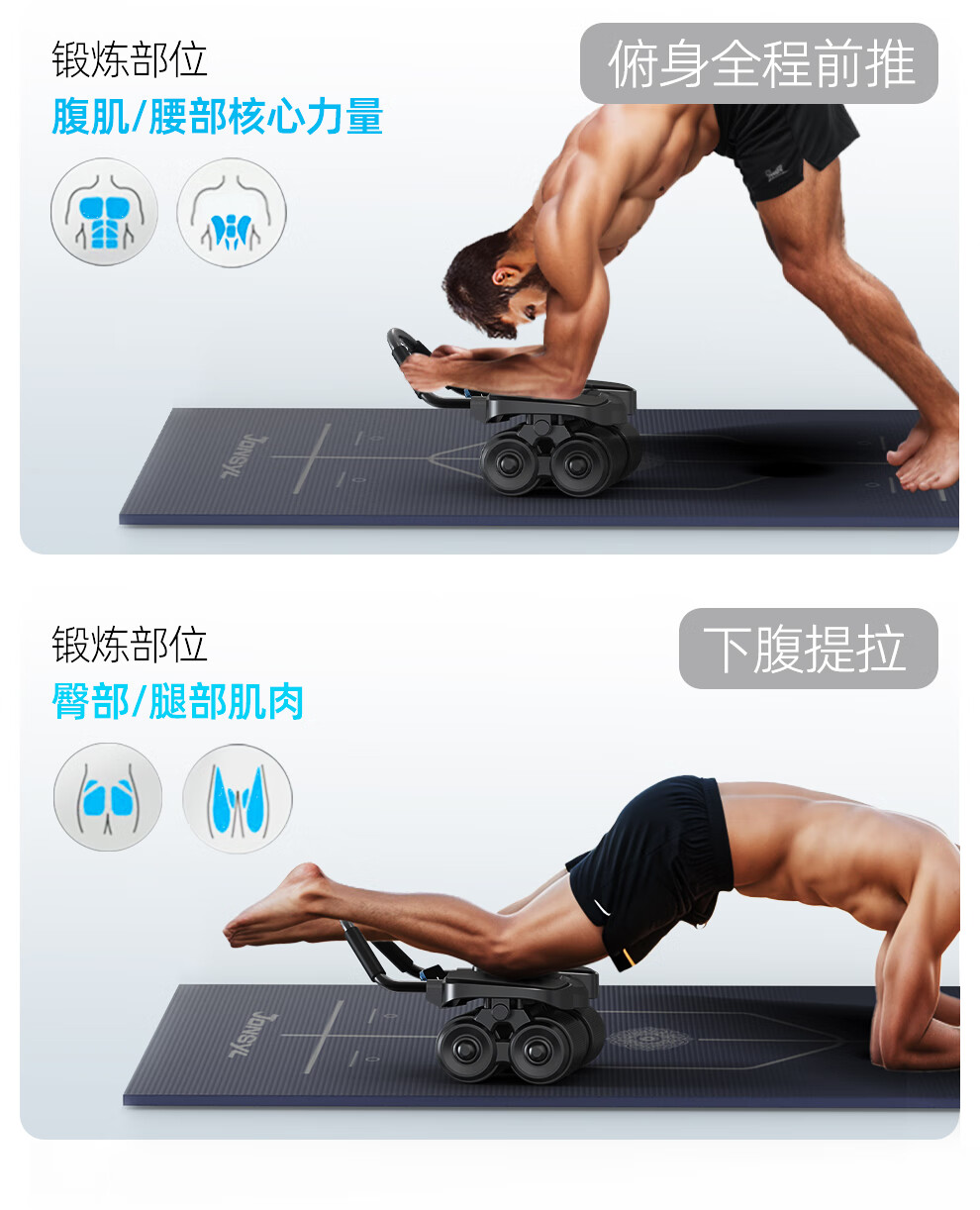 Qiaosen's new four-wheel abdominal fitness wheel, automatic rebound abdominal muscle magic tool, abdominal curling, men's and women's fitness, slimming big belly belt + posture line pad + TANK-S650E abdominal fitness wheel
