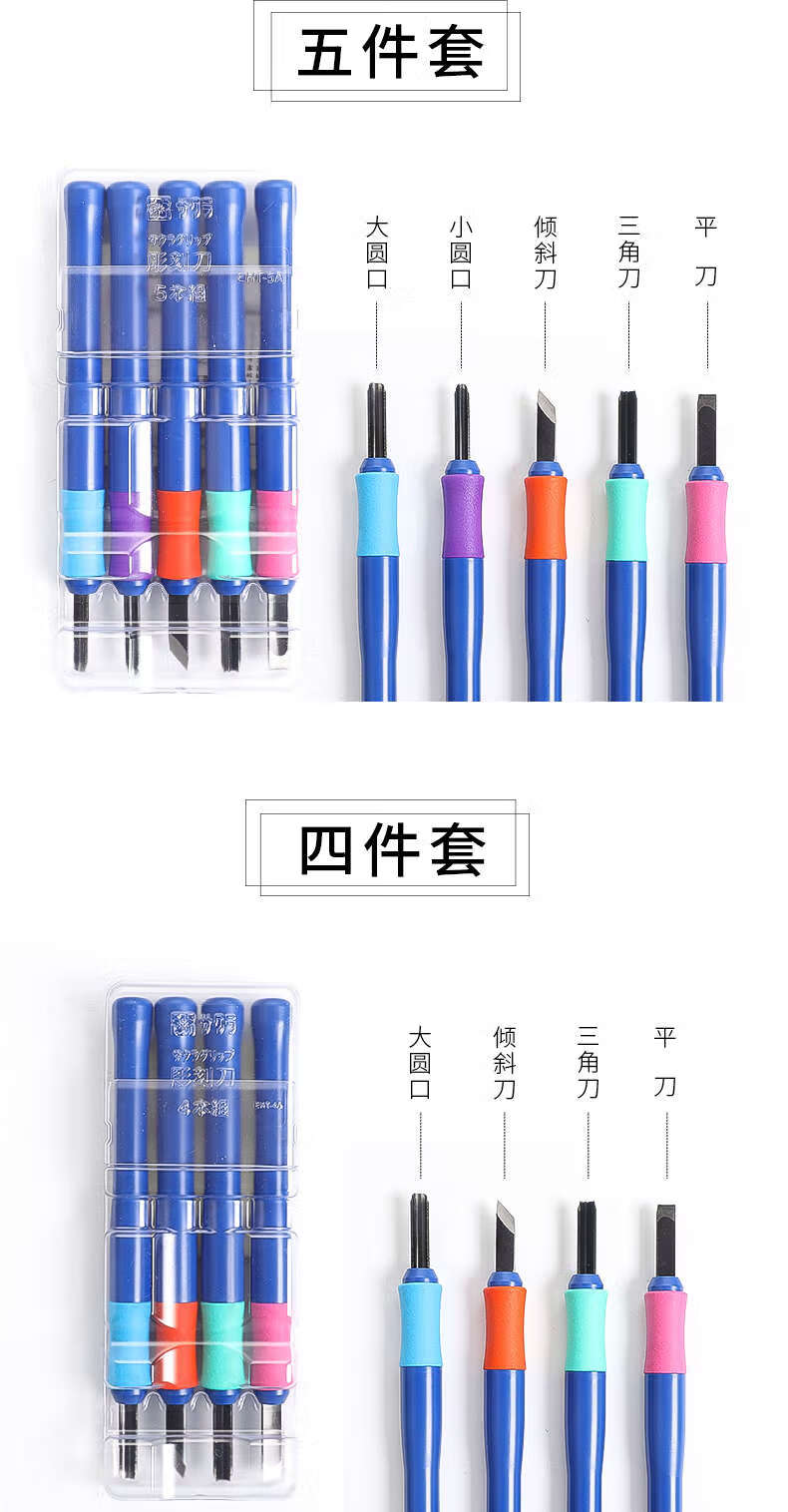 Huili is suitable for brand carving knives, student prints, wood carving rubber stamp carving knives, single set, woodworking manual wood carving knives, advanced safety 5-piece set (with safety protection telescopic