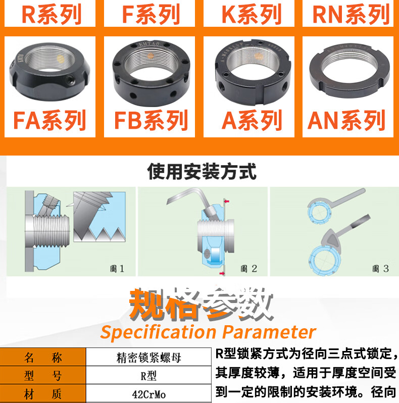 Qiao Bo Lai precision R-type radial lock nut lock nut CNC machine tool screw rod bearing anti-return anti-loosening round nut R-M190*3.0P