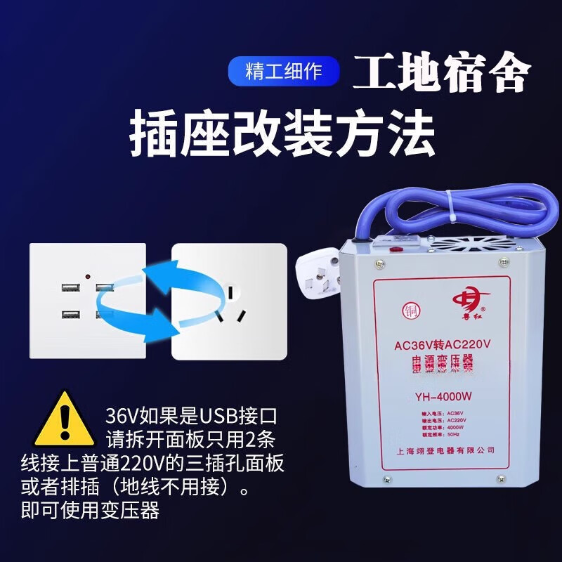 Suitable for construction site AC 36v to 220V inverter dormitory booster high power 4000W power conversion enhanced version 1000W suitable for laptops or electric wrenches