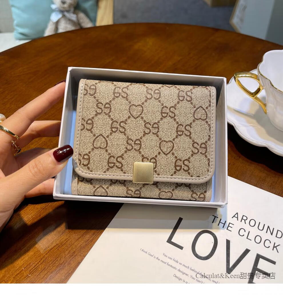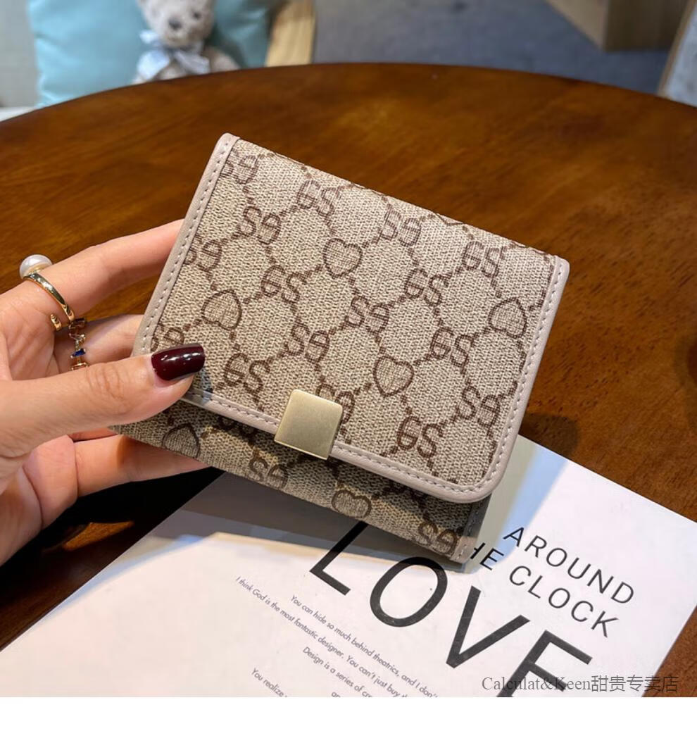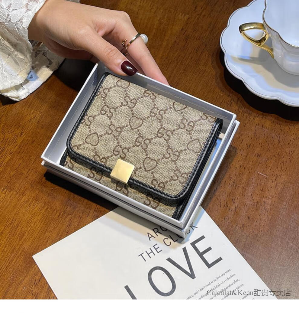 CALCULAT&KEENCK card holder women's wallet two-in-one 2025 Chinese Valentine's Day genuine leather high-end exquisite niche design short style high-end sense apricot 12 card slot gift box