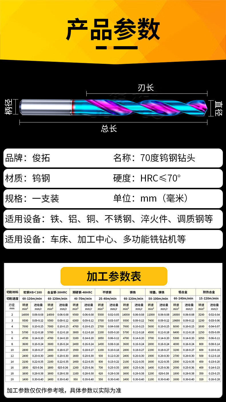 Juntuo 70-degree carbide tungsten steel drill bit for drilling high-hard super-hard twist drill bit for iron and stainless steel 1.0-1.5 (need to leave a message for a specification