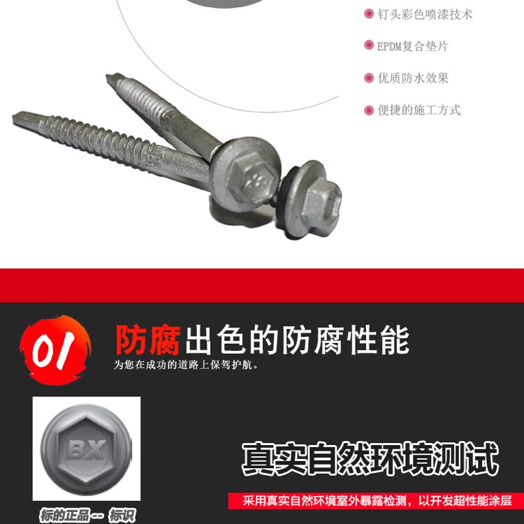 Standard Biaodi self-tapping screw external hexagonal carbon steel galvanized anti-corrosion drill tail screw Buildex CTEKS12-14 silver gray 5.5x20mm 2000 pieces per box